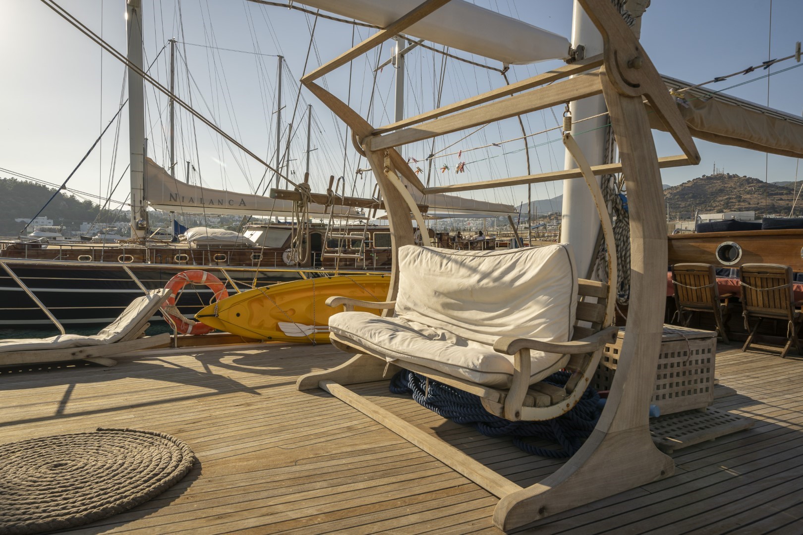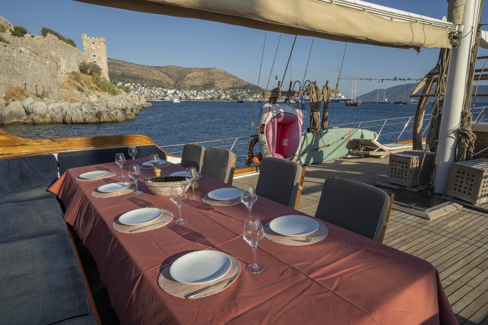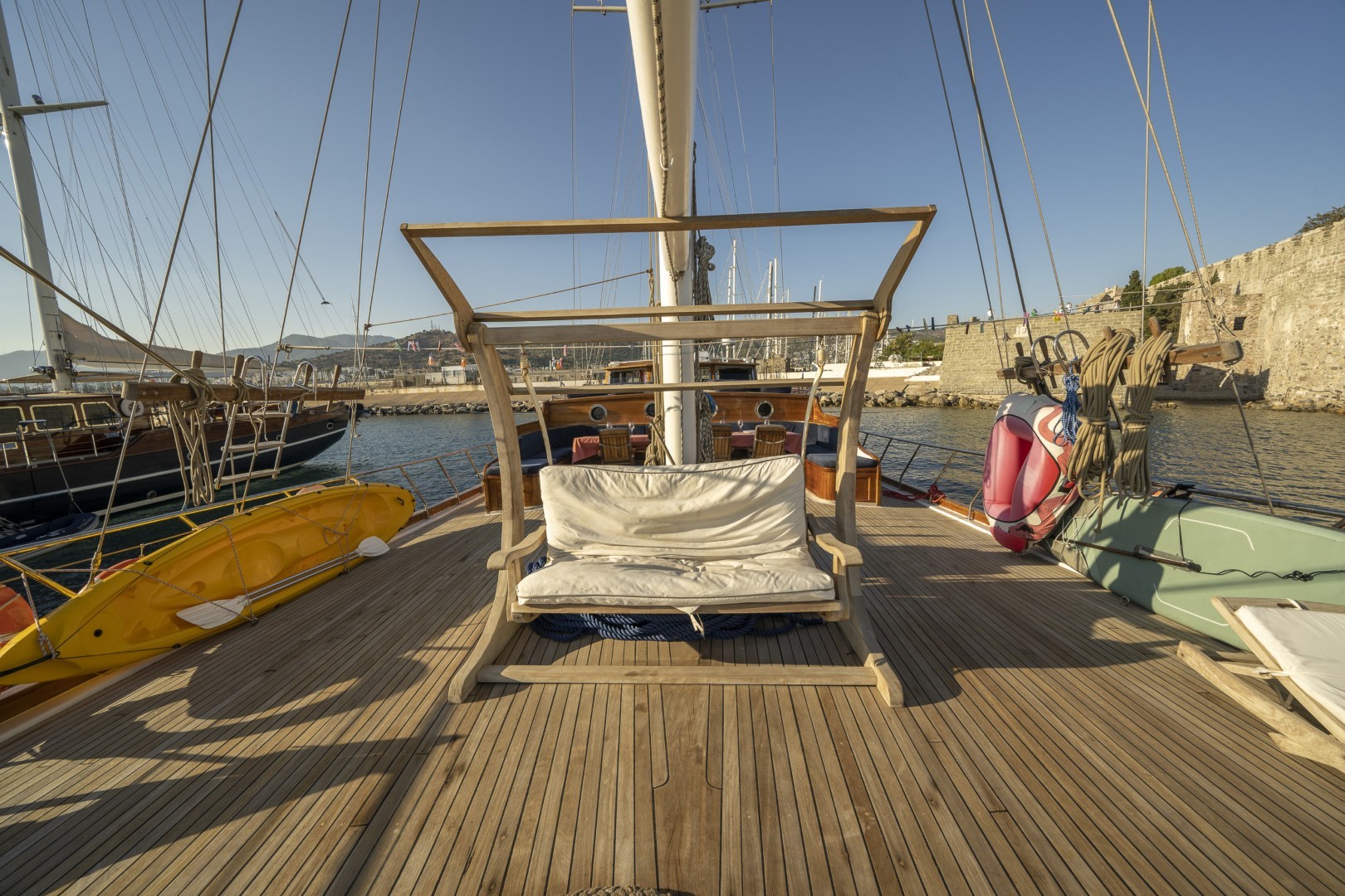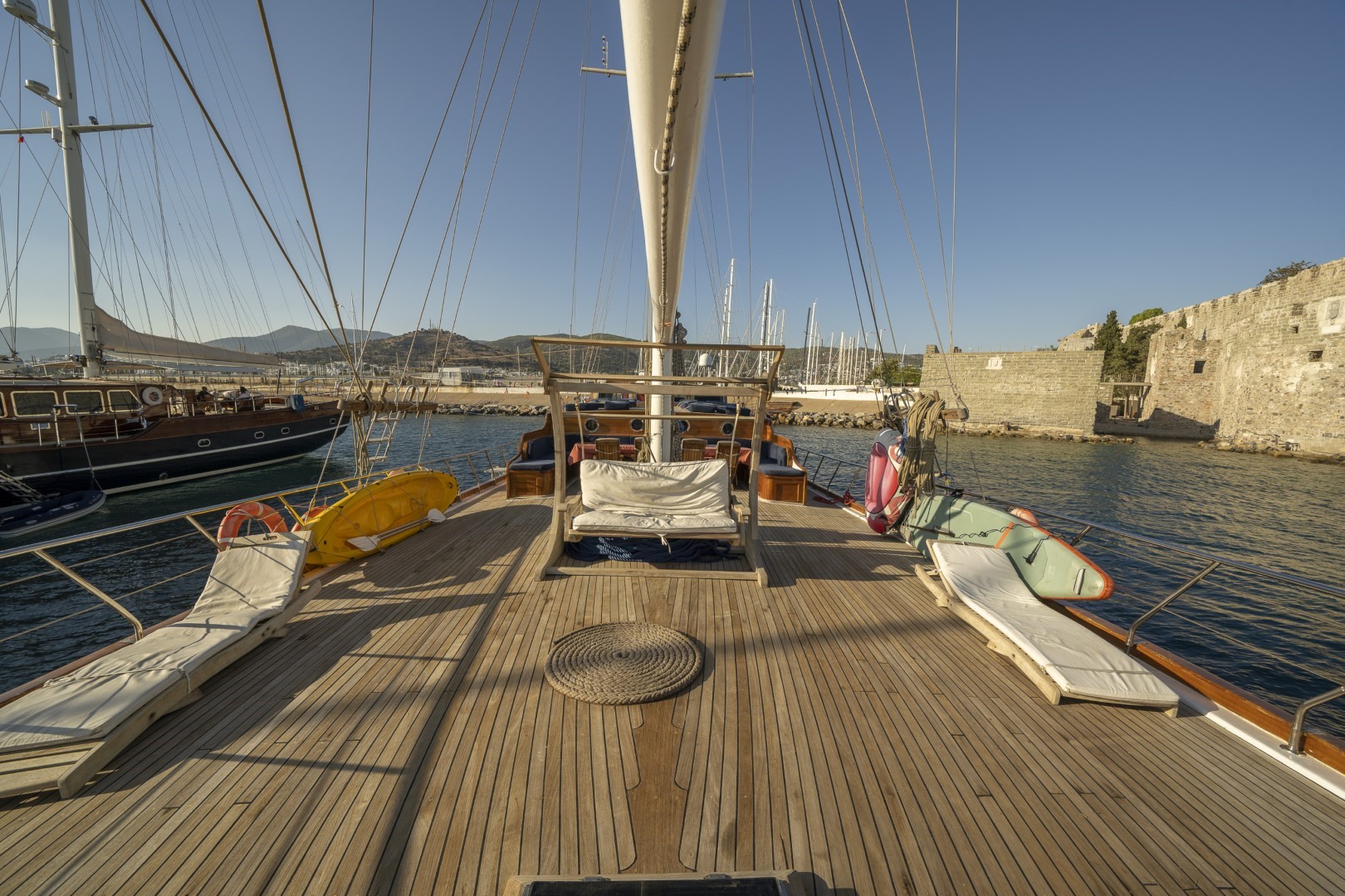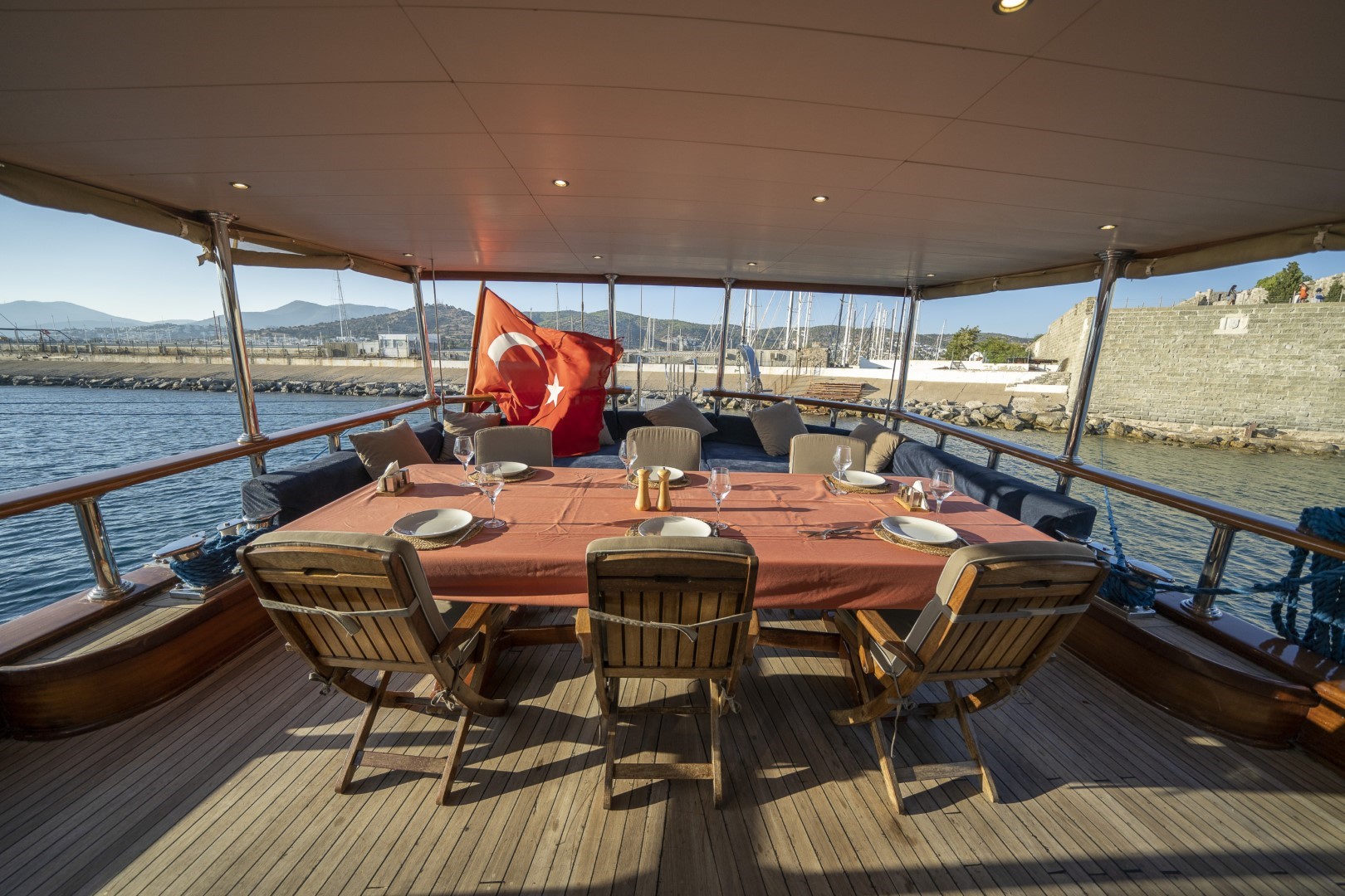 Zevkle dizayn edilmiş lüks guletimizin kabinleri, iç- dış güvertesi ferahlığı ve genişliğiyle kullanım açısından ön plandadır. Güvertede geniş güneşlenme alanı ve güneşlenme minderleri yeterli miktarda mevcuttur. Tam donanımlı mutfağımızda hazırlanan yemekleri salonda veya güvertede bulunan sofralarımızda tadabilirsiniz. Mavi yolculuğunuzun güzel geçmesini temenni eder ve sunarız. İyi tatiller..