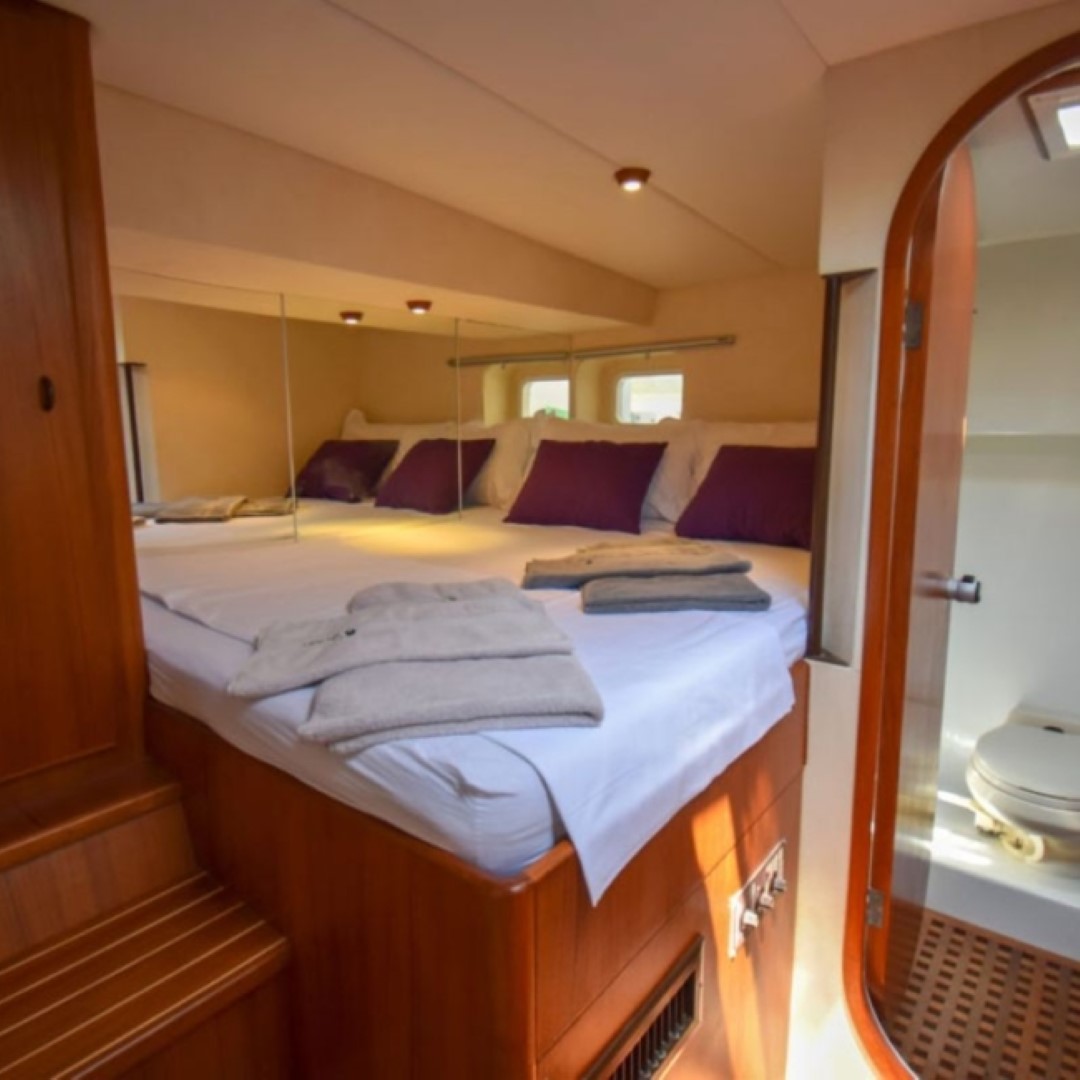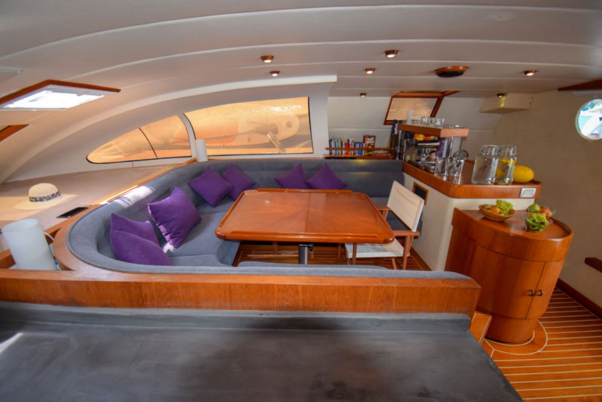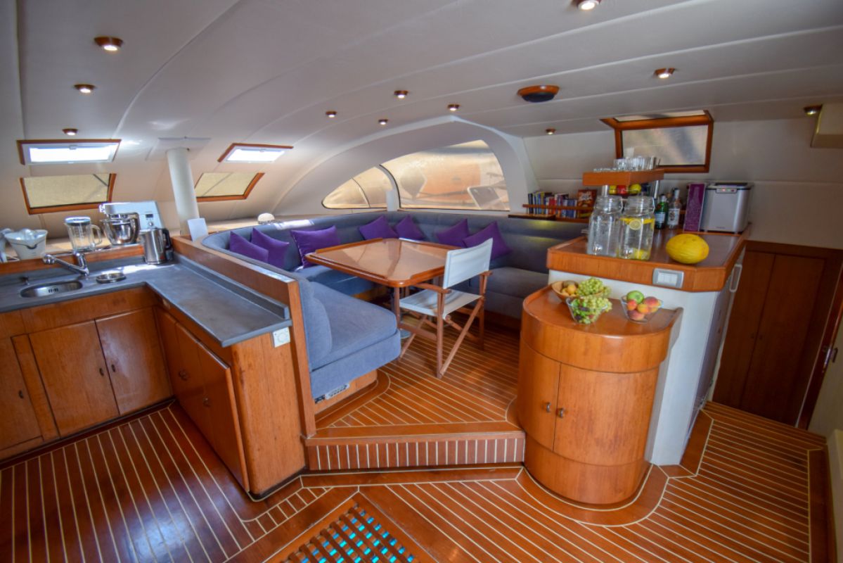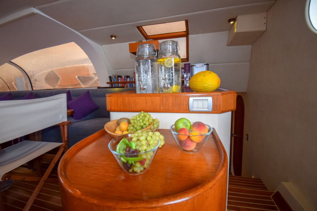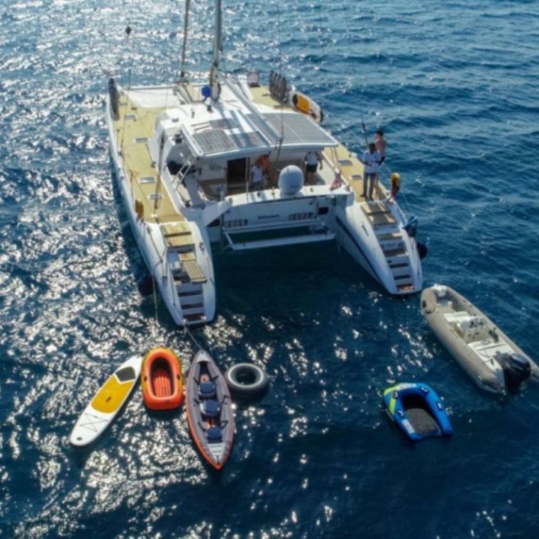 Katamaran Luna, 1994 yılında fiberglas gövdeden 17.5 metre uzunlukta, 8.60 metre genişlikte ve 1.60 metre derinlikte inşa edilmiştir. Her yıl bakımları yapılan teknemiz 2018 yılında modern şekilde renovasyona uğrayıp son halini almıştır. Lüks katamaranımız 3 Double Kabinde 6 misafir ağırlayabilmektedir. Kabinler geniş ve ferah olup Televizyon, Müzik Sistemi, Klima, Duş ve Wc mevcuttur. Geniş bir yelken ağına sahip olup kolay sürüş imkanı mevcut olan bir katamarandır. Mutfak ve Yemek Masası ’’U Tipi’’ yapıda olup geniş bir saklama alanı mevcut ayrıca buz yapıcı ve kahve makinesi mutfakta yer almaktadır. Salonda internet, televizyon, müzik sistemi güvertede müzik sistemi geniş güneşlenme alanı ve minderleri mevcuttur.