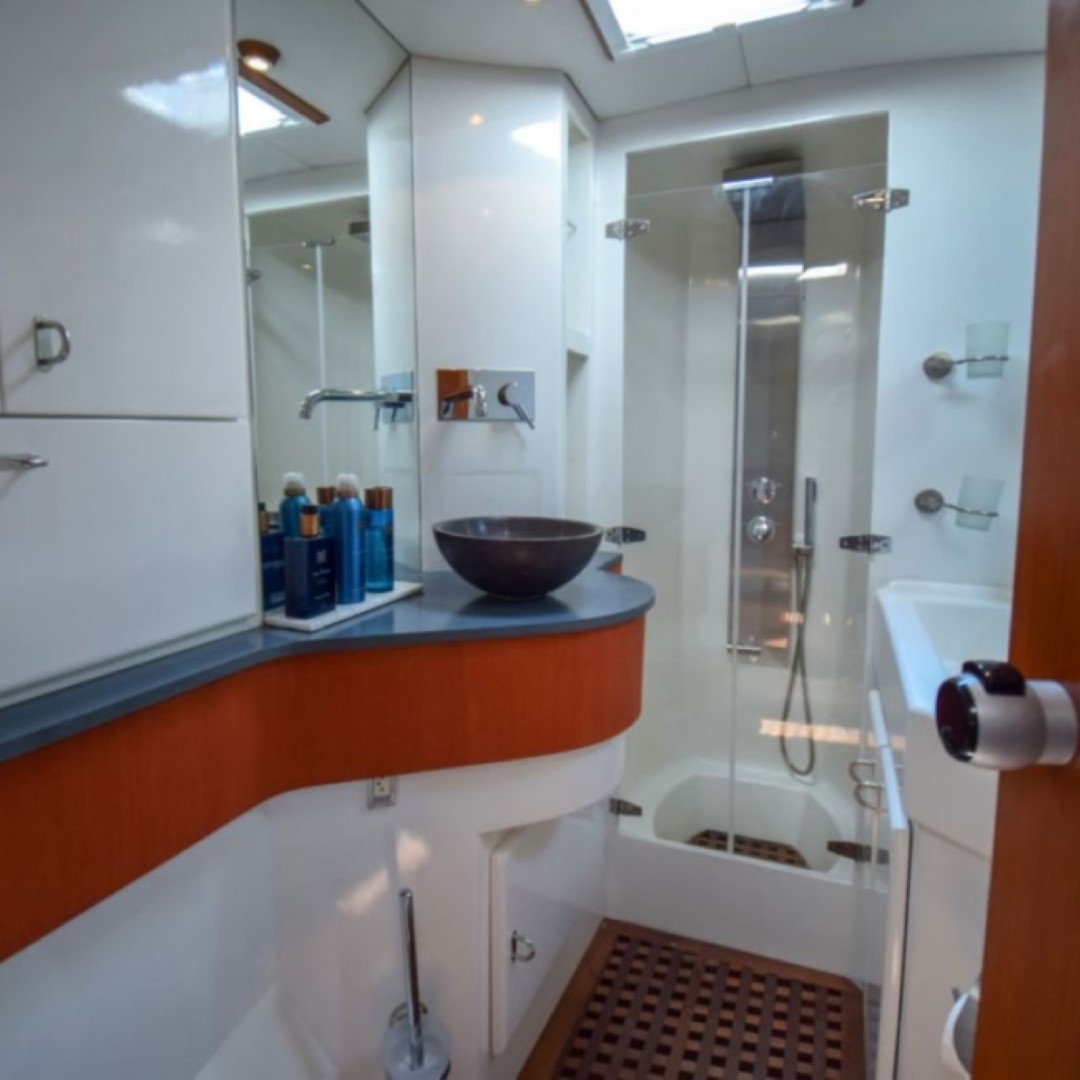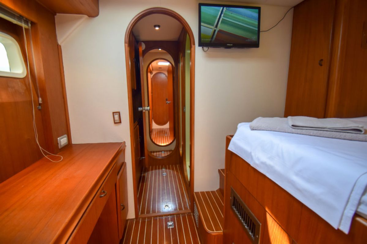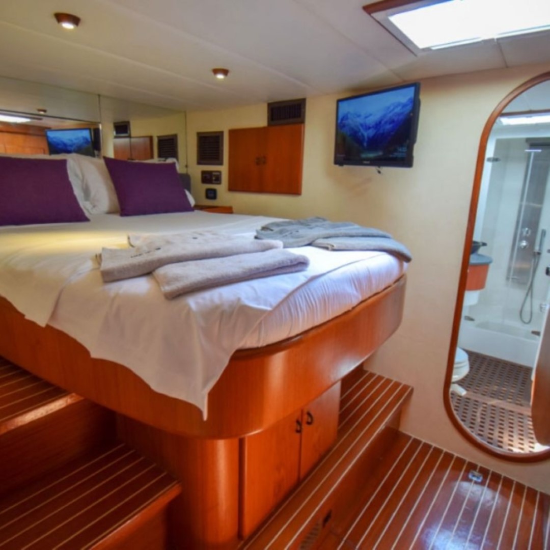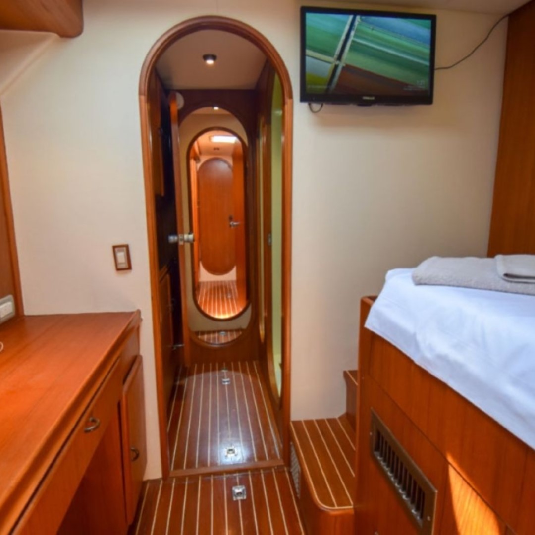 Katamaran Luna, 1994 yılında fiberglas gövdeden 17.5 metre uzunlukta, 8.60 metre genişlikte ve 1.60 metre derinlikte inşa edilmiştir. Her yıl bakımları yapılan teknemiz 2018 yılında modern şekilde renovasyona uğrayıp son halini almıştır. Lüks katamaranımız 3 Double Kabinde 6 misafir ağırlayabilmektedir. Kabinler geniş ve ferah olup Televizyon, Müzik Sistemi, Klima, Duş ve Wc mevcuttur. Geniş bir yelken ağına sahip olup kolay sürüş imkanı mevcut olan bir katamarandır. Mutfak ve Yemek Masası ’’U Tipi’’ yapıda olup geniş bir saklama alanı mevcut ayrıca buz yapıcı ve kahve makinesi mutfakta yer almaktadır. Salonda internet, televizyon, müzik sistemi güvertede müzik sistemi geniş güneşlenme alanı ve minderleri mevcuttur.
