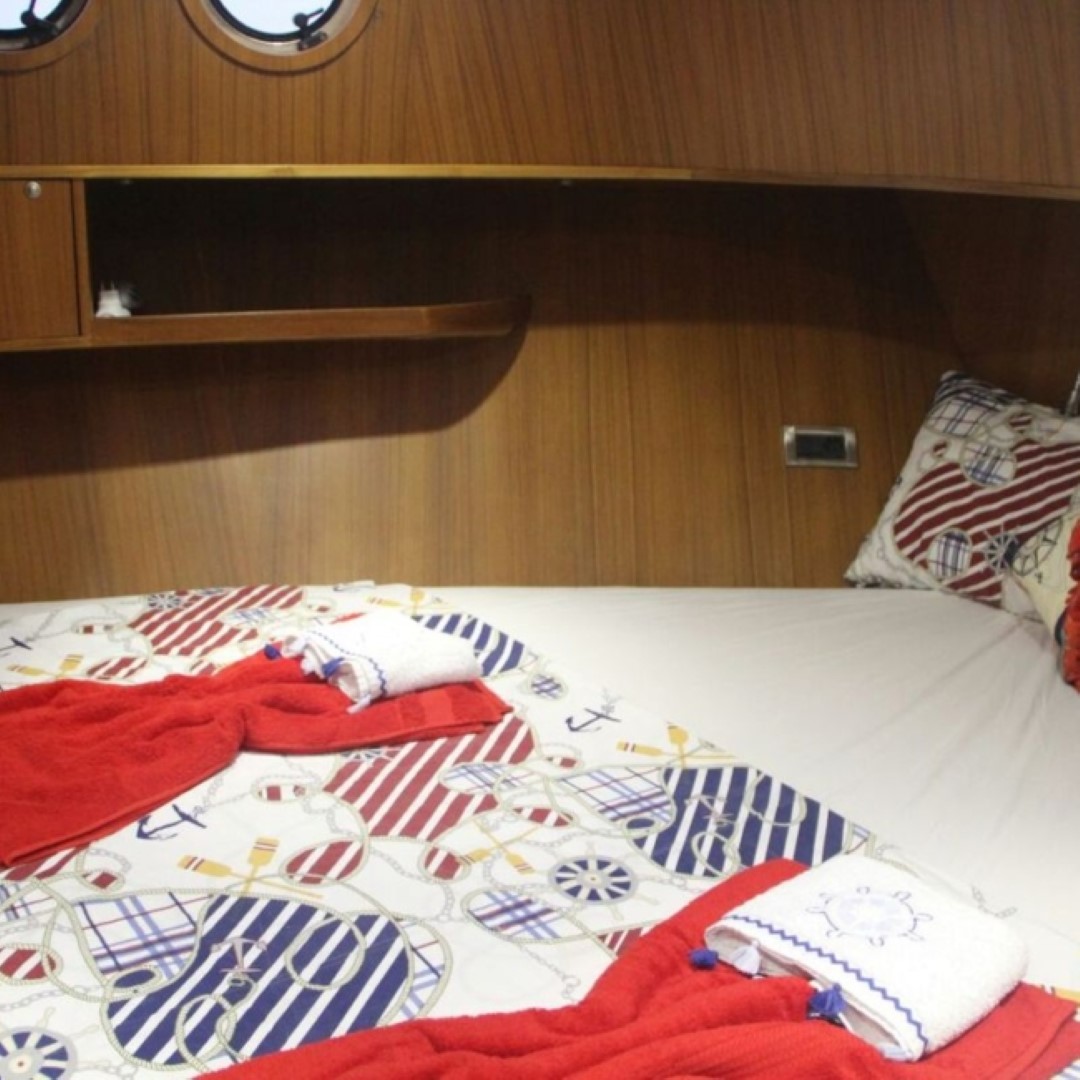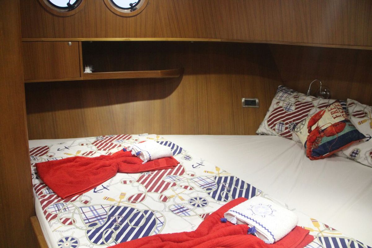 2015 senesinde mavi sulara açılmış olan bu tekne, 440 HP motor gücü, 14kWA jeneratörlere sahiptir. Tüm kabinlerin içinde klima, salonda dvd, tv, balık tutma ekipmanları, güneşlenme minderleri ve müzik sistemi de mevcuttur.