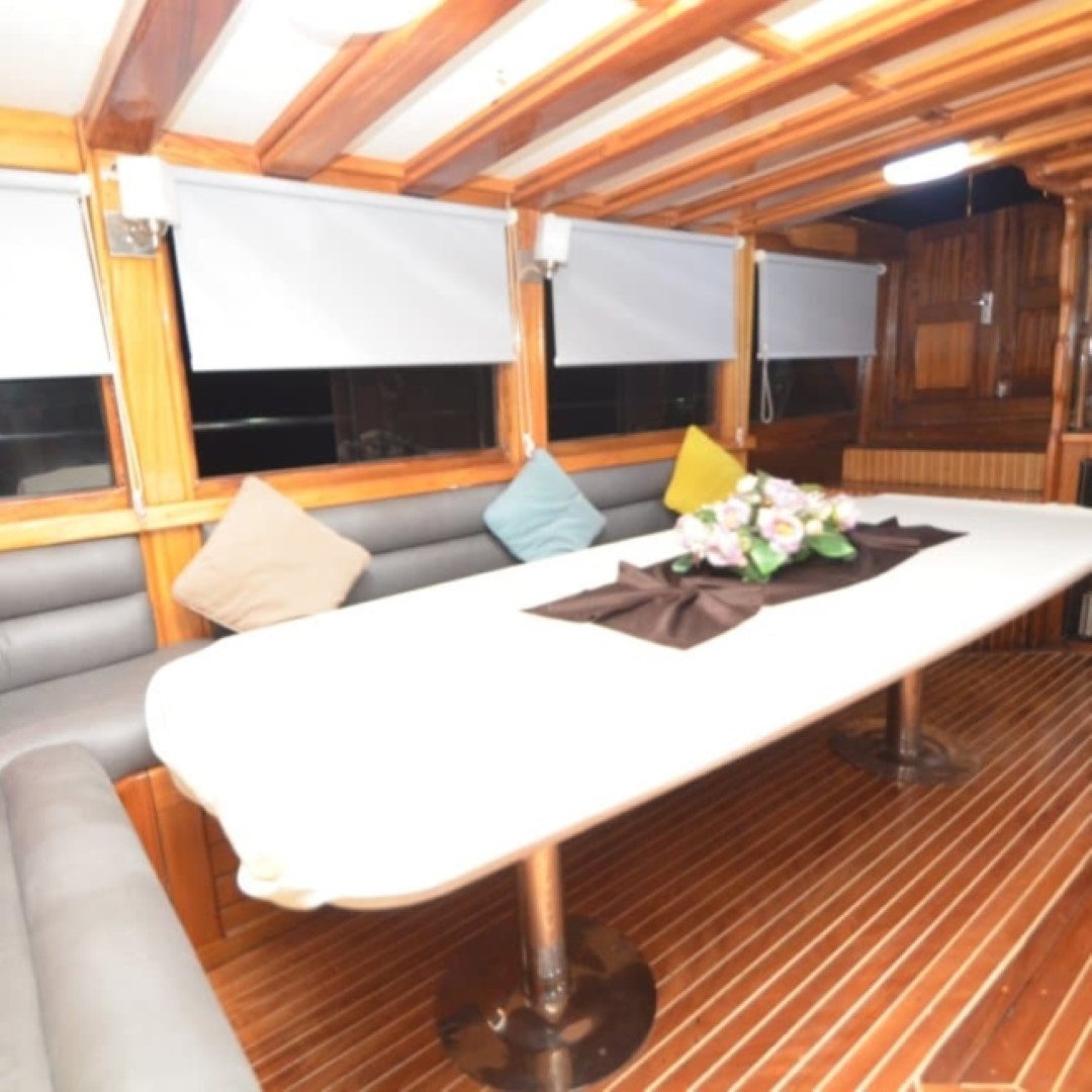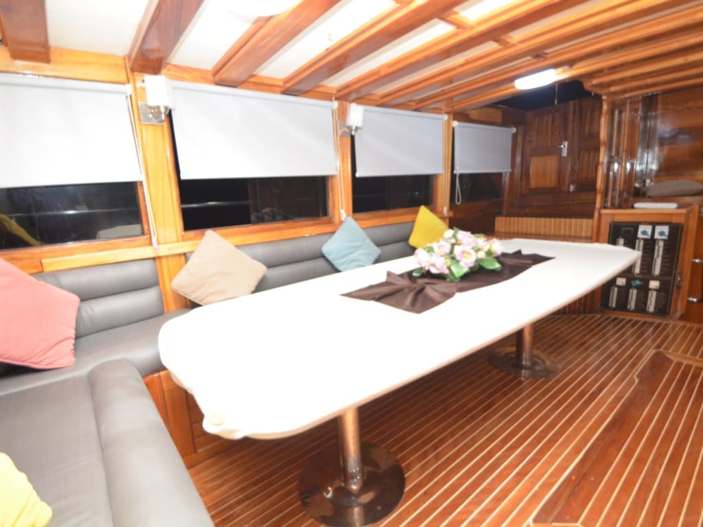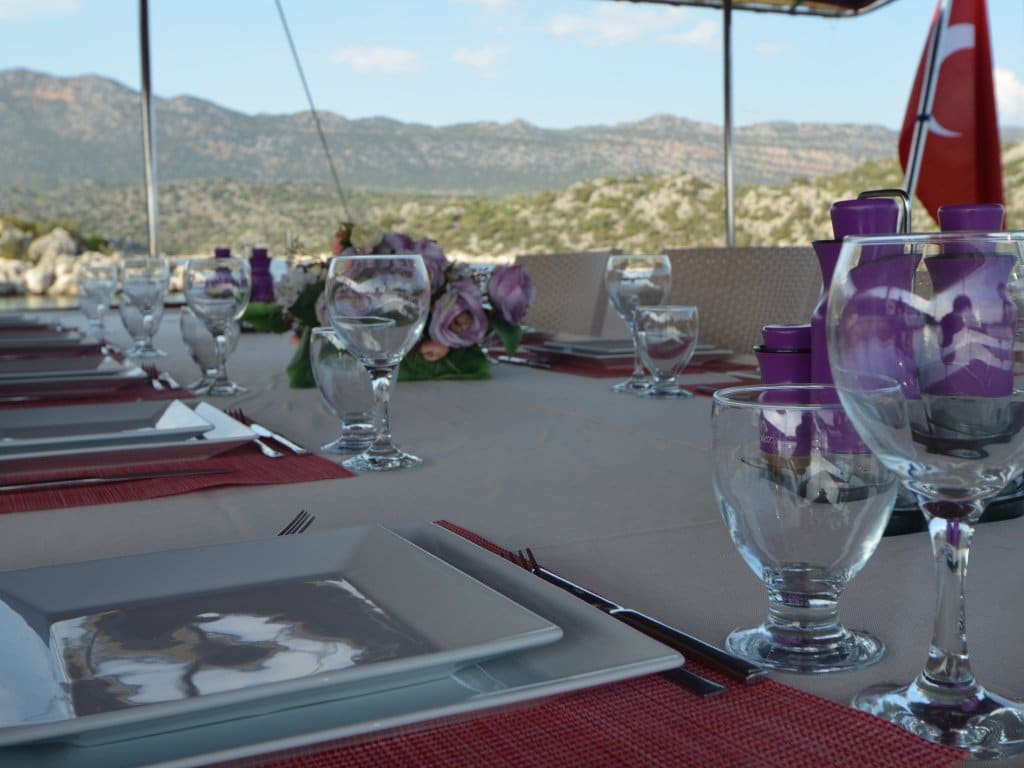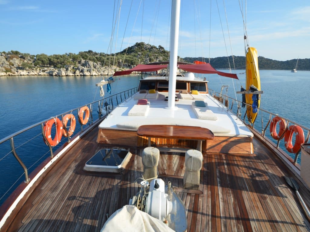Mozaik gulet yatımızda tüm misafirlerimiz için yeteri kadar güneşlenme minderleri, dinlenme alanları, sandalye, yemek masası bulunmaktadır.
