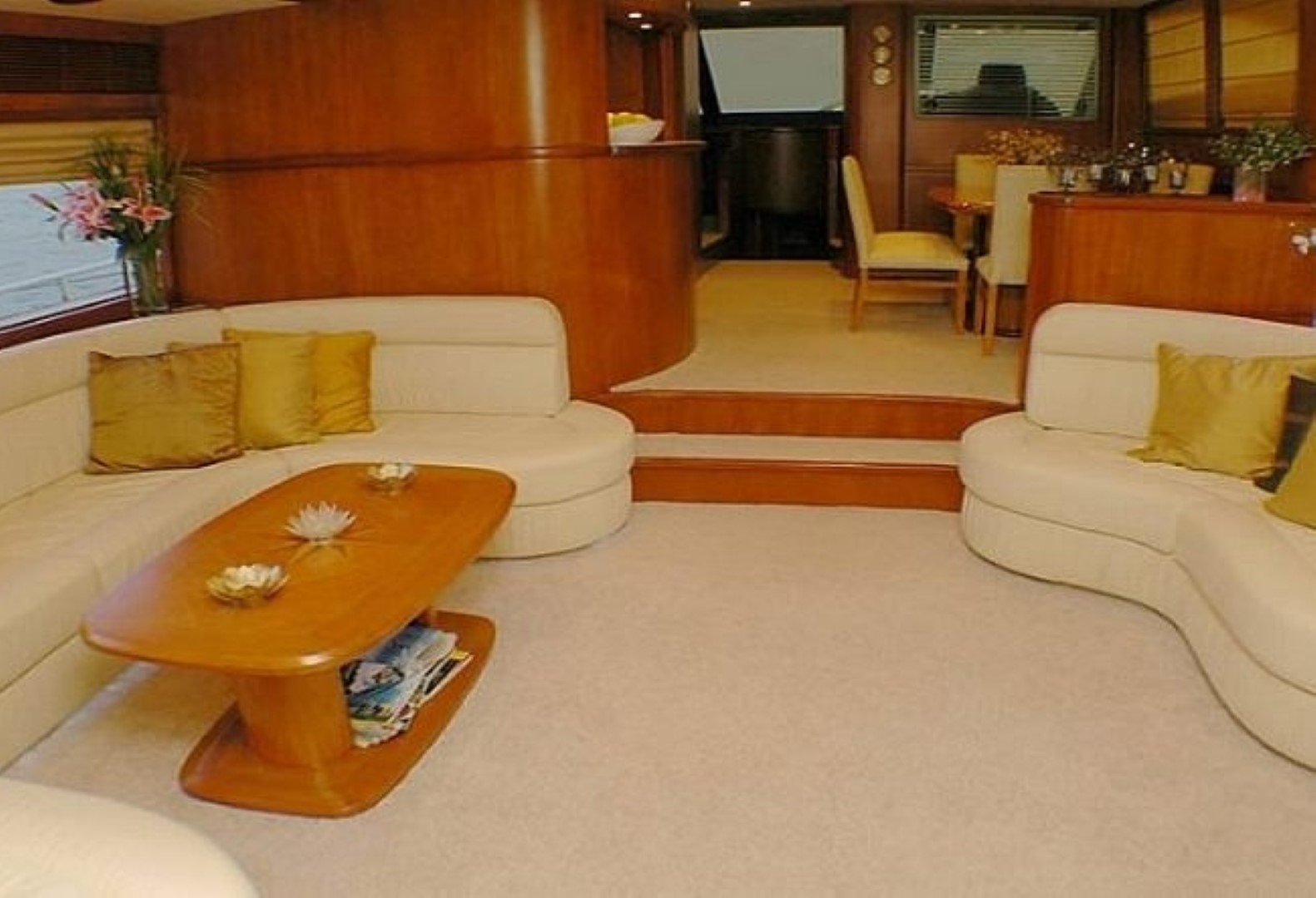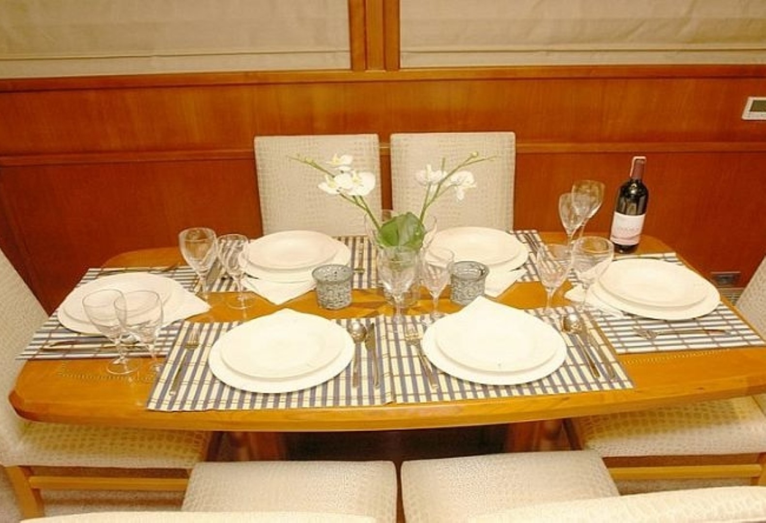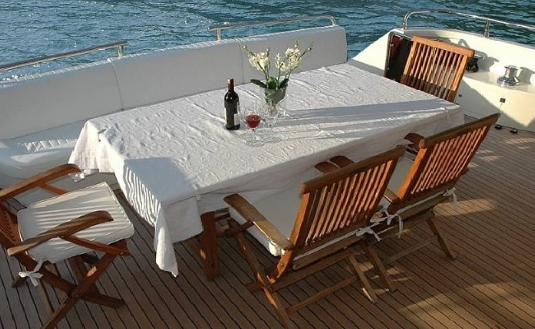 Motoryat My Flamingo, kıç güvertede geniş minderli bir oturma alanı, yemek masası ve yemek alanı bulunmaktadır. Salonda ise ayrı bir yemek masası olup yemekleriniz tam donanımlı ayrı bir mutfakta hazırlanmaktadır ayrıca salon bölümünde siz misafirlerimizin eğlenceli, keyifli ve hoş vakit geçirebilmesi için TV, müzik sistemi ve DVD player mevcuttur. Tüm misafirlerimize yeterli güneşlenme alanları ve güneş minderleri mevcuttur.Motoryat My Flamingo,eşsiz manzaraya karşı tüm yılın stresini atarak güneşlenip unutulmaz anılar yaşayabilmenizi taahhüt eder.