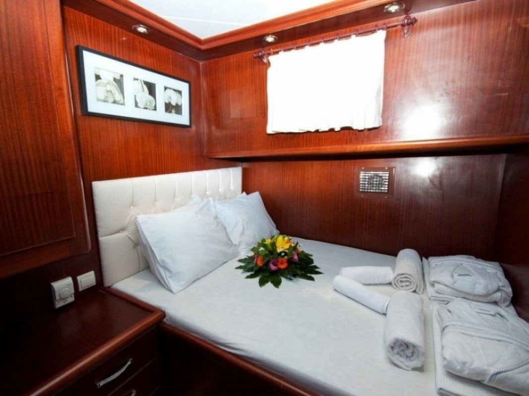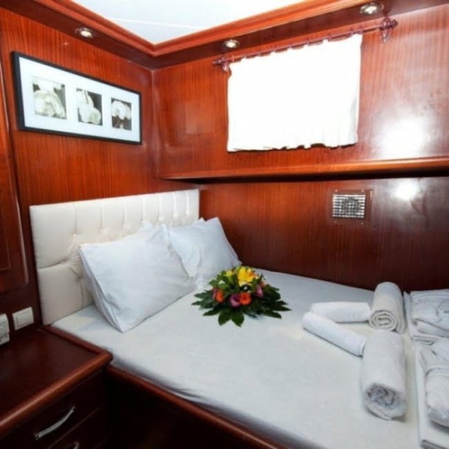 Naos 1 Guleti 2016 yılında 21 metre uzunluğunda ve 5.3 metre genişliğinde inşa edilmiştir. 6 Double Kabin olmak üzere toplam 12 misafir ağırlama kapasitesi vardır. Kabinlerimiz geniş, ferah ve modern bir yapıda olup Klima, Duş ve Wc mevcuttur. Tam donanımlı mutfağımızda özenle hazırlanan yemeklerimizi kıç güvertede veya salonda bulunan şık sofralarımızda tadabilirsiniz. Güvertede geniş minderli oturma alanı, güneşlenme alanı ve güneşlenme minderleri yeterli miktarda mevcuttur.