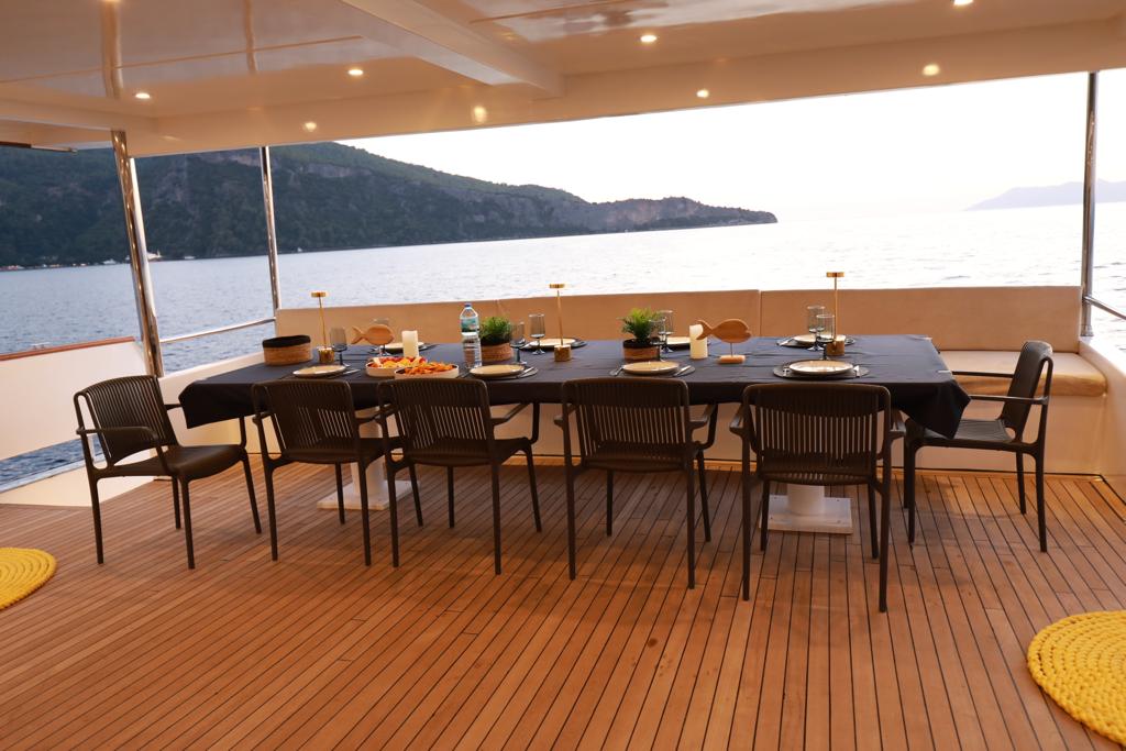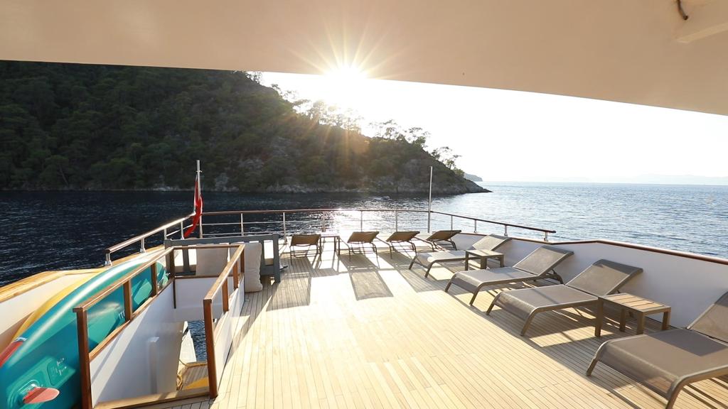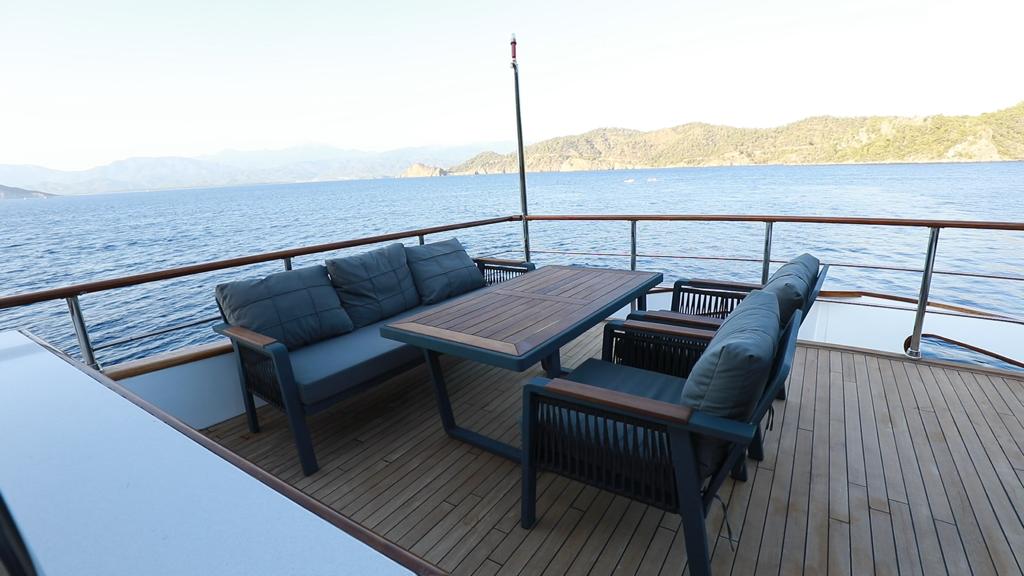 bulunmaktadır. Her kabinde özel banyo ve tuvalet bulunmaktadır. Türk bayrağıyla mavi tur hizmeti veren teknemizde 3 deneyimli ekiple birlikte rahat ve konforlu
