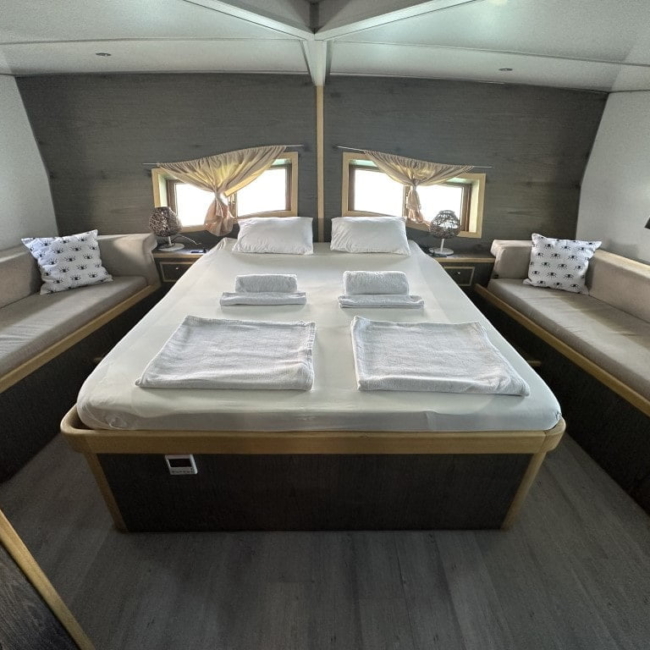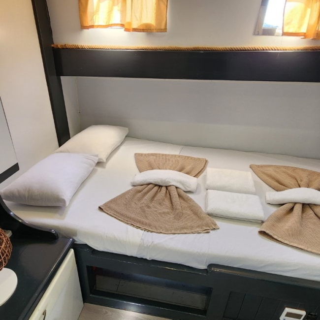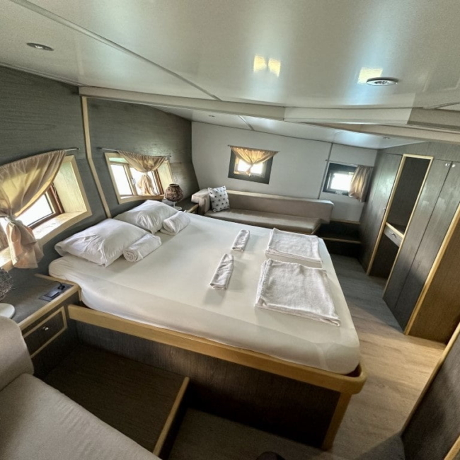 Gulet New Aria, mavi turunuz boyunca tecrübeli 4 mürettebatı ile siz değerli misafirlerimize kaliteli ve konforlu bir tatil sağlamaktadır.