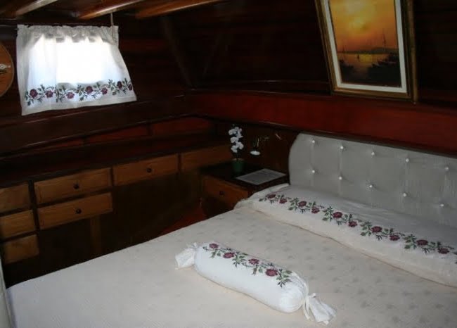 Gulet Nirvana S 15m uzunluğunda 3 kabinli Nirvana S teknemiz, mavi yolculuk tatil planlarınızda deneyimli ekibiyle hizmet vermektedir.Göcek başlangıçlı mavi yolculuk düşünen küçük gruplara güler yüzlü, ailece çalışan personeli ile hizmet vermektedir. Kaptanımız Sadi Bey ve eşi Meryem Hanım tatiliniz boyunca sizlere güzel anılar yaşatacak ve mavi turu sevdirecektir. 1 adet 2 kişilik duşu wc’si içinde double kabini, 2 adet ortak duş wc’li birer kişilik kabini ile 4 kişiye kadar mavi turlarda sizlere hizmet verebilmektedir. Misafirlerimizin 6 kişi olması ve gecelemeyi güvertede yapması durumunda 6 kişi olarak da mavi tur imkanımız bulunmaktadır. Ayrıca 2 kişi olarak planladığınız mavi yolculuklarınızda tarih seçeneğine göre % 10 -15 oranlarında ekstra indirim yapma olanağımız da bulunmaktadır.