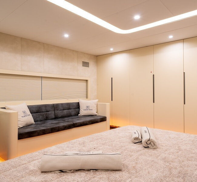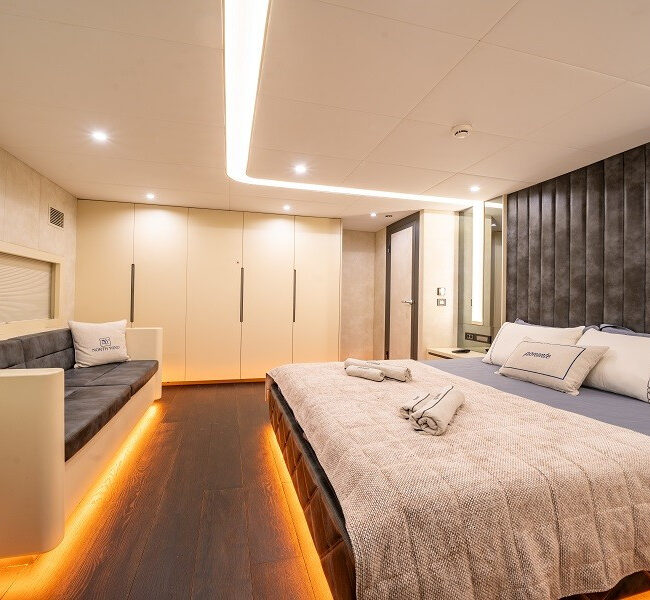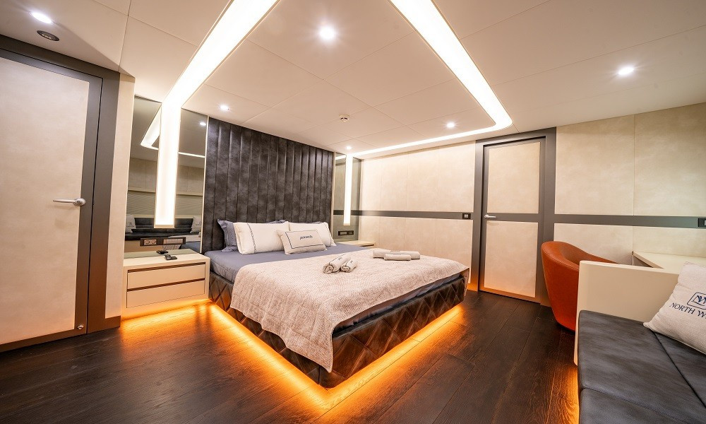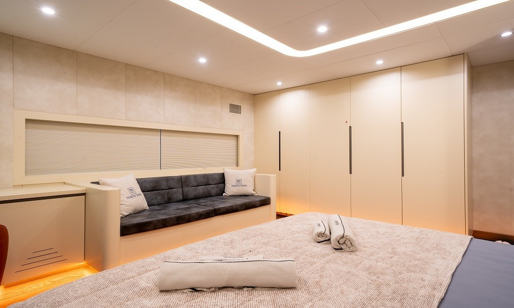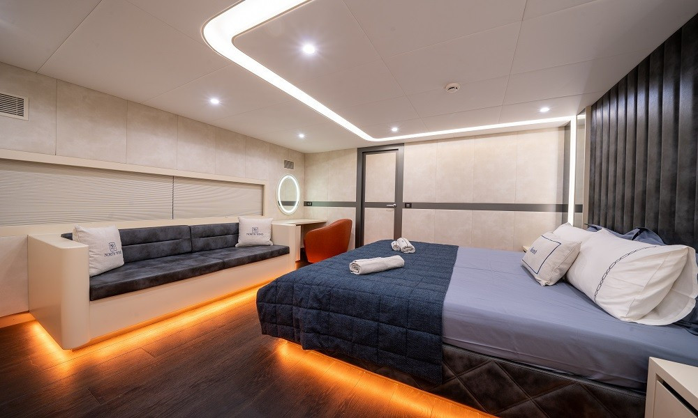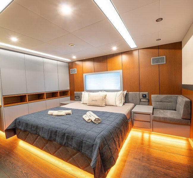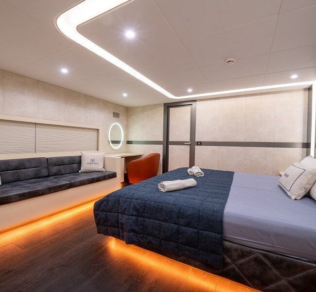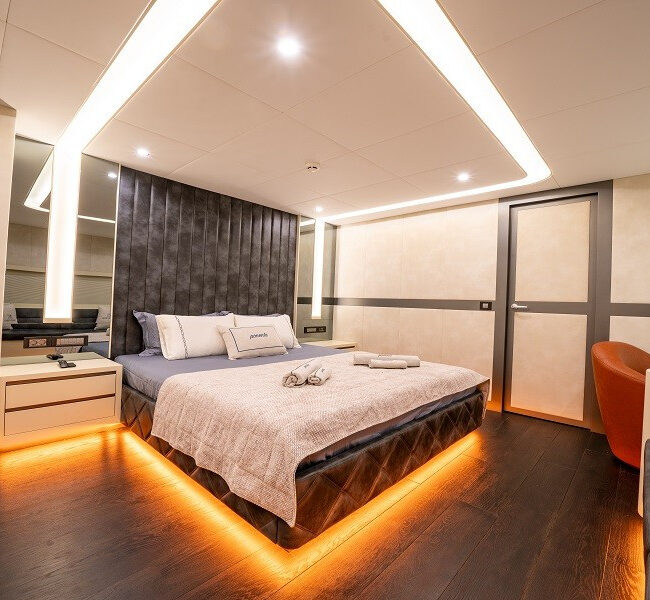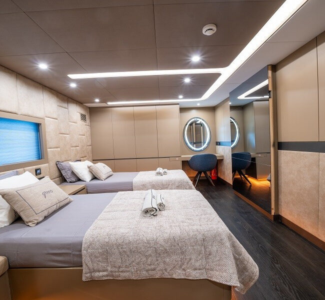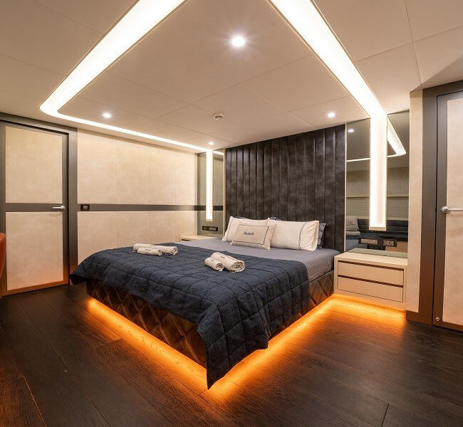 Toplamda 5 kabin: 1 master, 3 double ve 1 twin kabini mevcuttur. Maksimum konaklama kapasitesi 10 kişidir.
