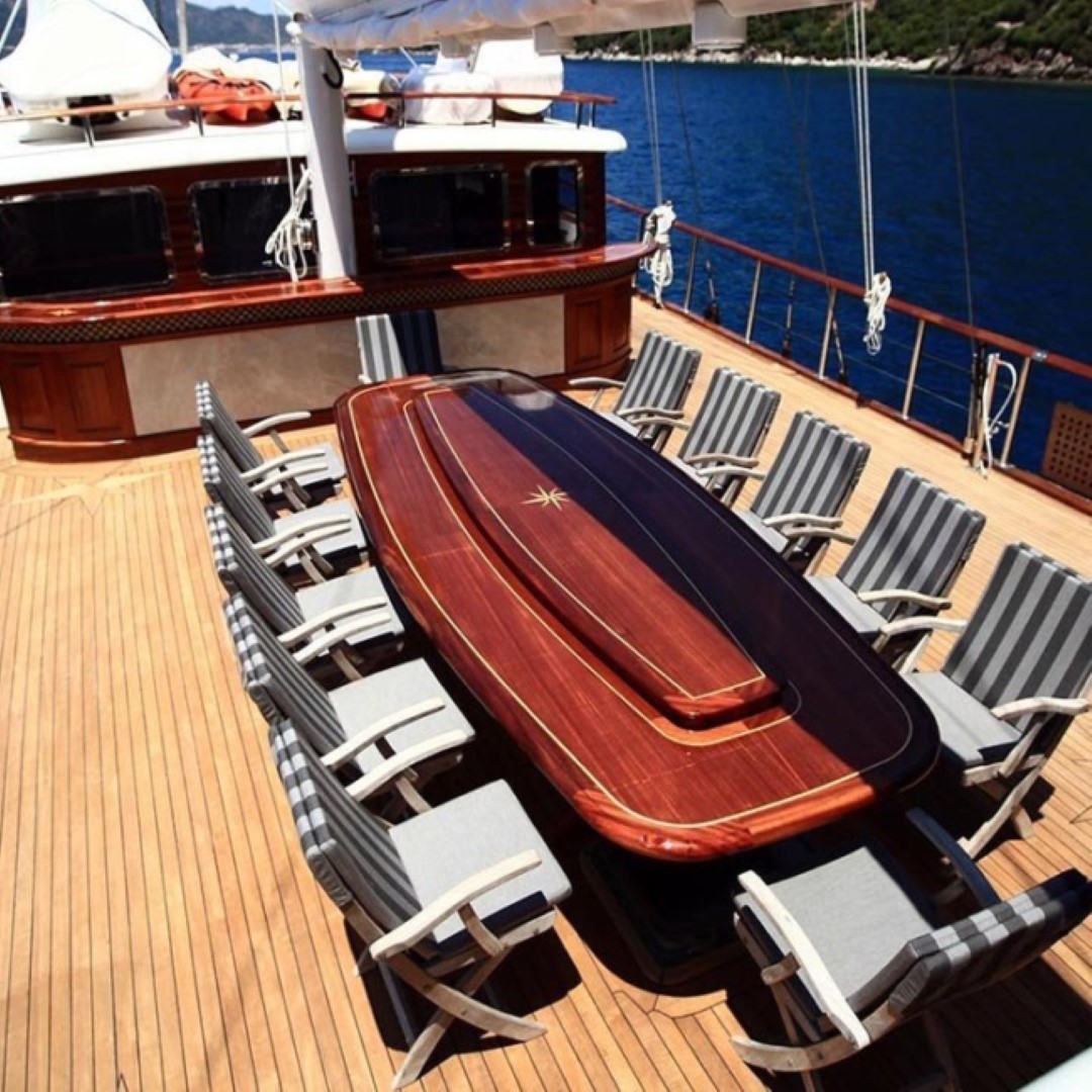 2002 Yılında 31 metre uzunluğunda ve 7.4 metre genişliğinde inşa edilen Nurten A Guleti 2012 yılında baştan sona modern şekilde renovasyona uğrayıp günümüzdeki halini almıştır. 2 Master Kabin , 2 Double ve 2 Twin Kabin olmak üzere toplam 3 Kabinden oluşmaktadır. Kabinlerimiz geniş, ferah ve modern bir yapıda olup Klima, Duş ve Wc mevcuttur. Tam donanımlı mutfağımızda özenle hazırlanan yemeklerimizi kıç güvertede veya salonda bulunan şık sofralarımızda tadabilirsiniz. Güvertede geniş minderli oturma alanı, güneşlenme alanı ve güneşlenme minderleri yeterli miktarda mevcuttur. Konforlu içeriğiyle birlikte kendinizi adeta evinizde hissedeceğiniz teknede su sporlarının en iyilerini de yapmaya başlayabilirsiniz. Bunun için özel olarak hazırlanmış ekipmanları teknede rahatlıkla bulabilirsiniz. Balık tutma ekipmanları, şnorkel ekipmanları gibi içerikler burada denizin keyfini en iyi şekilde çıkartmanızı sağlayacaktır. İletişim ve güvenlik açısından da beklentilerinizi tam olarak karşılayacak bir yapıya sahiptir. İletişim cihazları, pusula, GPS, seyir cihazları, derinlik ölçer, elektronik harita gibi seçeneklerde teknede bulunanlar arasında yer alır.