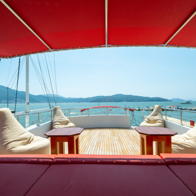 Gulet Ok Ay;2023 yılında denize indirilen lüks ve konforu bir araya getirerek Fethiye’den hareketle Göcek’in benzersiz koylarında unutulmaz bir tatil sunuyor. Doğal güzellikleriyle ünlü bu bölgede, masmavi sularda huzurlu bir kaçış sizleri bekliyor.Guletimizde 1 master ve 2 double kabin olmak üzere toplam 3 kabin ve 3 banyo bulunur. 6 kişi kapasiteli olan teknemiz, 18 metre uzunluğunda ve 6 metre genişliğindedir.Teknemizde 1 kaptan, 1 aşçı ve 1 hostes ile kaliteli bir hizmet sunulmaktadır.