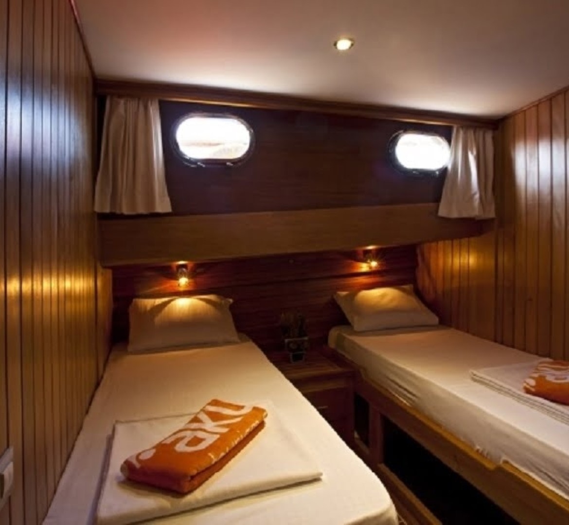 Gulet Osman Kurt, 32 metre uzunluğunda, 7.20 metre genişliğinde 2000 yılında Ketch tipinde ahşaptan inşa edilmiştir. Her yıl bakımları yapılan teknemiz 2013 yılında modern şekilde renovasyona uğrayıp günümüzdeki halini almıştır. Ana Limanı Bodrum olan teknemiz Türk Bayraklıdır. 4 Double Kabin ve 4 Twin Kabinde toplam 16 misafiri ağırlayabilmektedir. Kabinler geniş, ferah ve modern şekilde zevkle dizayn edilmiş olup Klima, Duş ve Wc mevcuttur. Tam donanımlı mutfağımızda özenle hazırlanan yemeklerimizi kıç güvertede veya salonda bulunan şık sofralarımızda tadabilirsiniz. Güvertede geniş minderli oturma alanı, güneşlenme alanı ve güneşlenme minderleri yeterli miktarda mevcuttur. Misafirlerin daha iyi zamanlar geçirebilmesi için müzik sistemi, TV ve uydu salonda yer alırken klima günde 6-8 saat kullanıma açıktır. Eğer denizin mavi sularını en iyi şekilde değerlendirmek isterseniz bunun içinde teknenin pek çok avantajı bünyesinde bulundurduğunu belirtmek gerekir. İletişim ve güvenlik açısından beklentilerinizi tam olarak karşılayacak bir yapıya sahiptir. İletişim cihazları, pusula, GPS, seyir cihazları, derinlik ölçer, elektronik harita gibi seçeneklerde teknede bulunanlar arasında yer alır. Ege ve Akdeniz’in eşsiz güzellikteki koylarında sizleri ağırlamaktan memnuniyet duyarız.