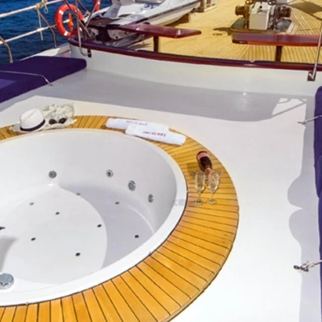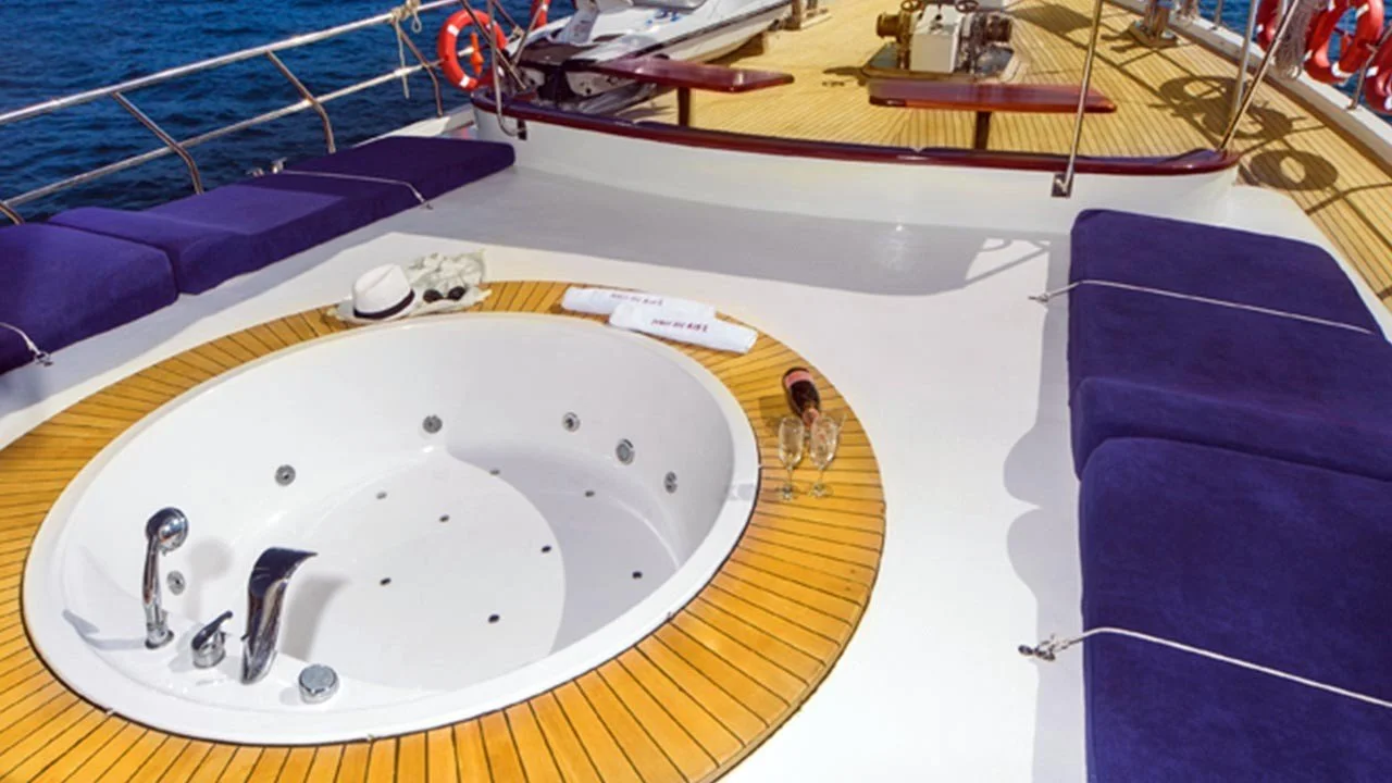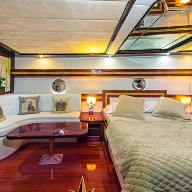 2007 Yılında 36 metre uzunluğunda ve 8 metre genişliğinde inşa edilen Perla Del Mar 2 Guleti 2013 yılında baştan sona modern şekilde renovasyona uğrayıp günümüzdeki halini almıştır. 2 Master Kabin, 3 Double Kabin ve 1 Twin Kabin olmak üzere toplam 12 misafir ağırlayabilmektedir. Kabinlerimiz geniş, ferah ve modern bir yapıda olup tüm hepsinde Tv, Klima, Duş ve Wc mevcuttur. Master kabinlerimizde ve güvertede sizlerin konforu düşünülerek farklı bir atmosfer sunan Jakuzi lüks guletimizde hizmetinize sunulmuştur. Tam donanımlı mutfağımızda özenle hazırlanan yemeklerimizi kıç güvertede veya salonda bulunan şık sofralarımızda tadabilirsiniz. Güvertede geniş minderli oturma alanı, güneşlenme alanı ve güneşlenme minderleri yeterli miktarda mevcuttur.