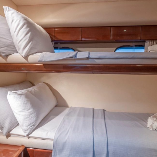 1 VIP, 1 twin, 1 master ve 1 ranzalı kabin olarak hizmet vermektedir.