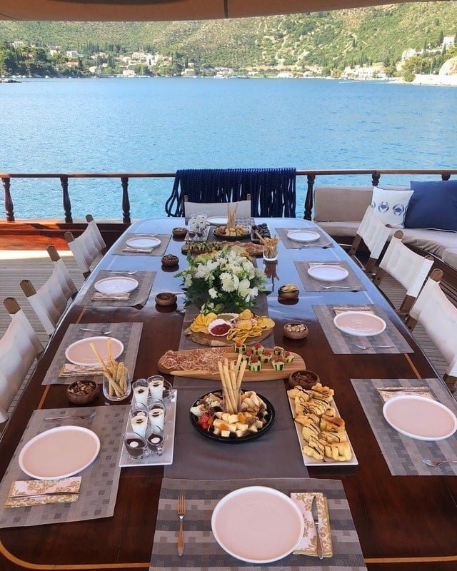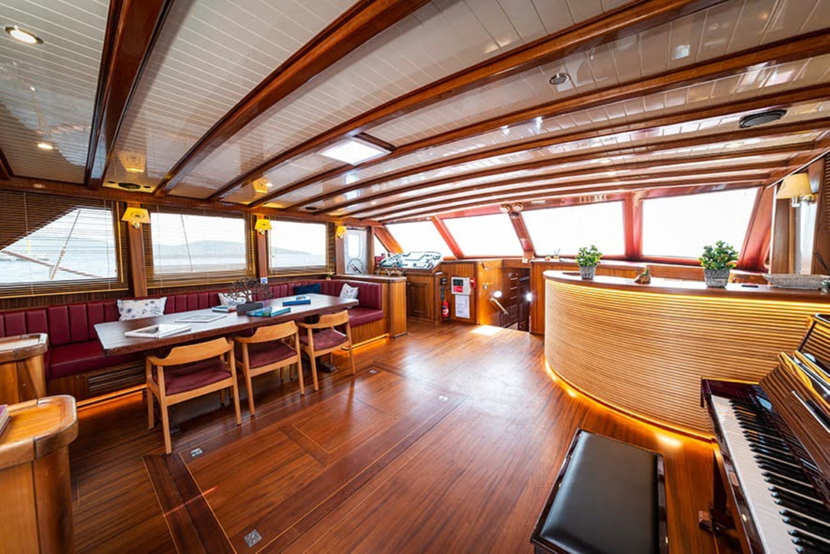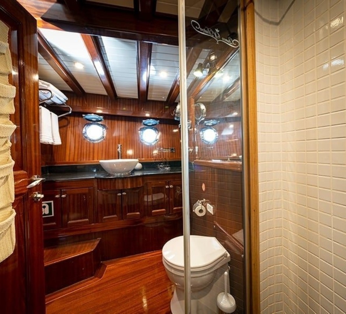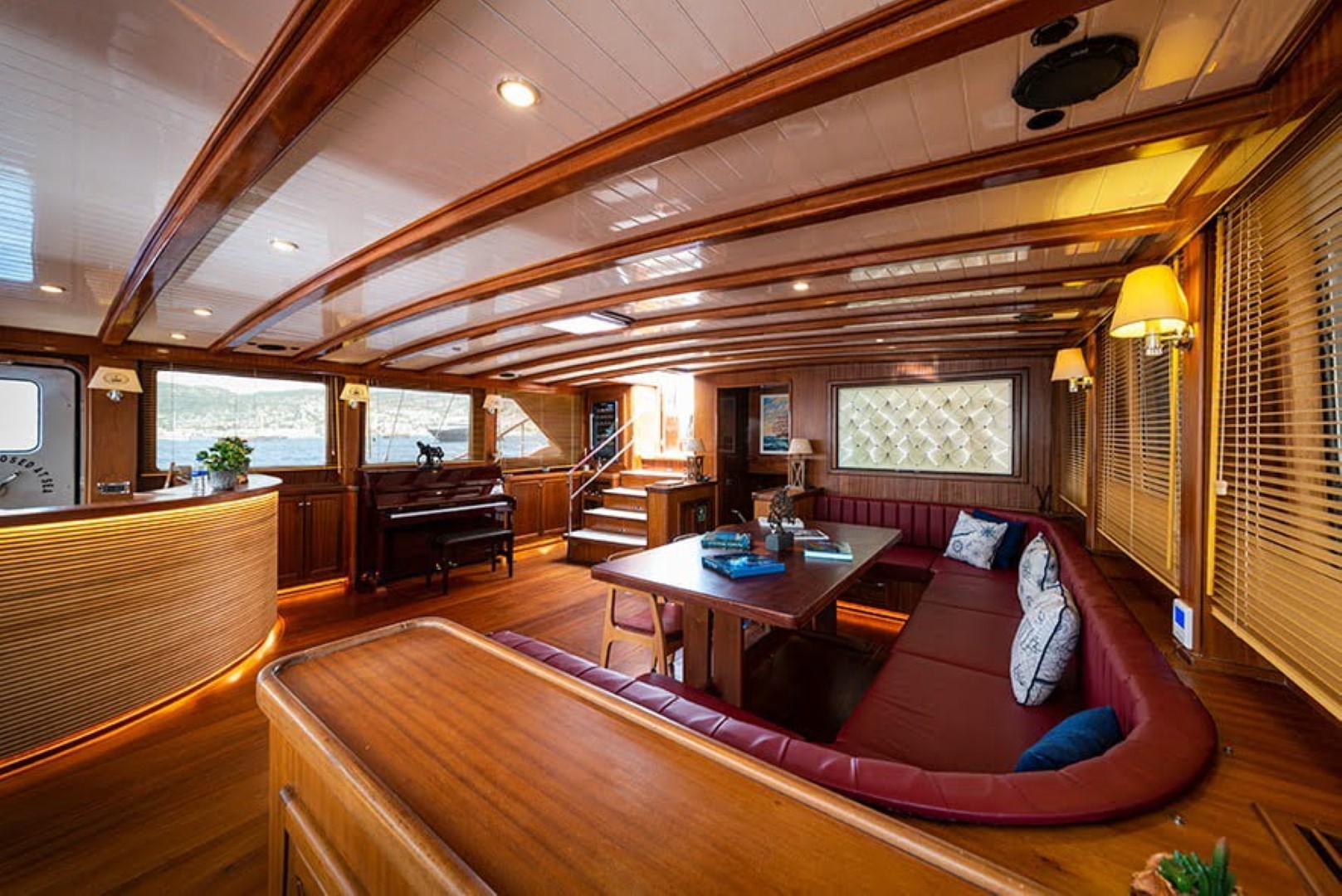 Kıç güvertede geniş minderli bir oturma alanı, yemek masası ve yemek alanı bulunmaktadır. Salonda ise ayrı bir yemek masası olup yemekleriniz tam donanımlı ayrı bir mutfakta hazırlanmaktadır. Queen Of Datca Gulet tüm misafirleri için yeterli güneşlenme minderlerine sahip olarak düzenlenmiştir. Farklı rotalar keşfetmek, konforlu bir tekne kiralamak ve Avrupa’da keyifli bir mavi tur tatili yapmak istiyorsanız Gulet Queen Of Datca sizin için en doğru seçimlerden biri olacaktır
