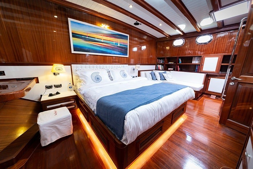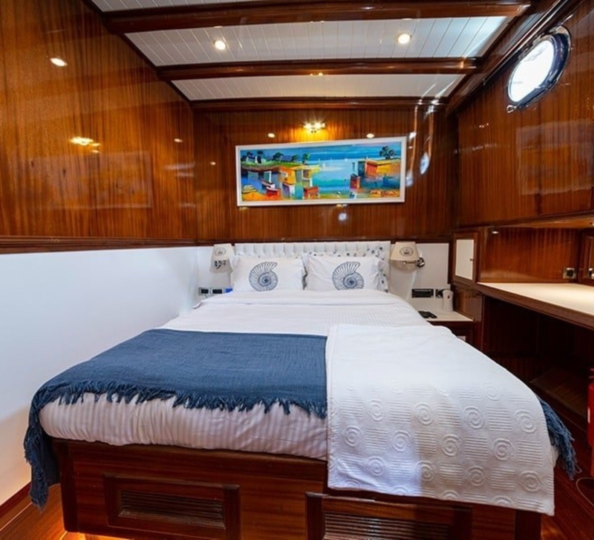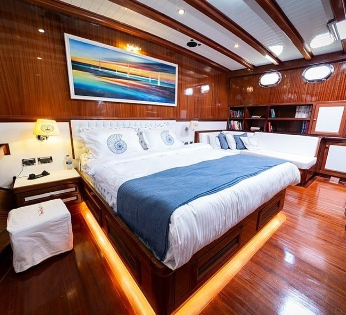 36 metre uzunluğunda 2015 yılında yenilenmiştir. Geniş kabinler, geniş bir güverte ve salona sahip Gulet Queen Of Datca konforunuz için tasarlanmıştır. 10 kişiye kadar geniş konaklama imkanı sunan teknede, 1 Master, 2 Double, 2 Convertible Twins kabin bulunmakta ve her kamarada özel duş ve tuvalet bulunmaktadır. Kabinler dahil olmak üzere tüm tekne klimalıdır. Salonda ve tüm kabinlerde TV, DVD ve müzik sistemi bulunmaktadır.
