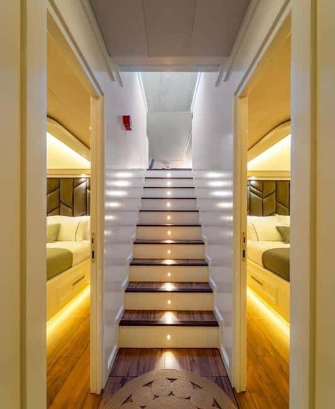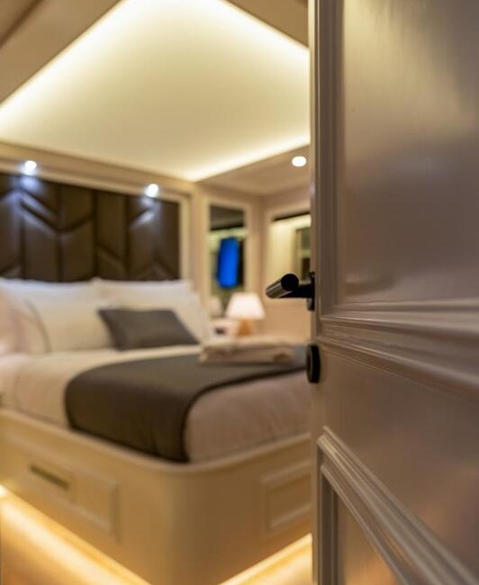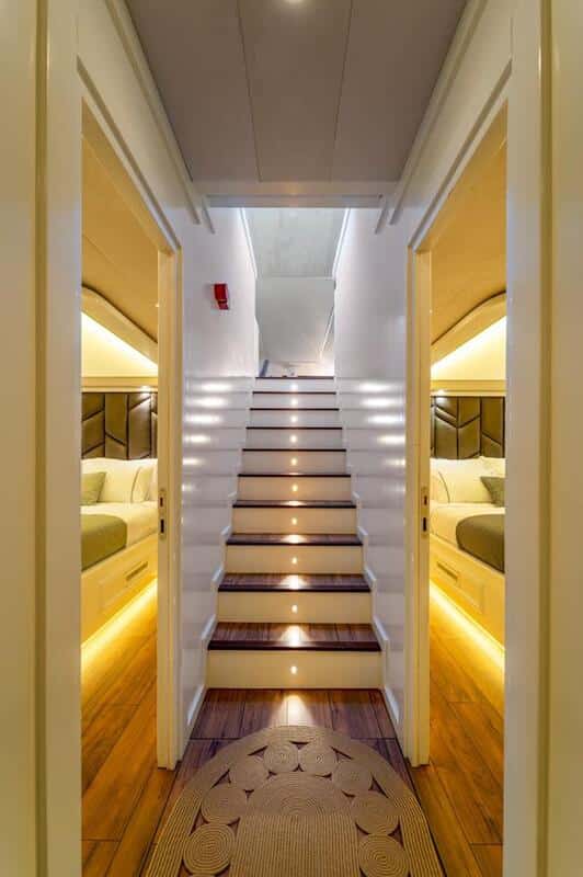 40 metre uzunluğunda, 8.30 metre genişliğindeki süper lüks yat, 2 Master, 3 Double, 1 Twin kabinde toplam 12 misafir ağırlayabilmektedir.