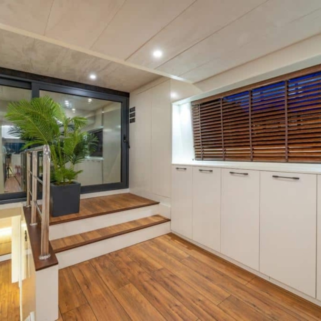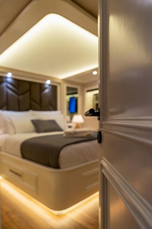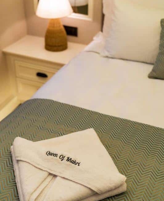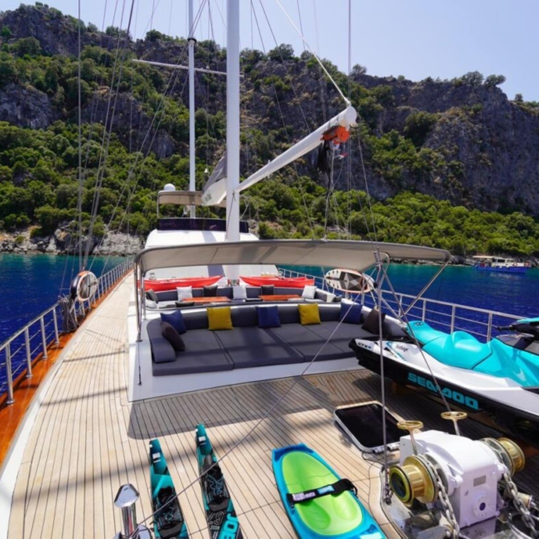 Queen Of Makri konforlu ve şık salonu, çok çeşitli su oyuncakları, jakuzisi ve jet skisiyle sizi muhteşem bir tatil imkanı sağlamaktadır.