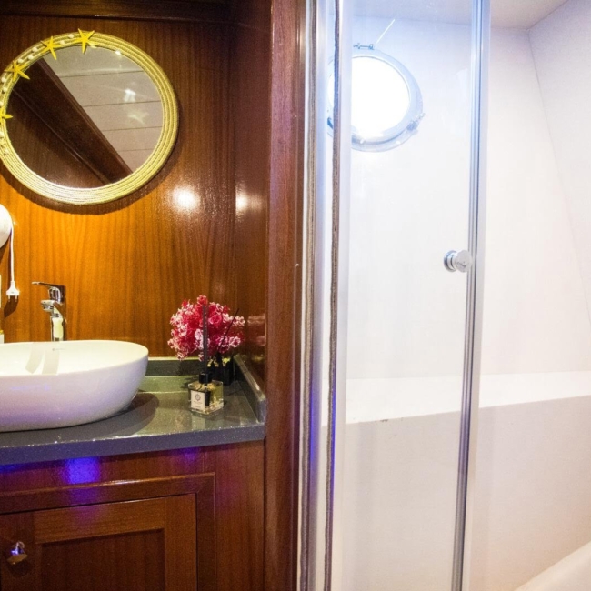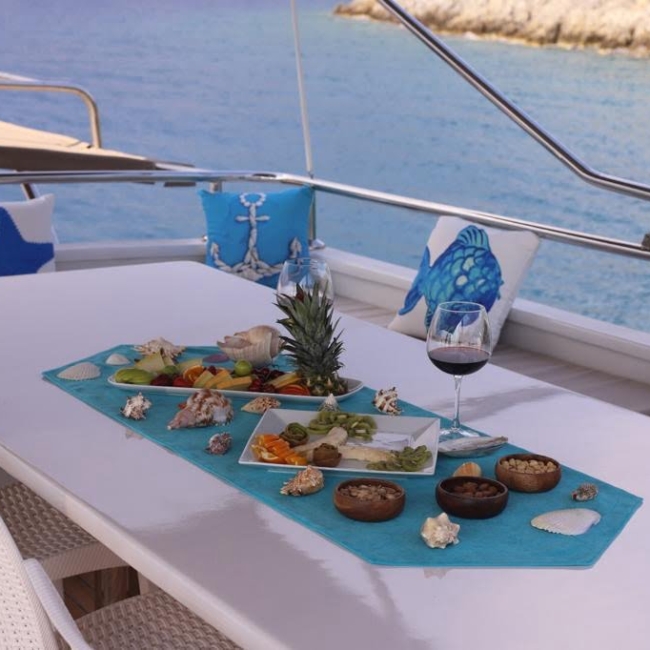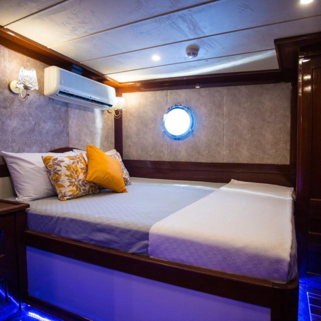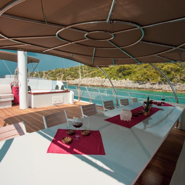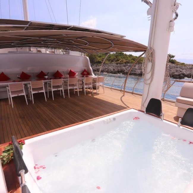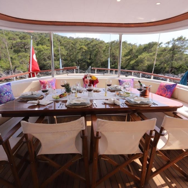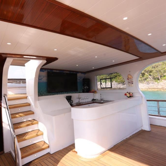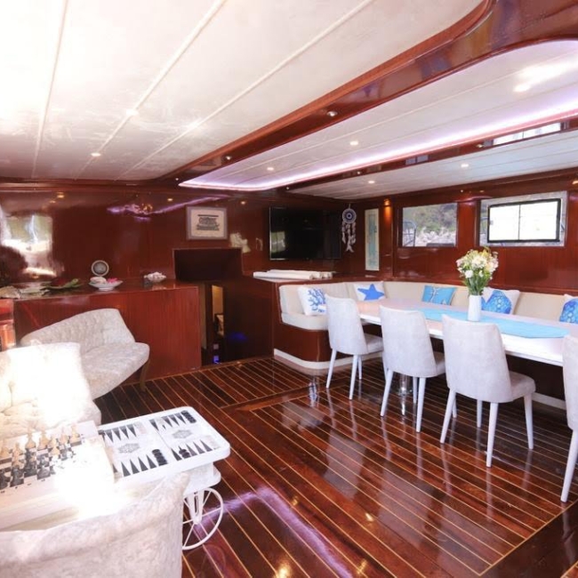 31 metre uzunluğunda genişlik ise 7 metre olan guletimiz mavi yolculuk için misafirlerini beklemektedir.
