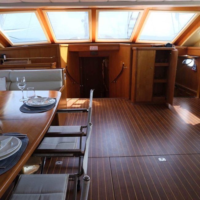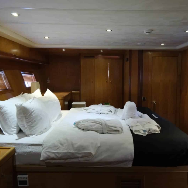 2 master, 2 double ve 1 twin kabin olmak üzere toplamda 5 kabin olarak maksimum 10 kişiye kadar misafir ağırlanabilmektedir.