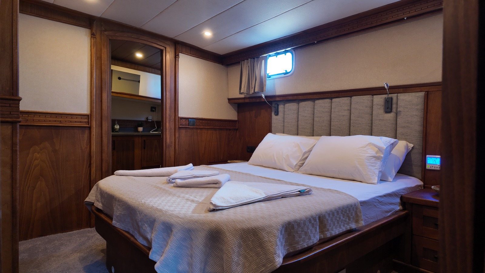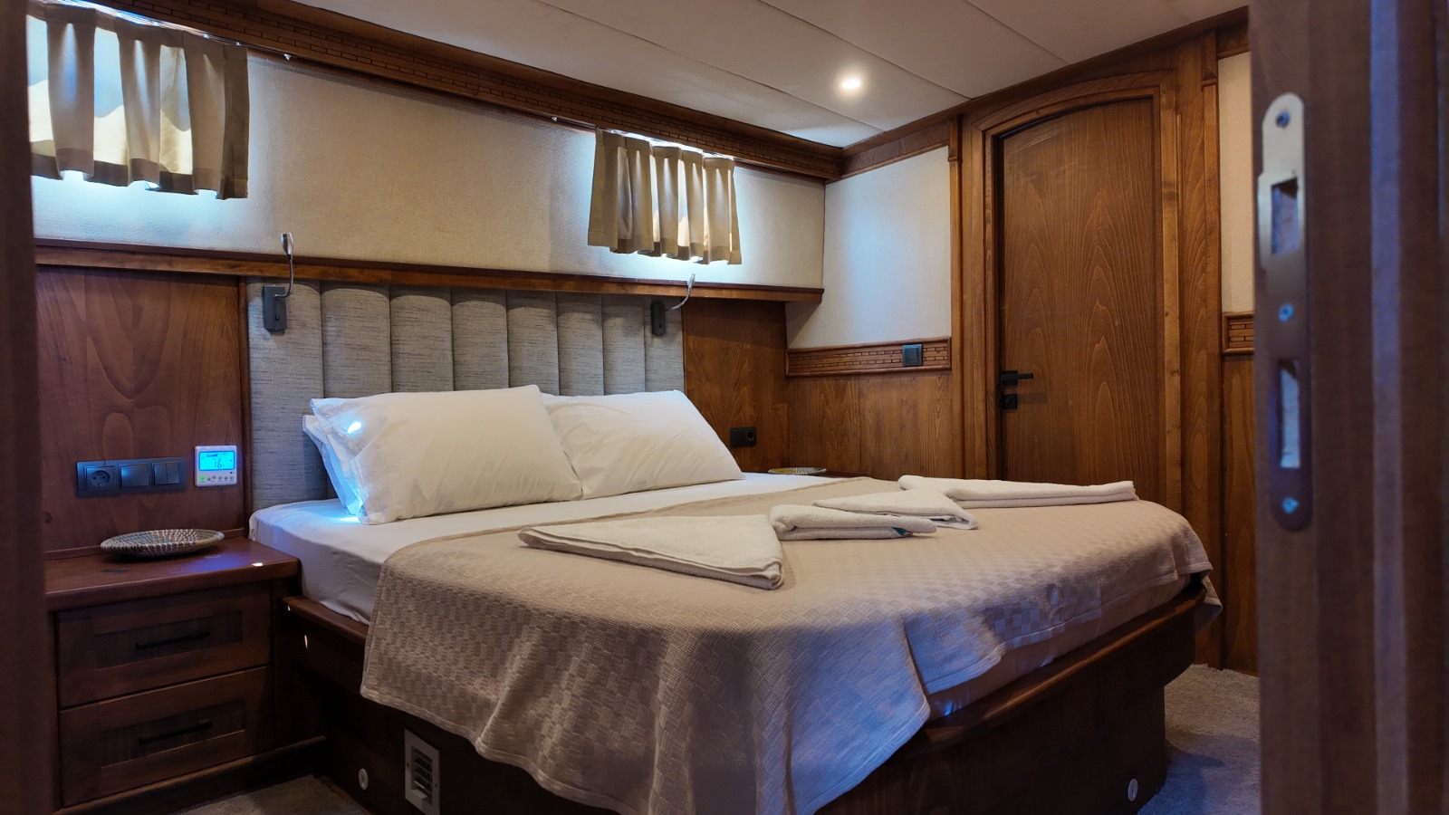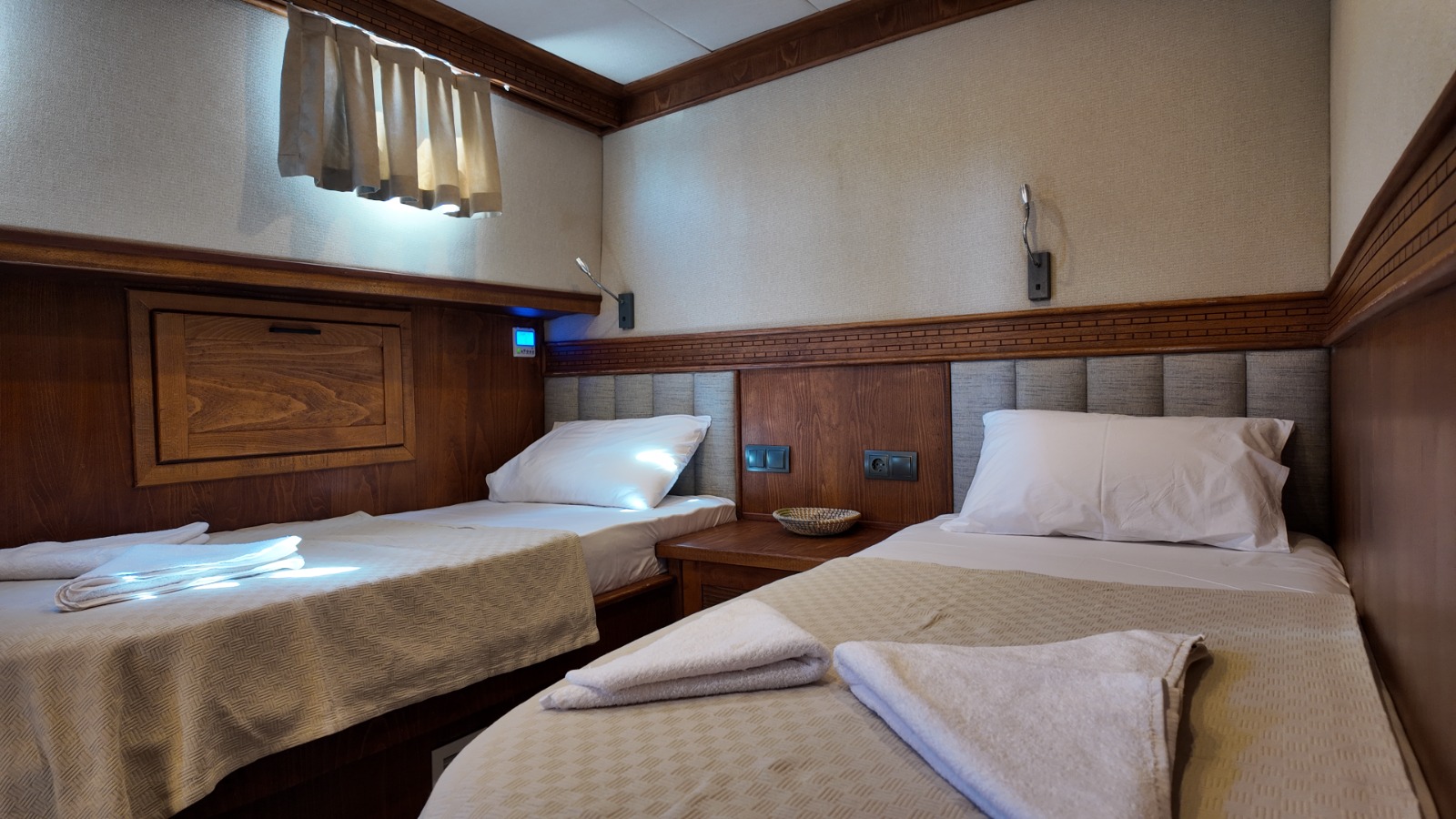 2 double,2 twin ve 1 master kabini bulunmaktadır. 27 metre uzunluğunda 7.5 metre genişliğindedir. Güvertenin kıç bölümünde projeksiyon aleti bulunmaktadır.