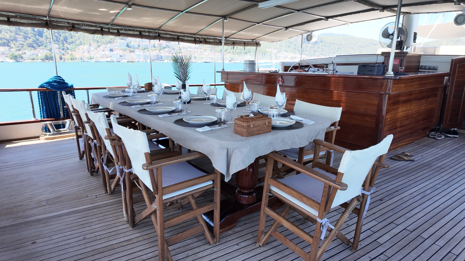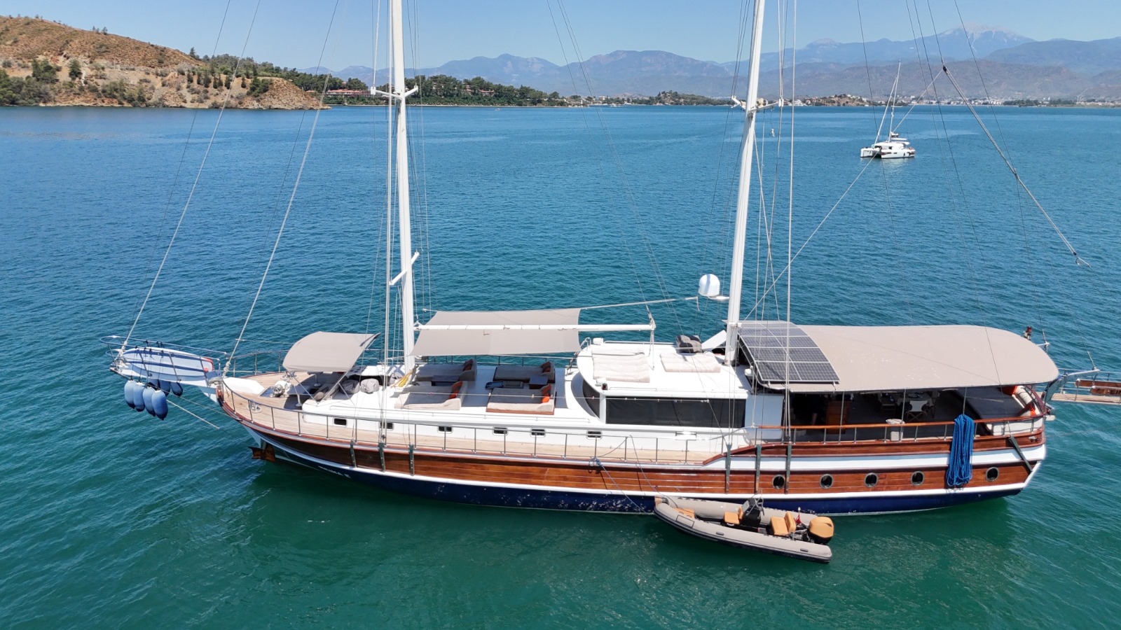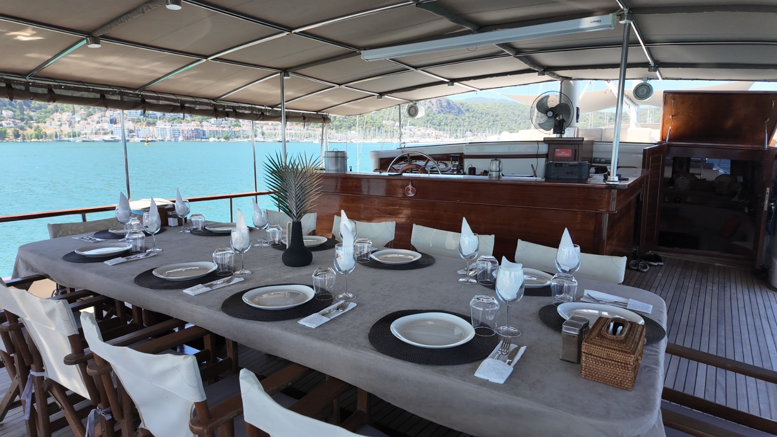 Ön güvertede geniş güneşlenme alanları, 2 adet salıncak ve oturma alanları ile misafirlerimize konforlu dinlenme alanları sunmaktadır.