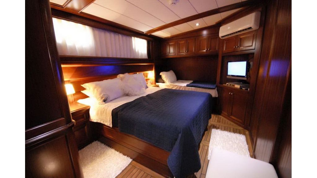 Gulet Sannika, 25 metre uzunlukta, 6.75 metre genişlikte ve 3.20 metre derinlikte 2009 yılında inşa edilmiştir. Her yıl bakımları yapılan teknemizde 1 Master Kabin, 2 Double Kabin ve 1 Triple Kabinde toplam 10 misafiri ağırlayabilmektedir. Kabinler geniş, ferah ve modern şekilde zevkle dizayn edilmiş olup Televizyon, Saç Kurutma Makinesi, Klima, Duş ve Wc mevcuttur. Tam donanımlı mutfağımızda özenle hazırlanan yemeklerimizi kıç güvertede veya salonda bulunan şık sofralarımızda tadabilirsiniz. Güvertede geniş minderli oturma alanı, güneşlenme alanı ve güneşlenme minderleri yeterli miktarda mevcuttur. Misafirlerin daha iyi zamanlar geçirebilmesi için müzik sistemi, TV ve uydu salonda yer alırken klimada her daim kullanımlarına açıktır. Eğer denizin mavi sularını en iyi şekilde değerlendirmek isterseniz bunun içinde teknenin pek çok avantajı bünyesinde bulundurduğunu belirtmek gerekir. İletişim ve güvenlik açısından beklentilerinizi tam olarak karşılayacak bir yapıya sahiptir. İletişim cihazları, pusula, GPS, seyir cihazları, derinlik ölçer, elektronik harita gibi seçeneklerde teknede bulunanlar arasında yer alır. Ege ve Akdeniz’in eşsiz güzellikteki koylarında sizleri ağırlamaktan memnuniyet duyarız.