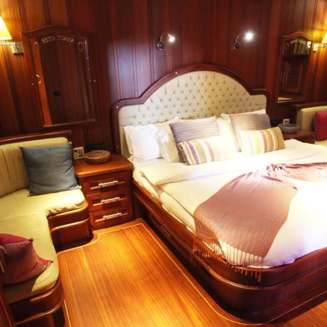 2008 Yılında 32 metre uzunluğunda ve 7.40 metre genişliğinde inşa edilen Sema Tuana Guleti 2017 yılında baştan sona modern şekilde renovasyona uğrayıp günümüzdeki halini almıştır. 2 Master Kabin, 2 Double Kabin ve 2 Twin Kabin olmak üzere toplam 6 Kabinde 12 misafir ağırlayabilmekteyiz. Kabinlerimiz geniş, ferah ve modern bir yapıda olup Tv, Klima, Duş ve Wc mevcuttur. Tam donanımlı mutfağımızda özenle hazırlanan yemeklerimizi kıç güvertede veya salonda bulunan şık sofralarımızda tadabilirsiniz. Güvertede geniş minderli oturma alanı, güneşlenme alanı ve güneşlenme minderleri yeterli miktarda mevcuttur. Konforlu içeriğiyle birlikte kendinizi adeta evinizde hissedeceğiniz teknede su sporlarının en iyilerini de yapmaya başlayabilirsiniz. Bunun için özel olarak hazırlanmış ekipmanları teknede rahatlıkla bulabilirsiniz. Balık tutma ekipmanları, şnorkel ekipmanları gibi içerikler burada denizin keyfini en iyi şekilde çıkartmanızı sağlayacaktır. İletişim ve güvenlik açısından da beklentilerinizi tam olarak karşılayacak bir yapıya sahiptir. İletişim cihazları, pusula, GPS, seyir cihazları, derinlik ölçer, elektronik harita gibi seçeneklerde teknede bulunanlar arasında yer alır.