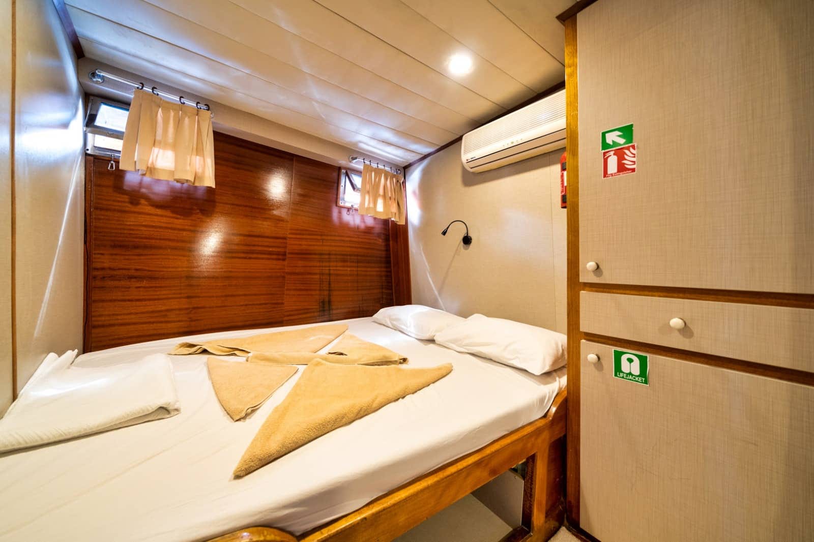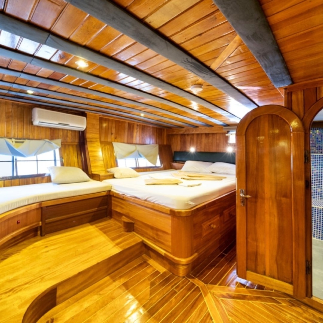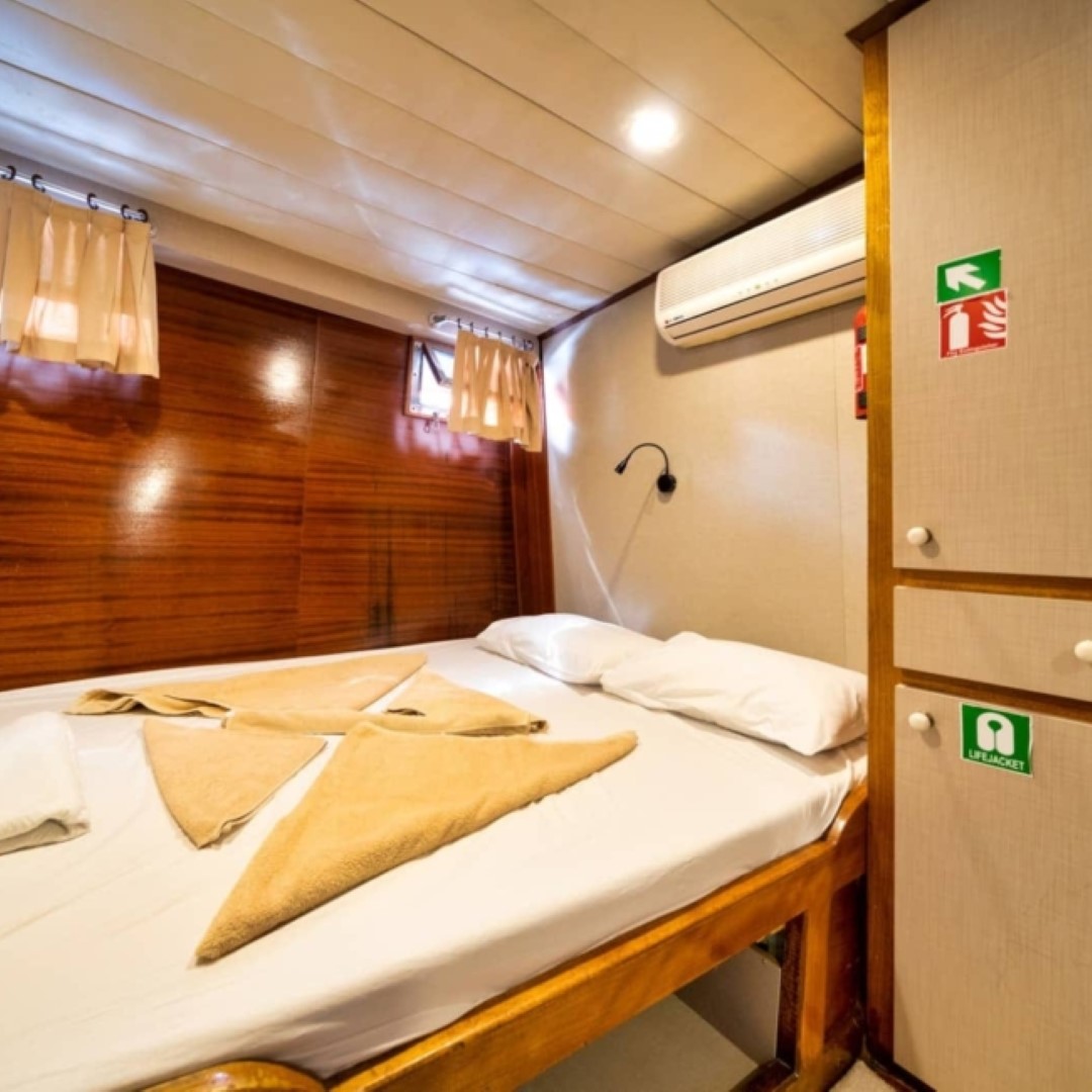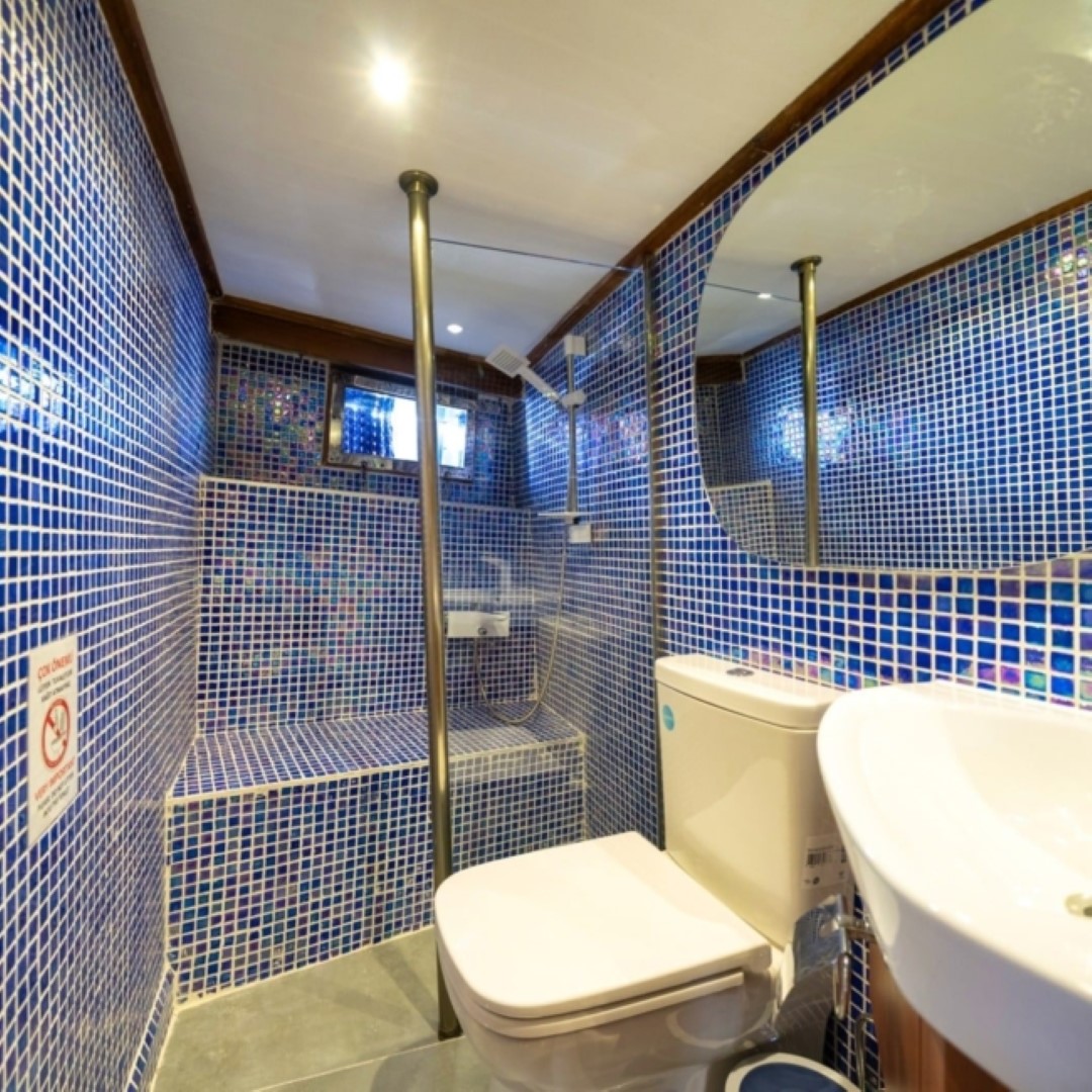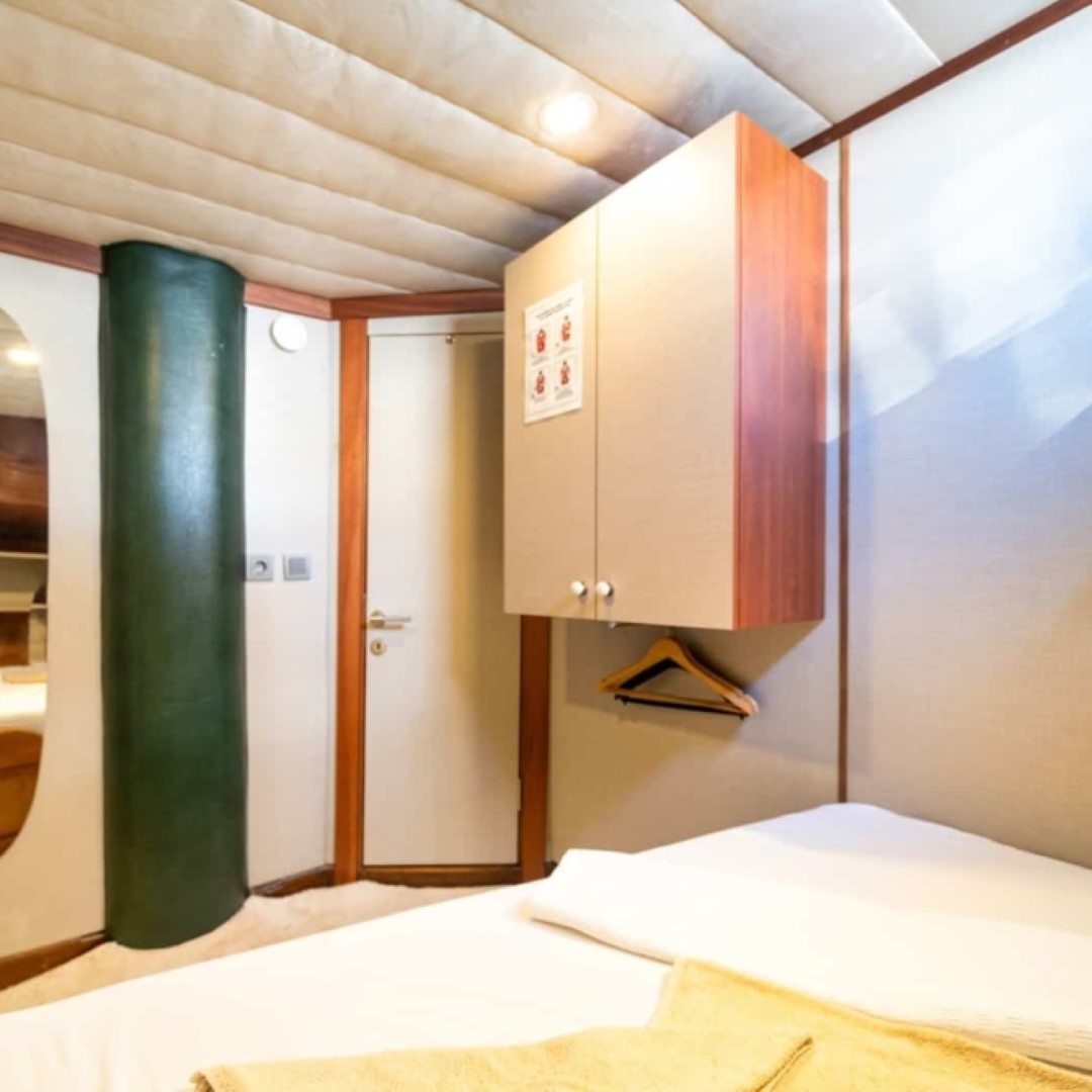 Gulet Serenidad; 1 Master Kabin, 5 Double Kabin olmak üzere toplam 6 kabini mevcuttur. Kabinlerin her birinde kendine ait duş, WC ve