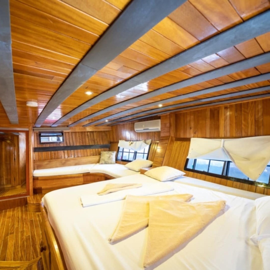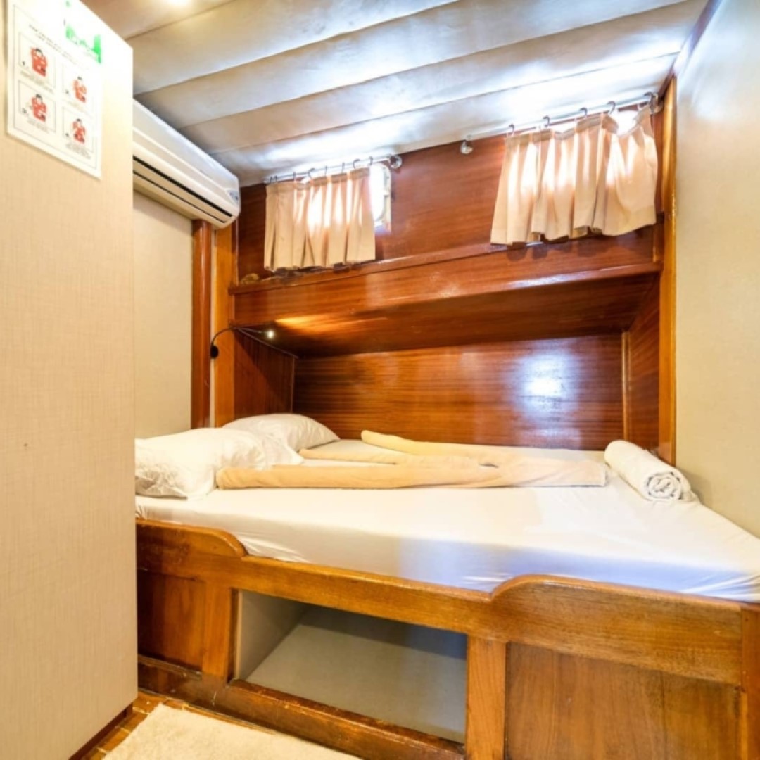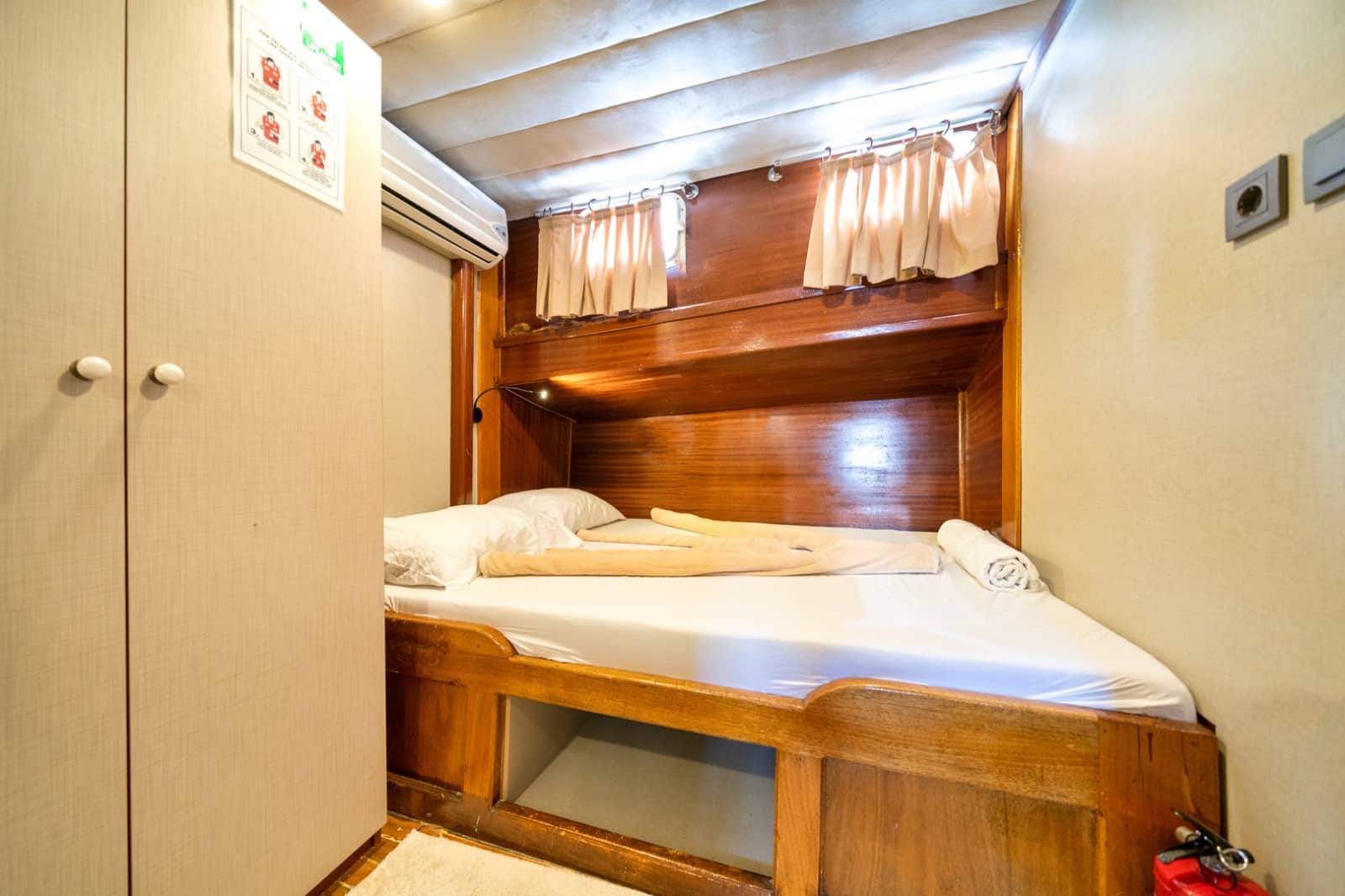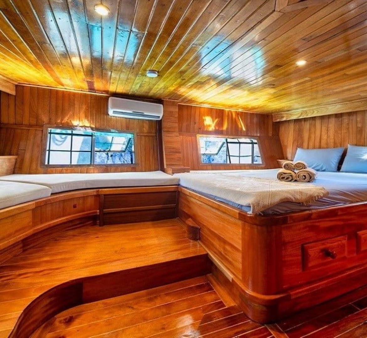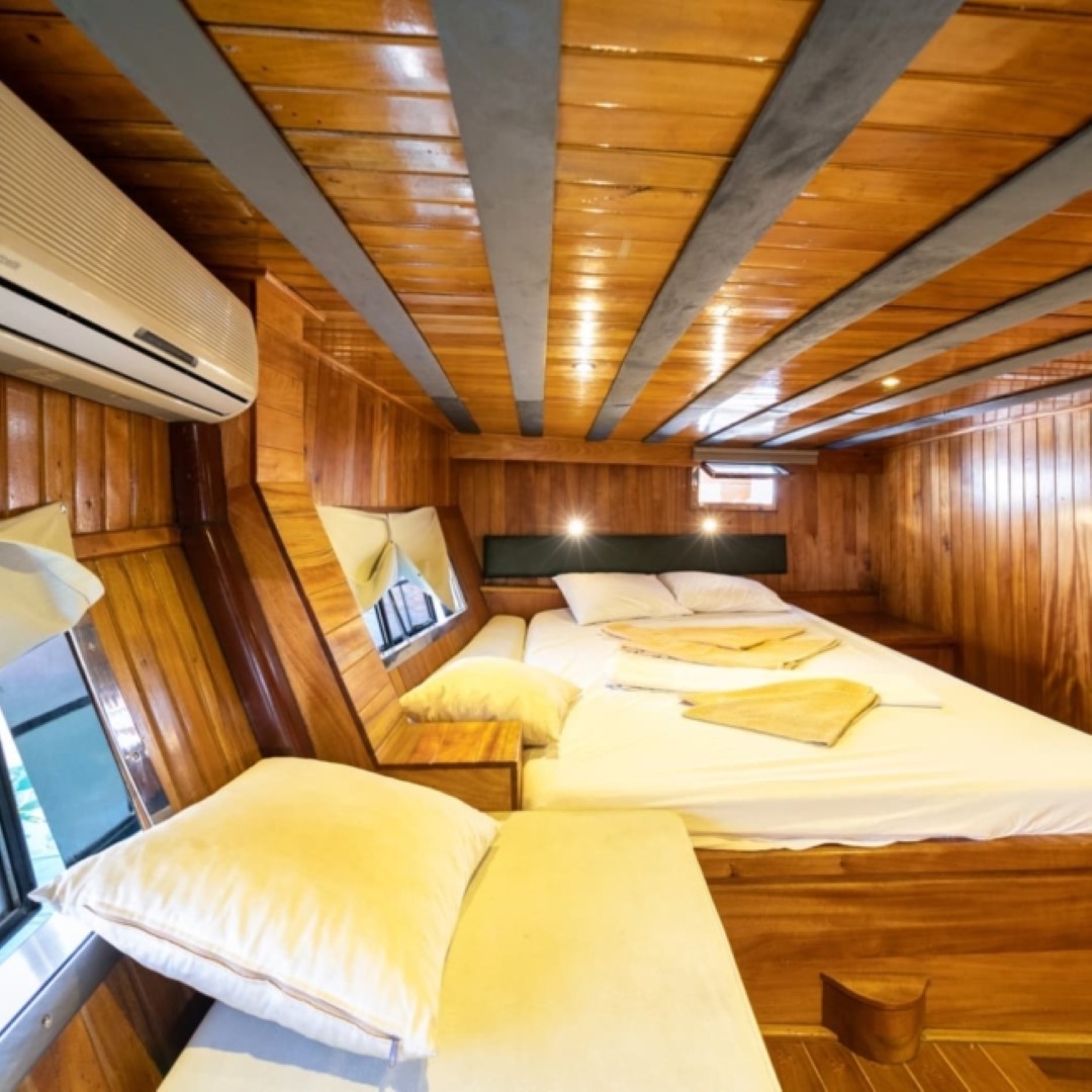 Gulet Serenidad; 1 Master Kabin, 5 Double Kabin olmak üzere toplam 6 kabini mevcuttur. Kabinlerin her birinde kendine ait duş, WC ve