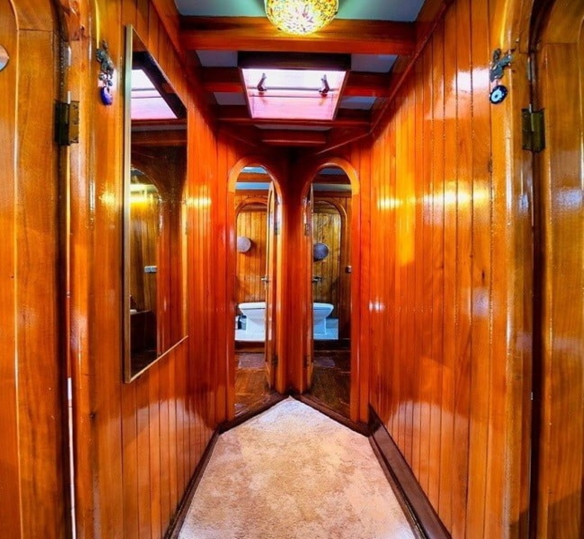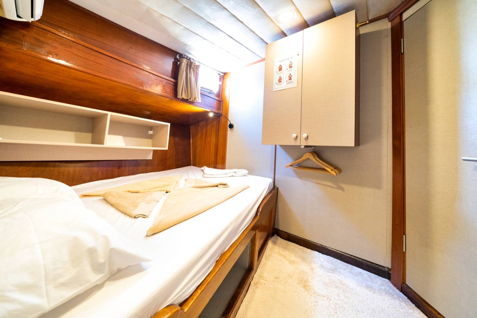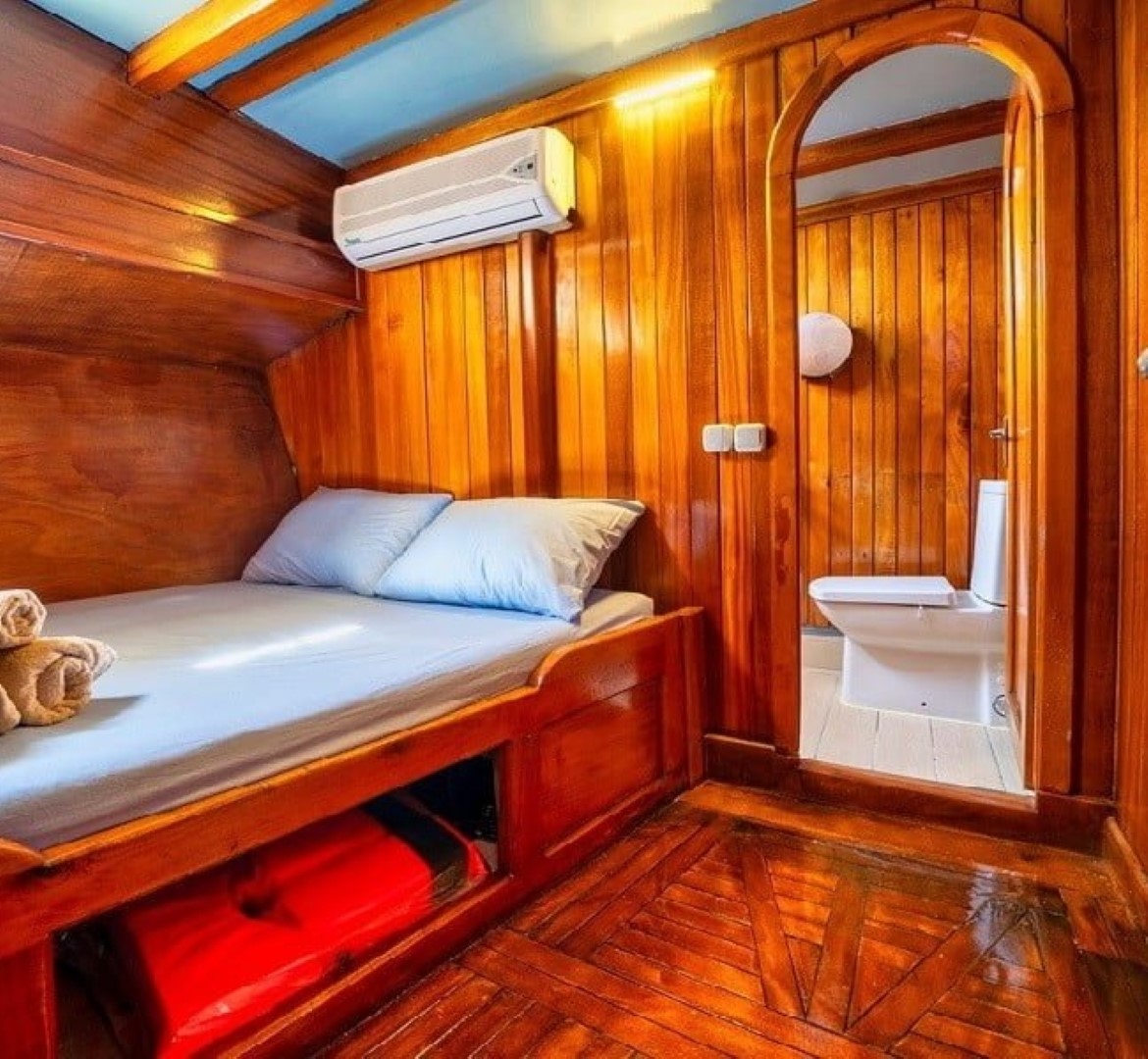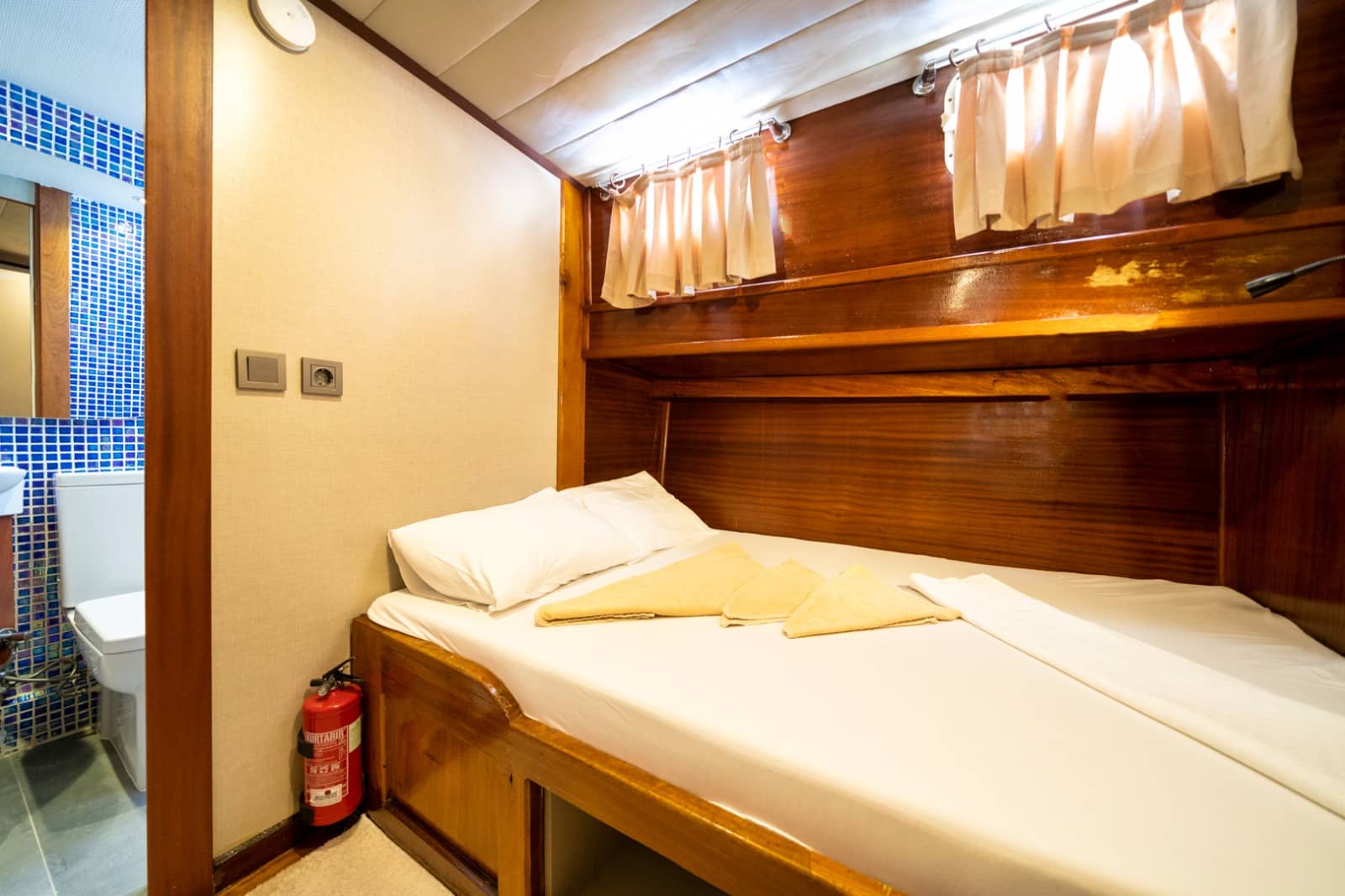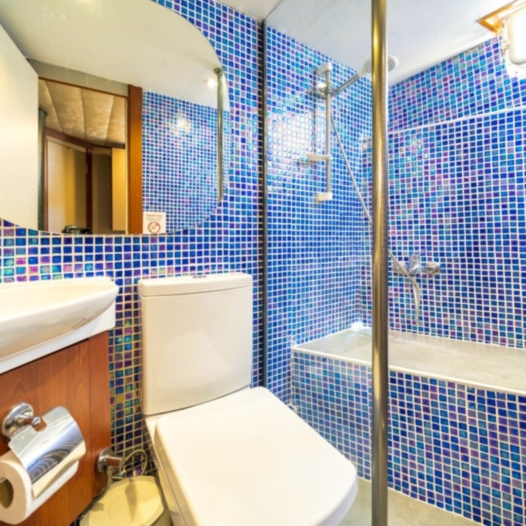 Gulet Serenidad; 1 Master Kabin, 5 Double Kabin olmak üzere toplam 6 kabini mevcuttur. Kabinlerin her birinde kendine ait duş, WC ve