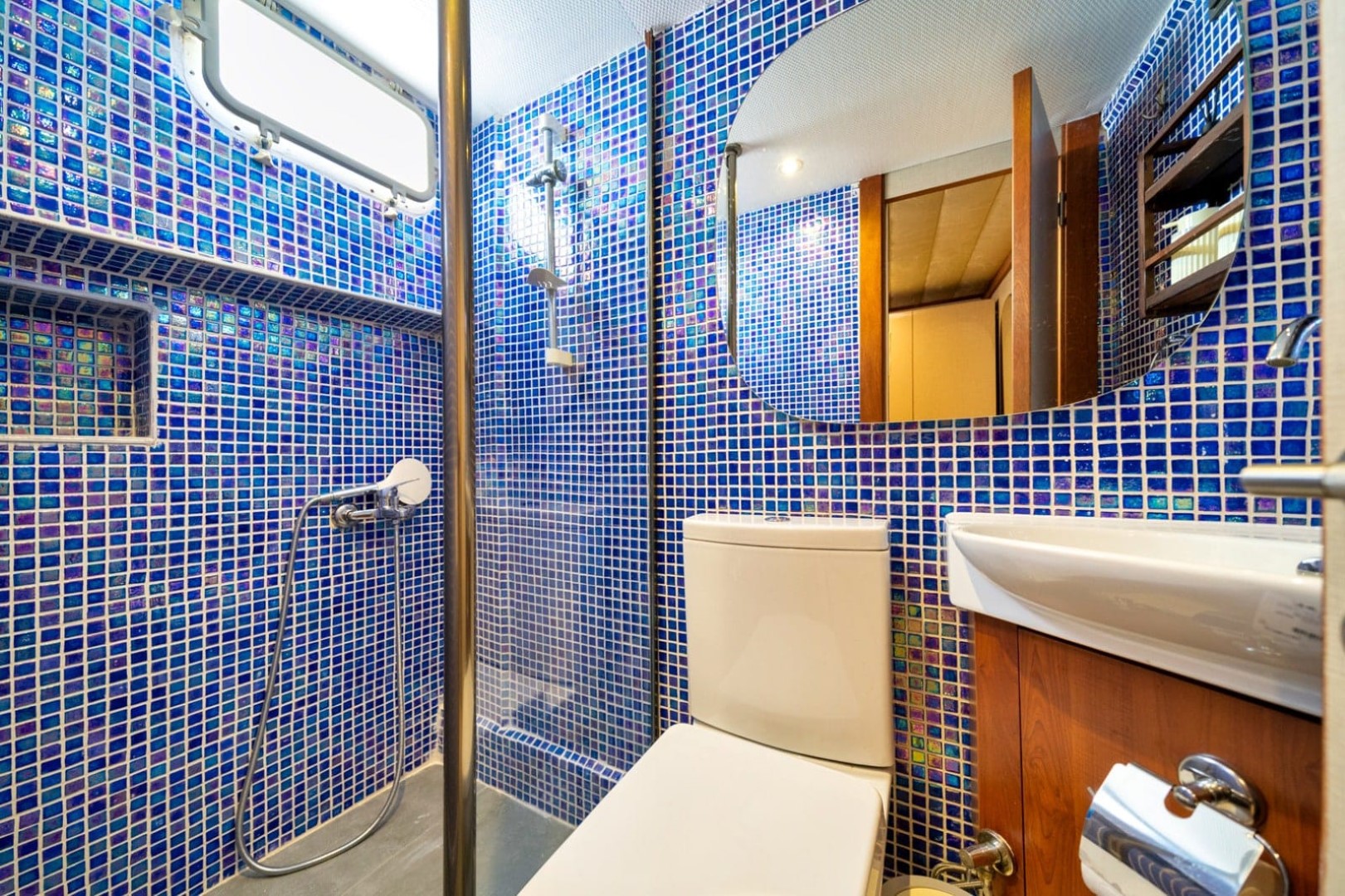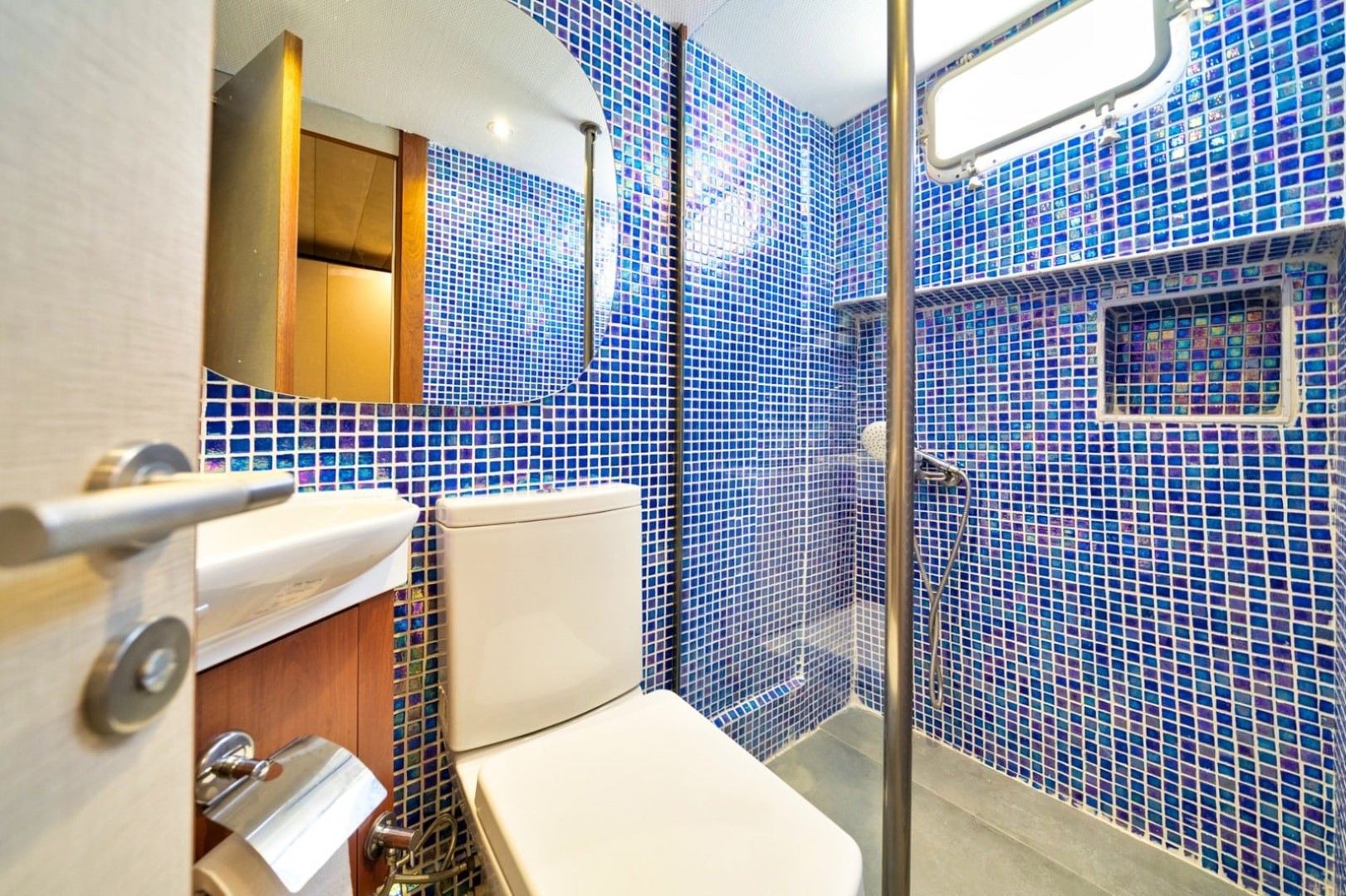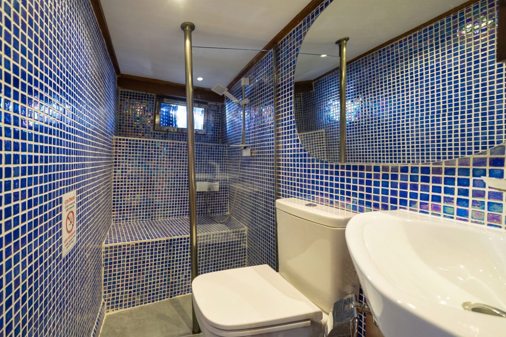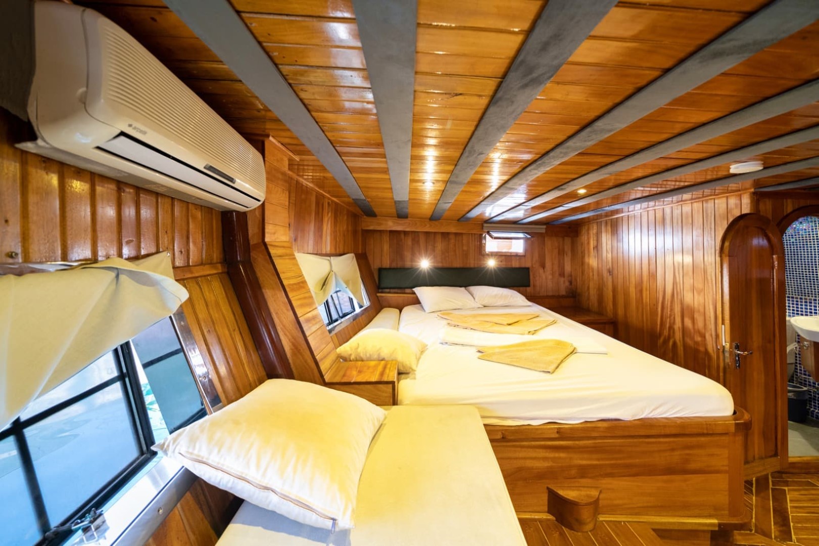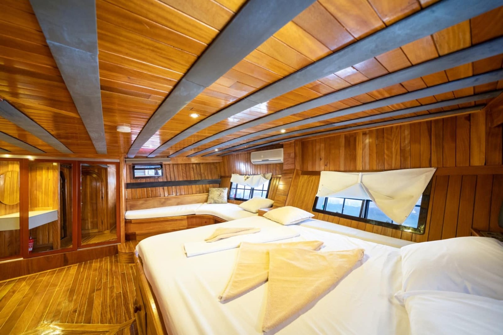 Gulet Serenidad; 1 Master Kabin, 5 Double Kabin olmak üzere toplam 6 kabini mevcuttur. Kabinlerin her birinde kendine ait duş, WC ve
