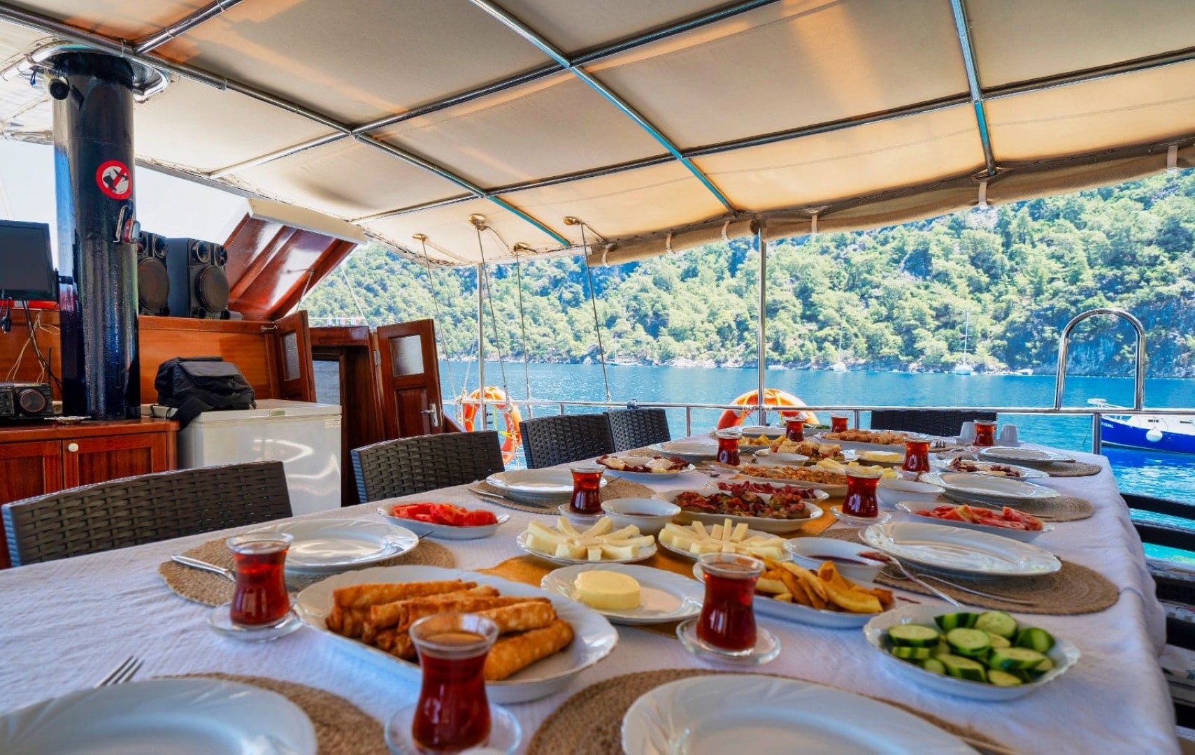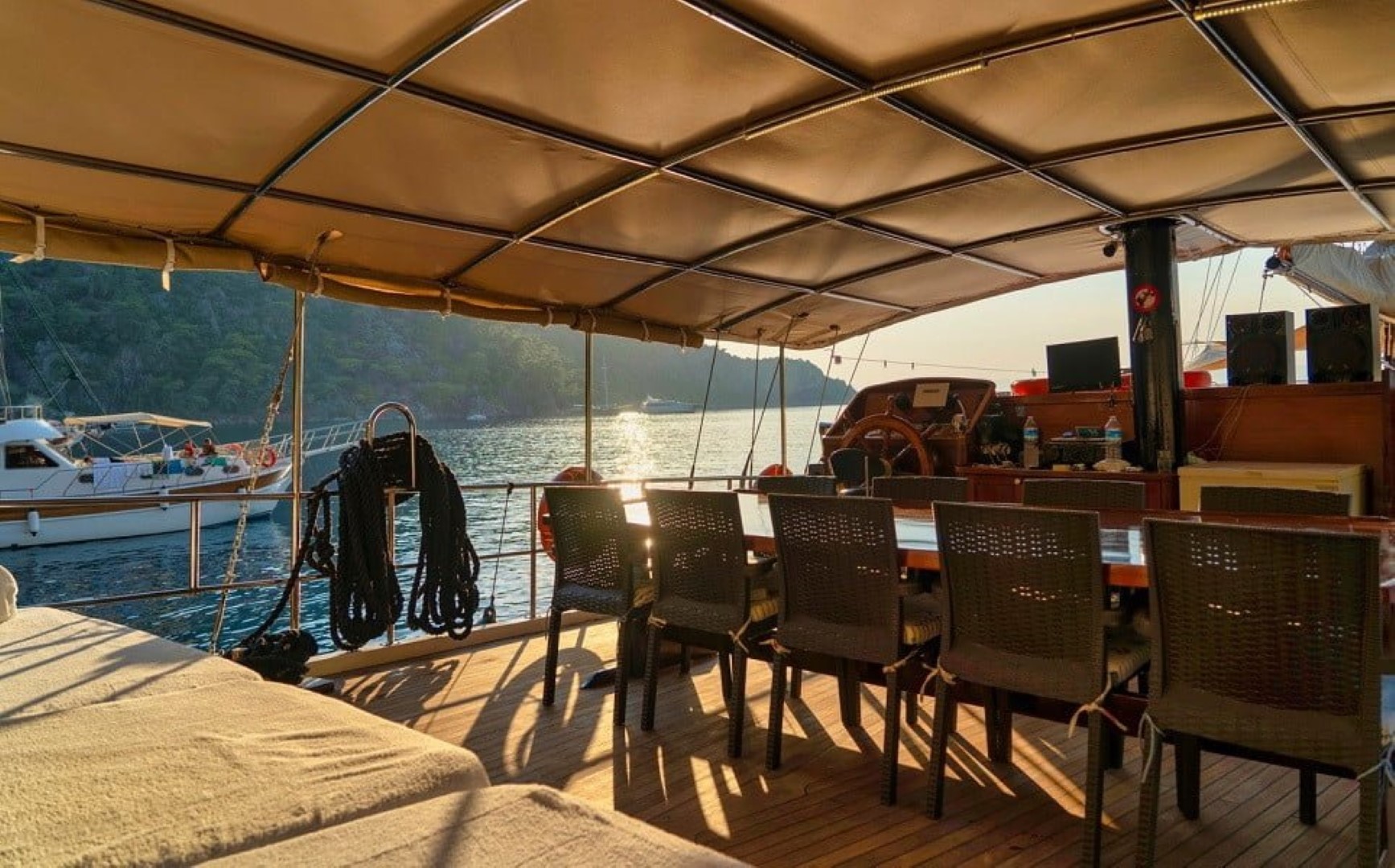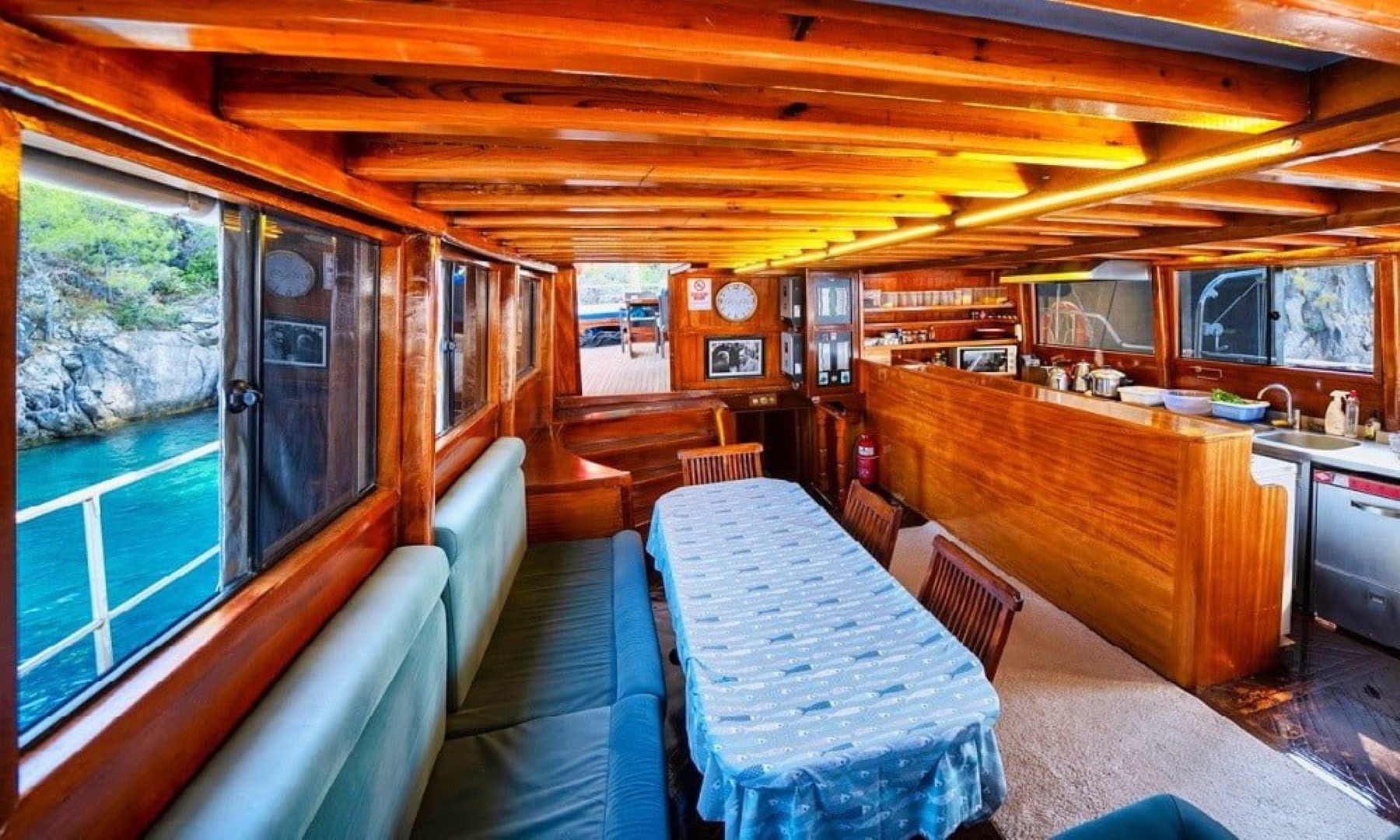 Salonda LCD TV, DVD oynatıcı, müzik seti siz değerli mavi yolculuk konuklarımızın hizmetindedir.