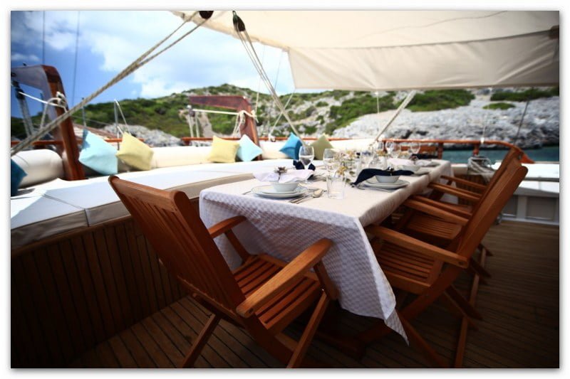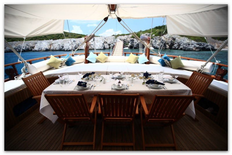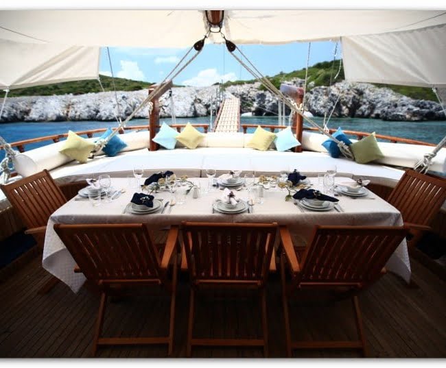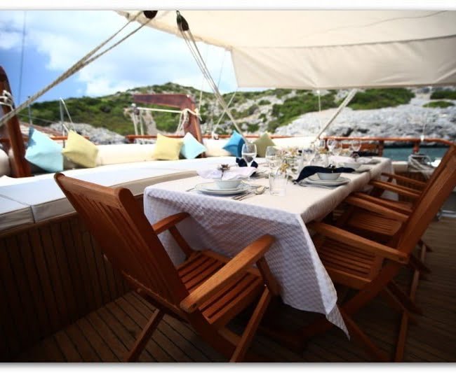 Gulet Sergül Sultan, kıç güvertede geniş minderli bir oturma alanı, yemek masası ve yemek alanı bulunmaktadır. Salonda ise ayrı bir yemek masası olup yemekleriniz tam donanımlı ayrı bir mutfakta hazırlanmaktadır. Gulet Sergül Sultan tüm misafirleri için yeterli güneşlenme minderlerine ve alana sahip olarak düzenlenmiştir. Salonda TV,DVD, müzik sistemi bulunmaktadır.Gulet SergüL Sultan en güzel koylarda mavinin tadını çıkartmanızı sağlar.