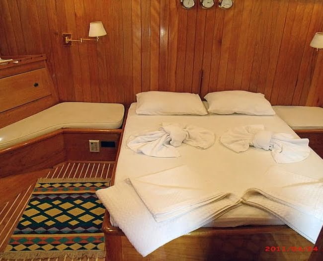 Gulet tipindeki yatımızın tüm gövdesi ahşapla kaplanmıştır. 2004 yılında yapımı tamamlanan ve denizlere bırakılan tekne 2010 yılında yenilendikten sonra aralıksız hizmetlerini devam ettirmektedir. 25,50 metre uzunluktaki teknenin genişliği 6,50 metre olduğu için geniş alanında rahat edeceksiniz. 10 Knots’a kadar sürat toplayabilen teknemiz Türk bayrağıyla mavi turlara çıkmaktadır. 1 master, 2 double ve 2 triple kabini olan teknemiz 10 yolcu taşıyabildiği için geniş ailelere harika bir fırsat olarak sunulmaktadır. Tüm kabinlerinde ev tipi tuvalet ve duşakabinin olması sayesinde hiçbir zorluk çekmeden kişisel ihtiyaçlarınızı görebileceksiniz.