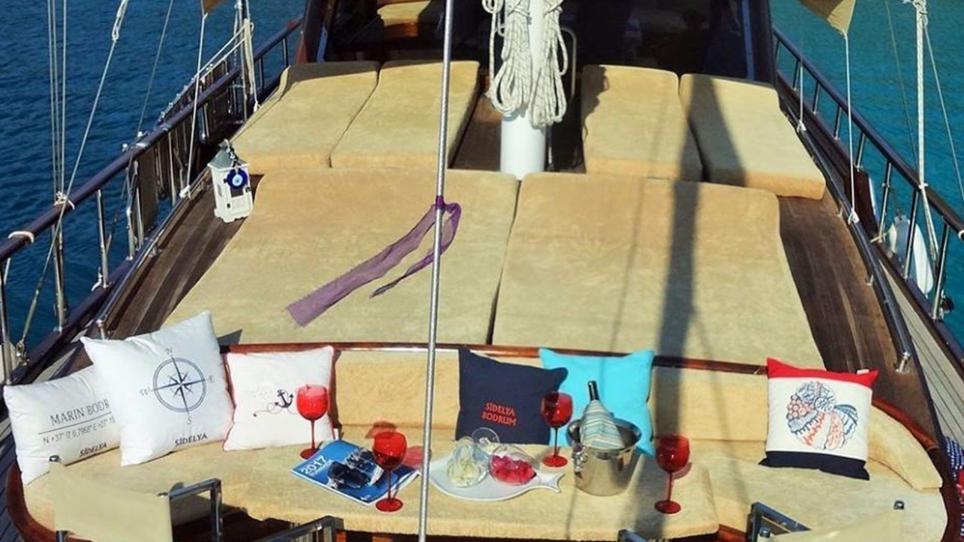 Sidelya guleti 16 metre uzunluğunda 4 kişilik misafir grupları için ideal olan bir teknedir. Özellikle küçük aileler veya balayı çiftleri için son derece doğru bir tercih halinde bulunur. 2 kabini bulunan teknede eşsiz güzellikte bulunan koyların keyfini her açıdan daha iyi bir şekilde çıkarabilirsiniz. Teknenin içeriği iyi bir tatili geçirmek açısından her türlü özelliğe sahiptir. Tüm kabinlerde banyo ve klima, şnorkel, olta takımı ile misafirlerin yararlanabileceği özel bir yapıya sahiptir. Teknede yer alan ekipmanların aracılığıyla su sporlarının en çok sevilen türlerini yapmaya başlayabilir ve mavi yolculuğu en iyi hale getirmek için harekete geçebilirsiniz. Aynı zamanda teknenin ön güverteside güneşlenmek için oldukça iyi bir şekilde düzenlenmiştir. Burada aileniz veya arkadaşlarınızla birlikte iyi zamanlar geçirebilir ve teknede sunulmuş olan her türlü eğlenceli detaya buradan ulaşabilirsiniz. Ekonomik tatil sınıfında bulunan bu tekne tatilde unutulmaz anların yaşanmasına aracılık edecek bir yapıya sahiptir. Bu şekilde unutamayacağınız anlara ilk adımınızı atmak için harekete geçebilirsiniz.