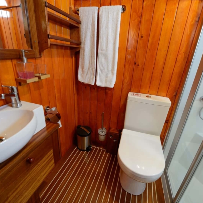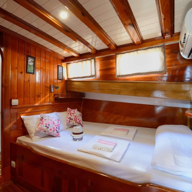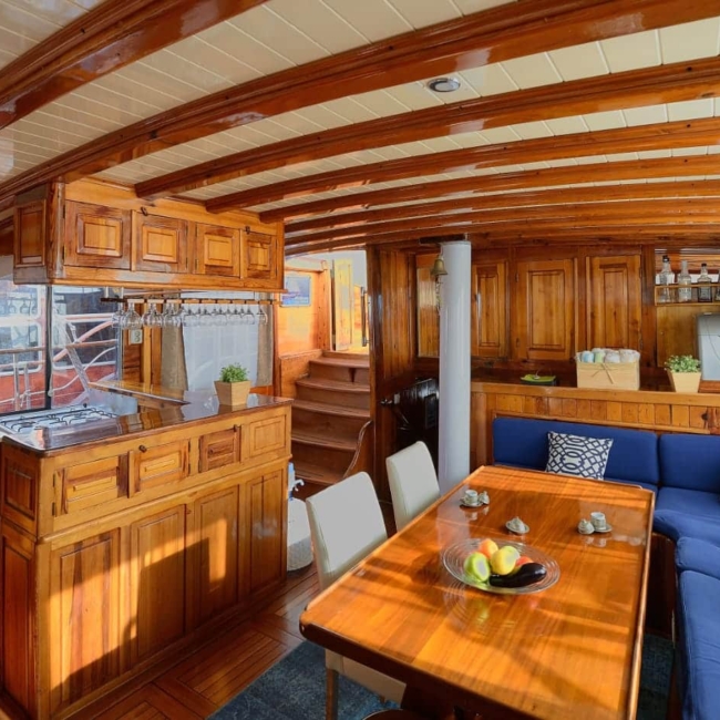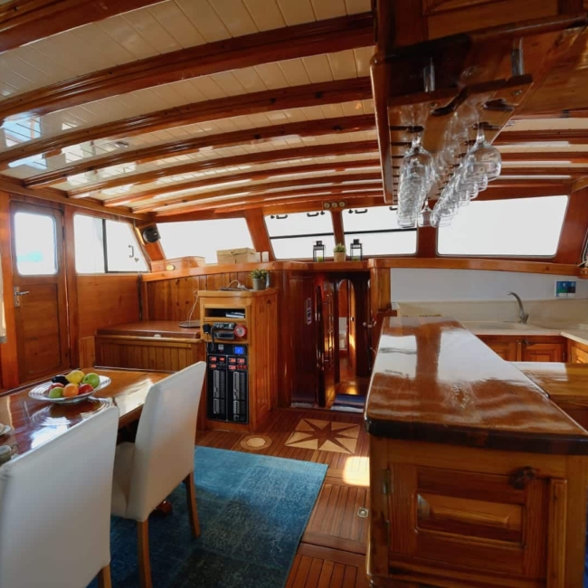 Maksimum konaklama kapasitesi 12 kişidir. Uzunluğu 23 metre genişliği ise 6 metredir.