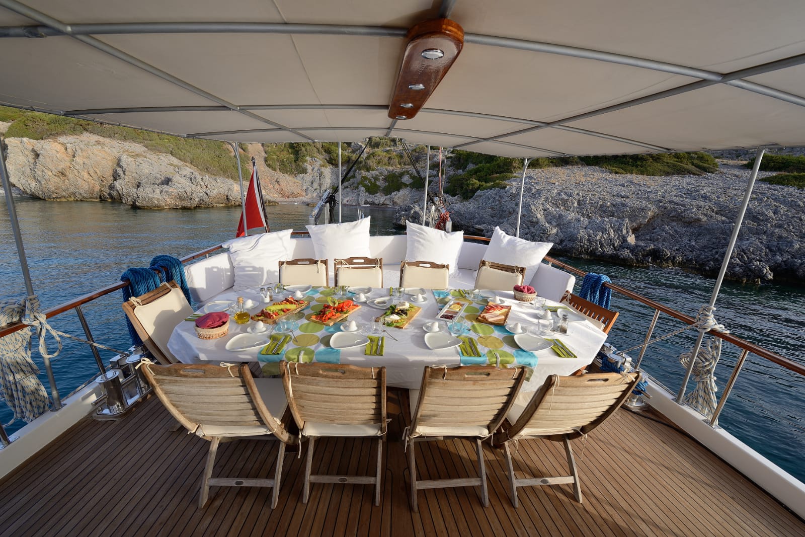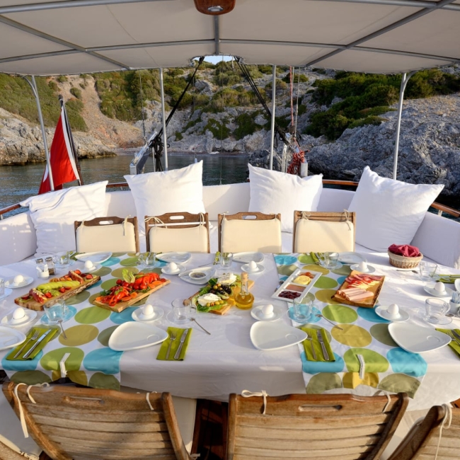 Türk bayrağıyla mavi tur hizmeti veren teknemizde 4 mürettebat bulunmaktadır.