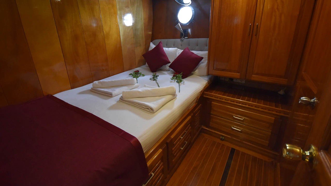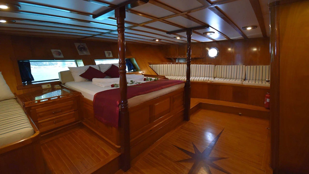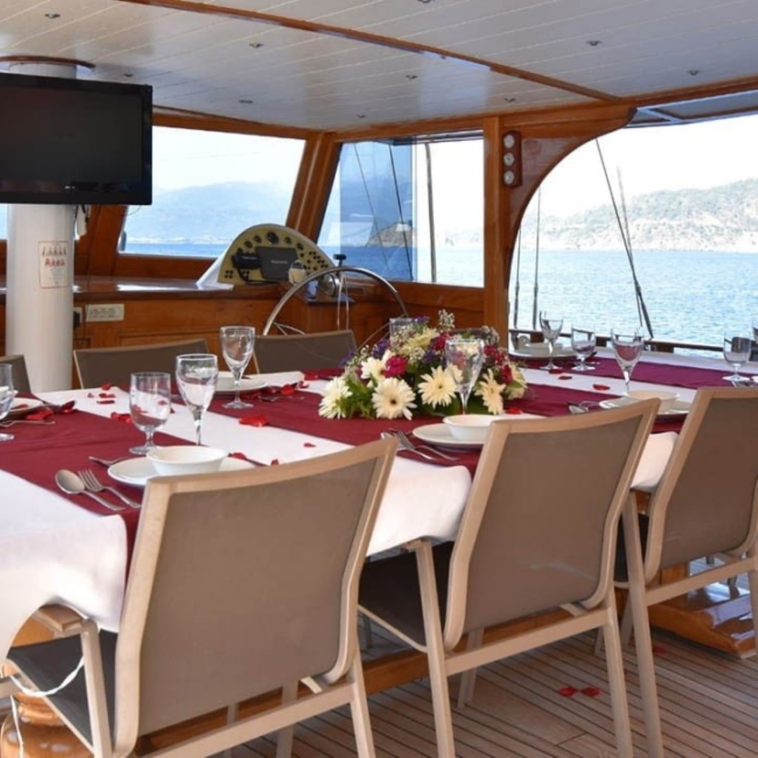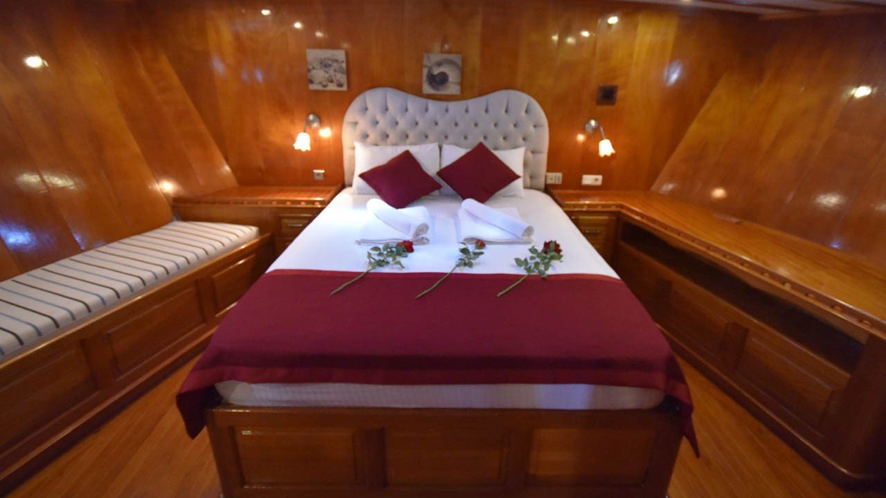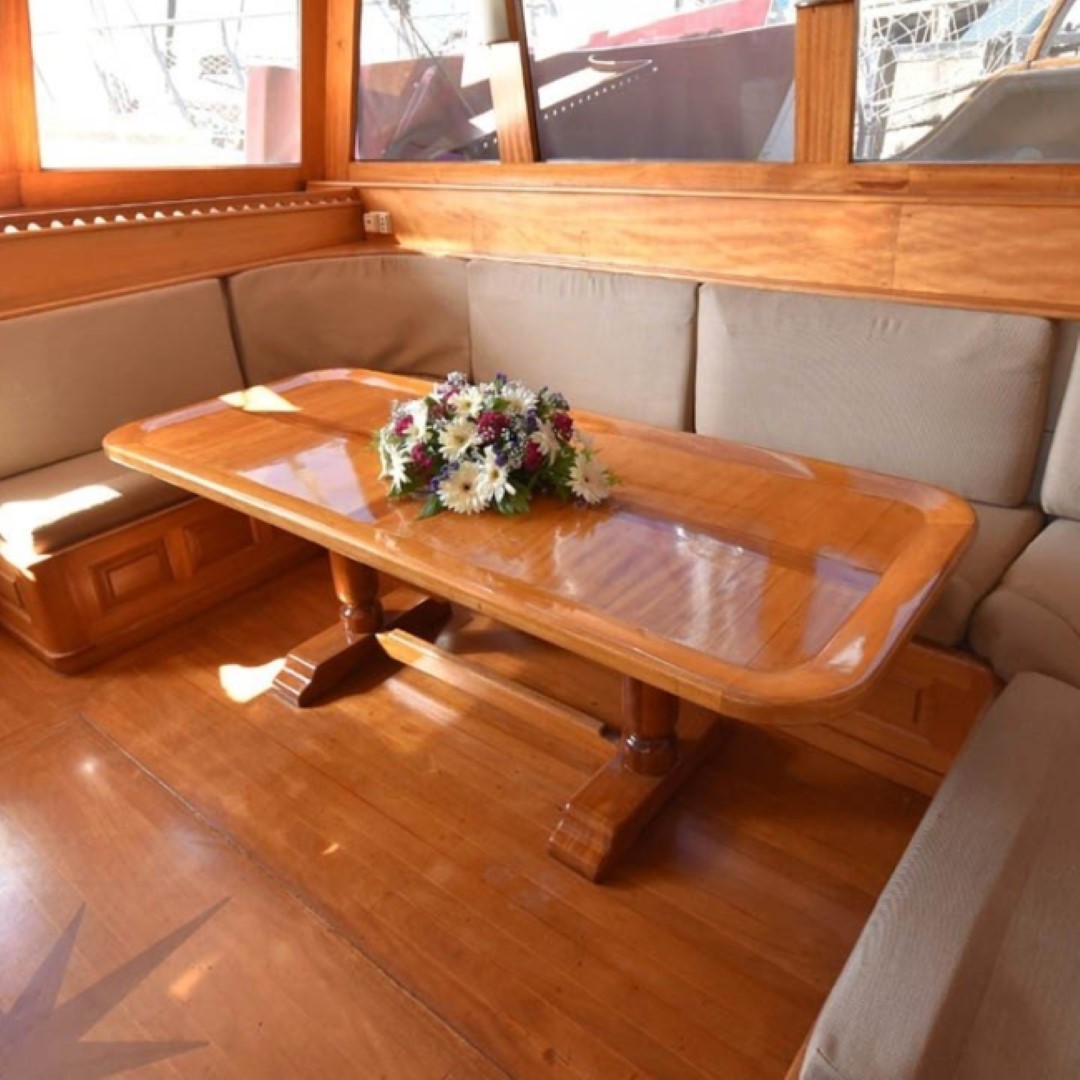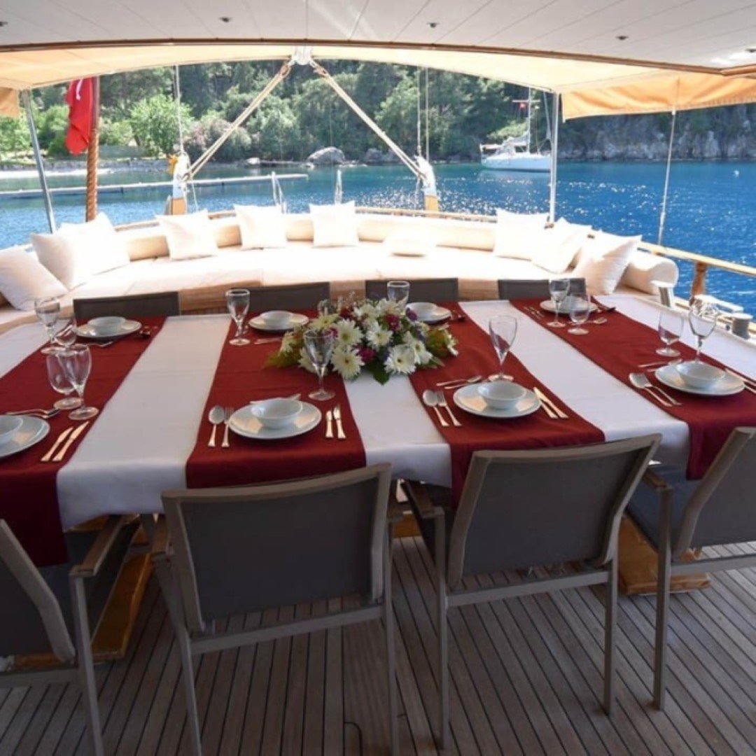 Gulet Su Sesi teknemiz 2009 yılında inşa edilmiş olup, 2019 yılında baştan sona renovasyona uğramıştır. 2 Master Kabin ve 4 Double Kabin ile 12 misafir ağırlayabilmekteyiz. Tüm kabinlerde Klima, Ev Tipi Tuvalet ve Duş bulunan teknemizde Klima kullanımımız maksimum 4-6 saattir. Salonda LCD TV ve Müzik sistemi bulunan teknemiz, tam donanımlı bir mutfağa sahiptir. Geniş güneşlenme alanı ve oturma alanlarıyla kulanım açısından son derece konforlu olan teknemizde sizleri ağırlamaktan memnuniyet duyarız.