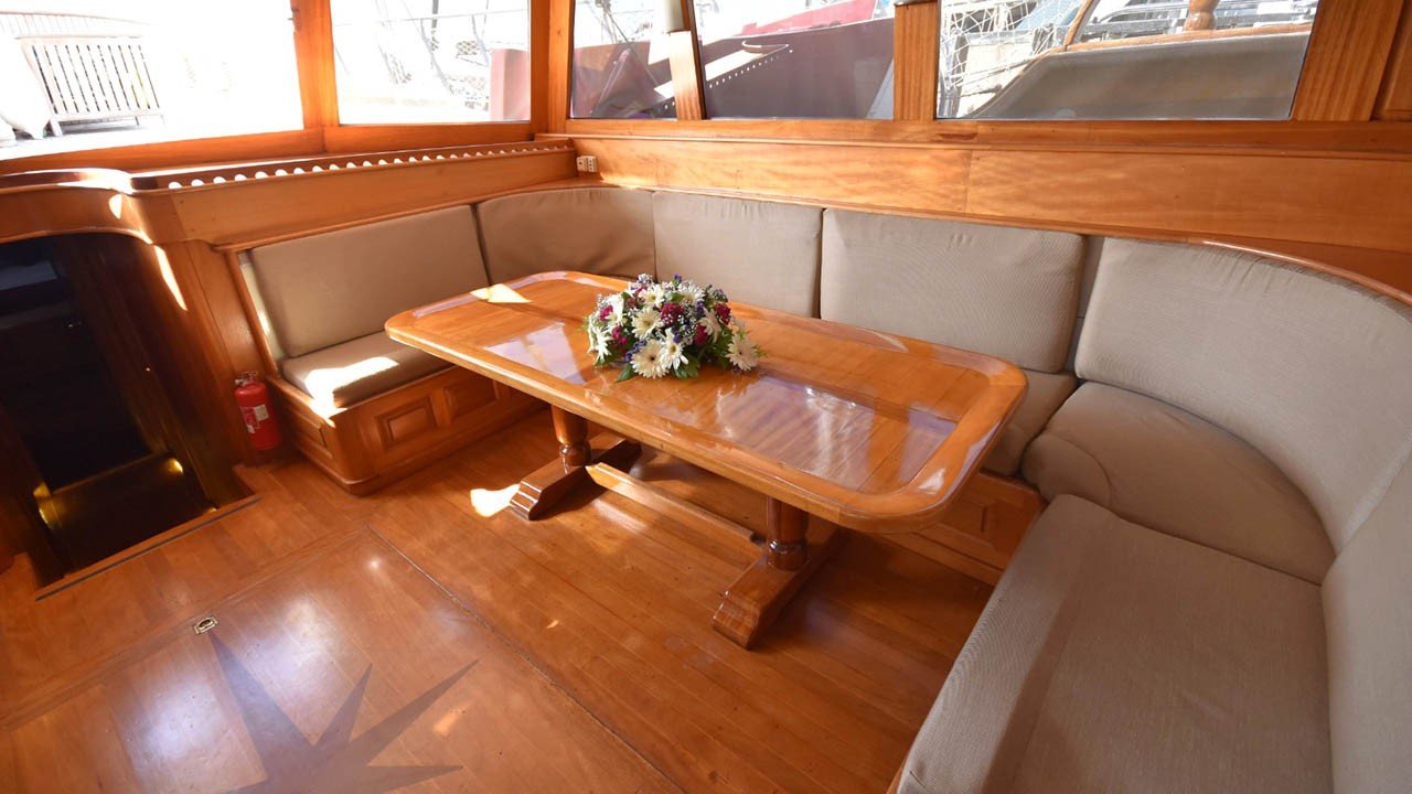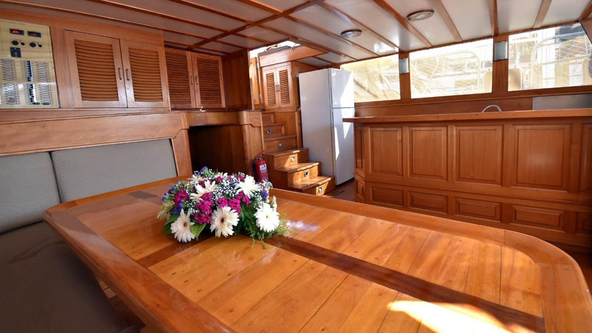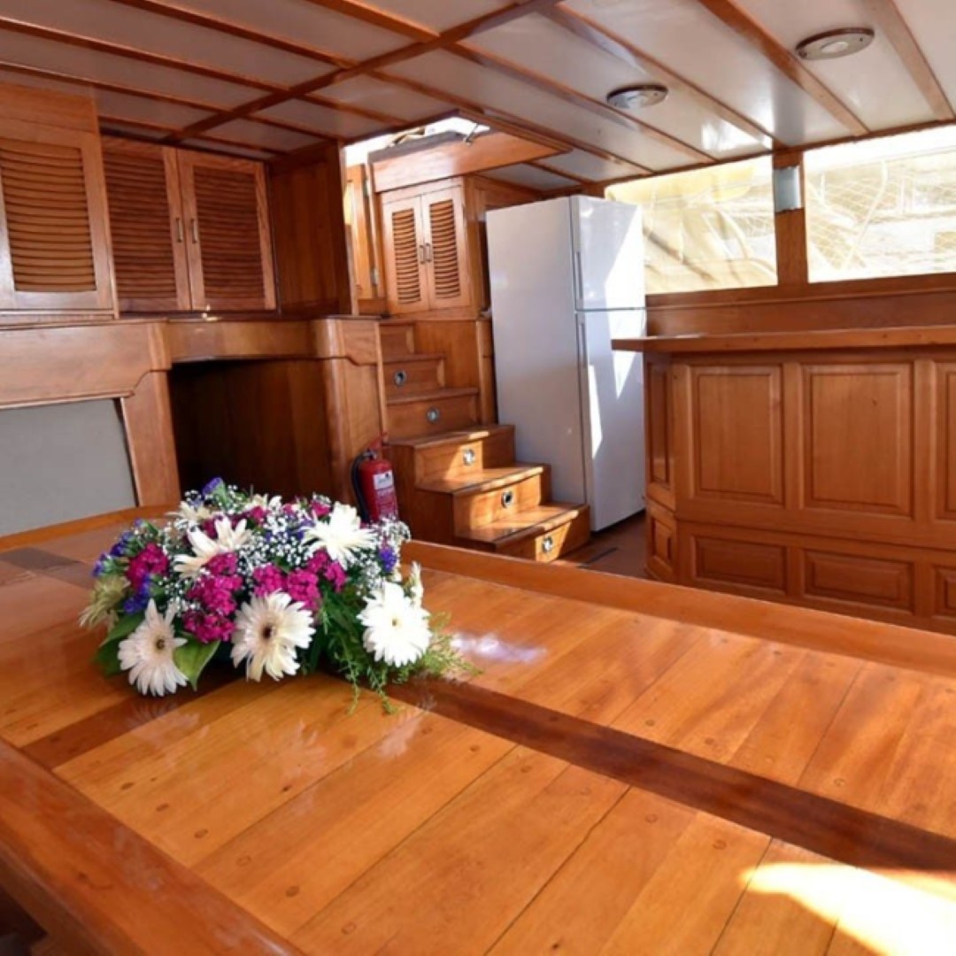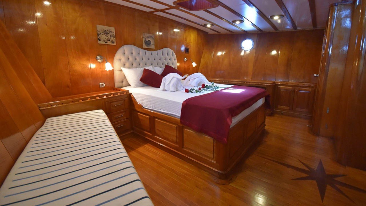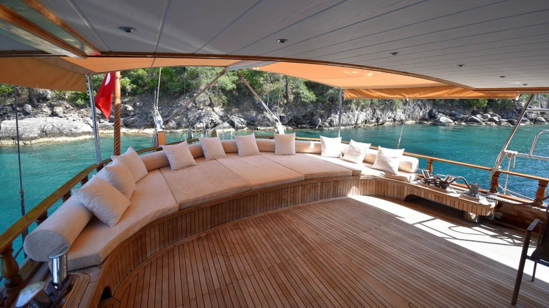 Gulet Su Sesi teknemiz 2009 yılında inşa edilmiş olup, 2019 yılında baştan sona renovasyona uğramıştır. 2 Master Kabin ve 4 Double Kabin ile 12 misafir ağırlayabilmekteyiz. Tüm kabinlerde Klima, Ev Tipi Tuvalet ve Duş bulunan teknemizde Klima kullanımımız maksimum 4-6 saattir. Salonda LCD TV ve Müzik sistemi bulunan teknemiz, tam donanımlı bir mutfağa sahiptir. Geniş güneşlenme alanı ve oturma alanlarıyla kulanım açısından son derece konforlu olan teknemizde sizleri ağırlamaktan memnuniyet duyarız.