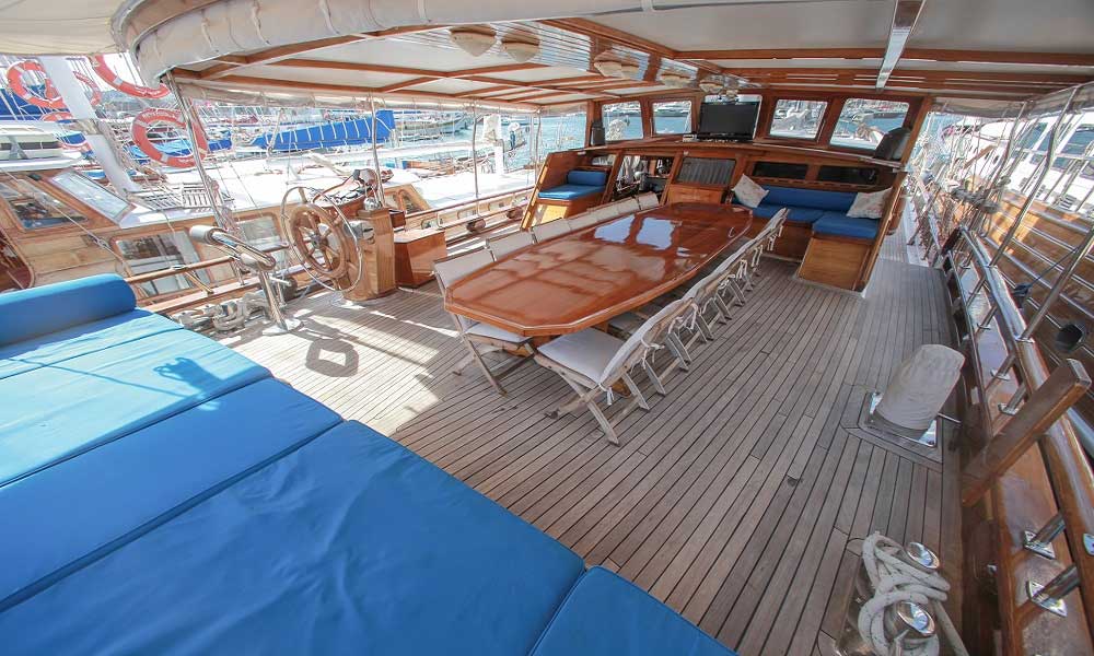 Gulet Sultan A ;1995 Yılında 28 metre uzunluğunda ve 7 metre genişliğinde inşa edilen Sultan A Guleti 2016 yılında baştan sona modern şekilde renovasyona uğrayıp günümüzdeki halini almıştır. 4 Double Kabin ve 2 Twin Kabin 2 Triple Kabin olmak üzere toplam 8 Kabinde 16 misafir ağırlayabilmektedir. Kabinlerimiz geniş, ferah ve modern bir yapıda olup Klima, Duş ve Wc mevcuttur. Tam donanımlı mutfağımızda özenle hazırlanan yemeklerimizi kıç güvertede veya salonda bulunan şık sofralarımızda tadabilirsiniz. Misafirlerin daha iyi zamanlar geçirebilmesi için müzik sistemi, TV ve uydu burada yer alırken yaz aylarında biraz daha iyi hissetmelerine neden olacak klimada her daim kullanımlarına açıktır. Ekstra olarak teknede bulabileceğiniz eşyalar arasında ise buz makinesi, kahve makinesi, oyun kağıdı, tavla, okey gibi seçenekler bulunmaktadır. Eğer denizin mavi sularını en iyi şekilde değerlendirmek isterseniz bunun içinde teknenin pek çok avantajı bünyesinde bulundurduğunu belirtmek gerekir. Balık tutmak için gerekli ekipmanlar, dalış malzemeleri gibi ekipmanlar burada kullanımınıza her daim açık olacaktır. Güvertede geniş minderli oturma alanı, güneşlenme alanı ve güneşlenme minderleri yeterli miktarda mevcuttur.