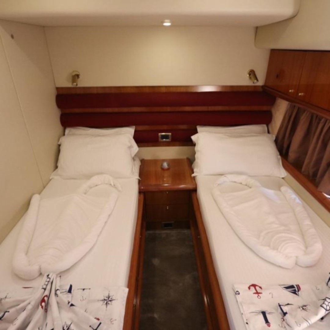 Toplamda 4 kabin; 2 master, 2 twin kabine sahiptir. Uzunluğu 24 metredir.