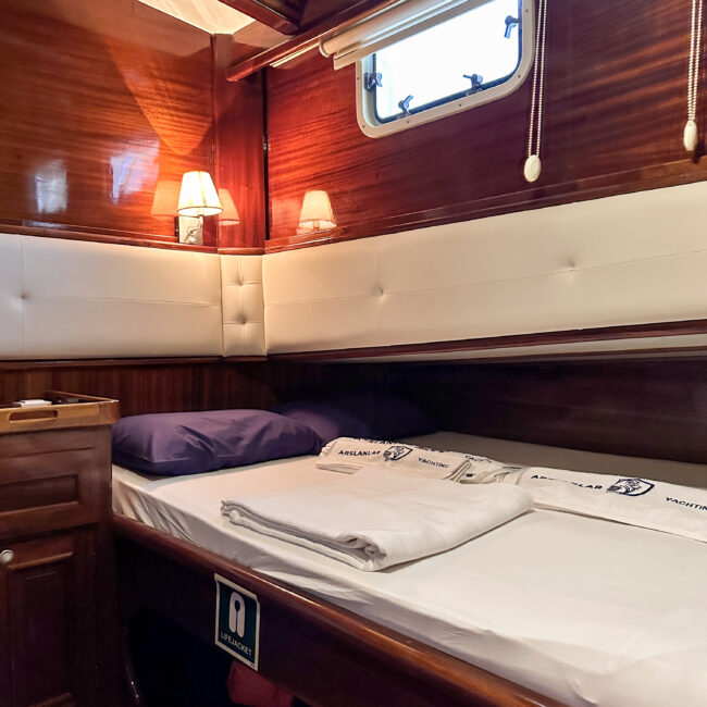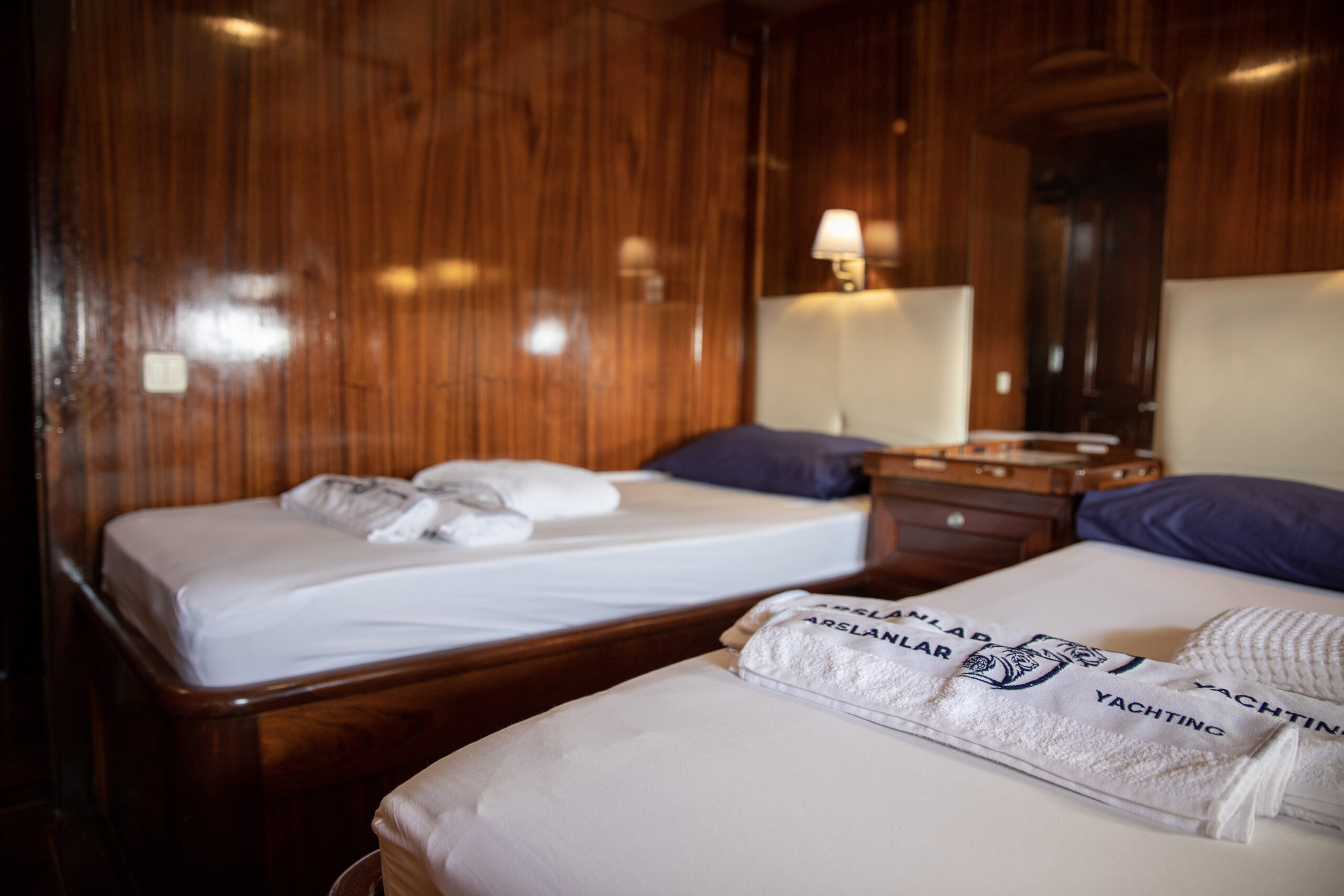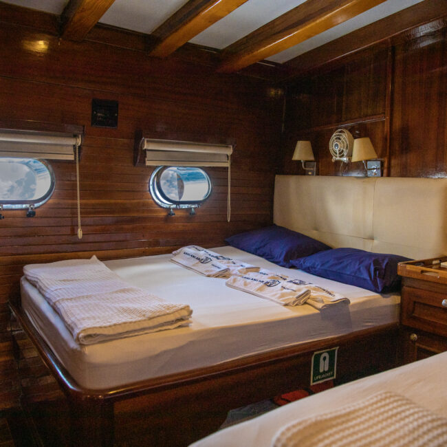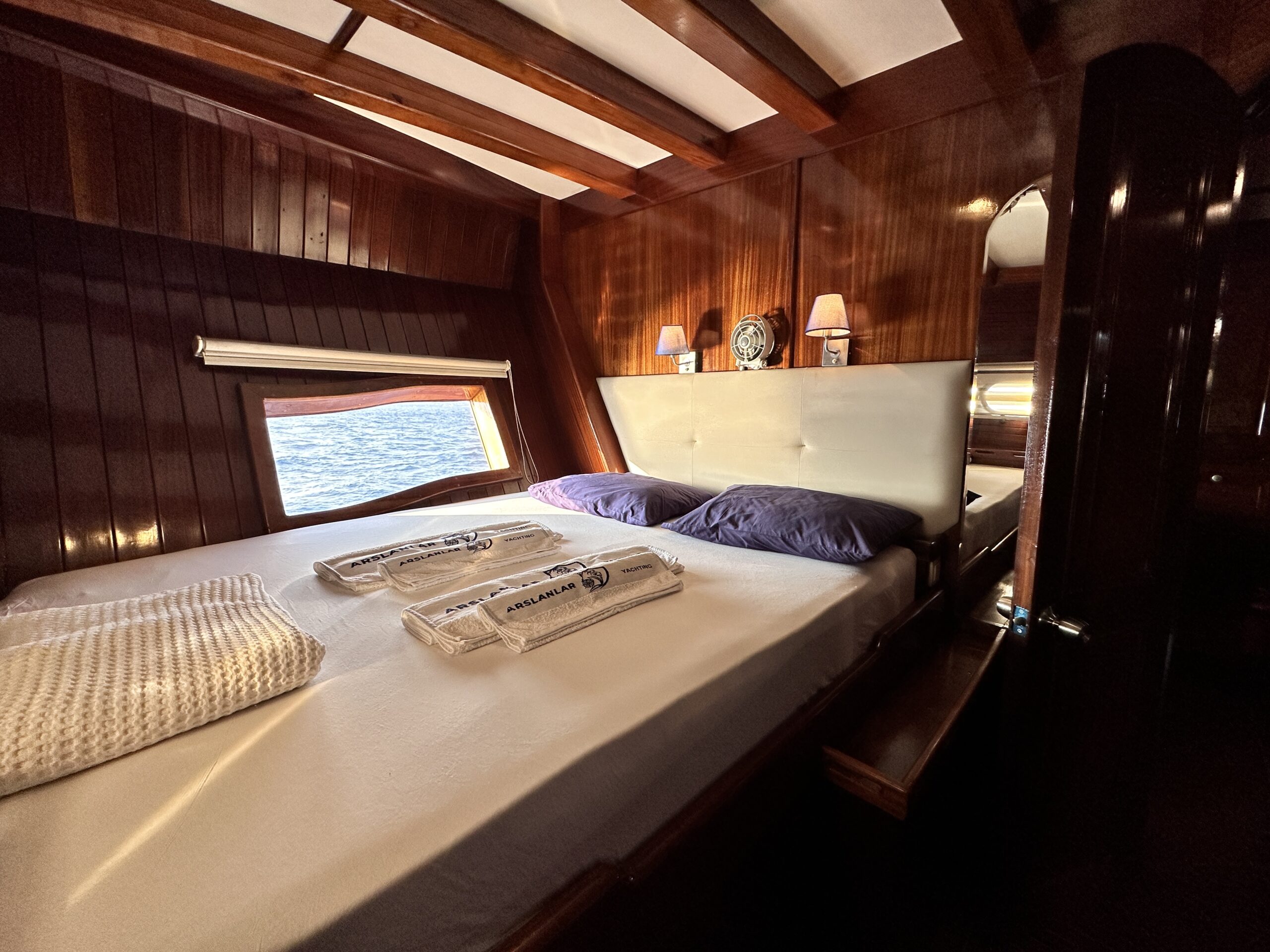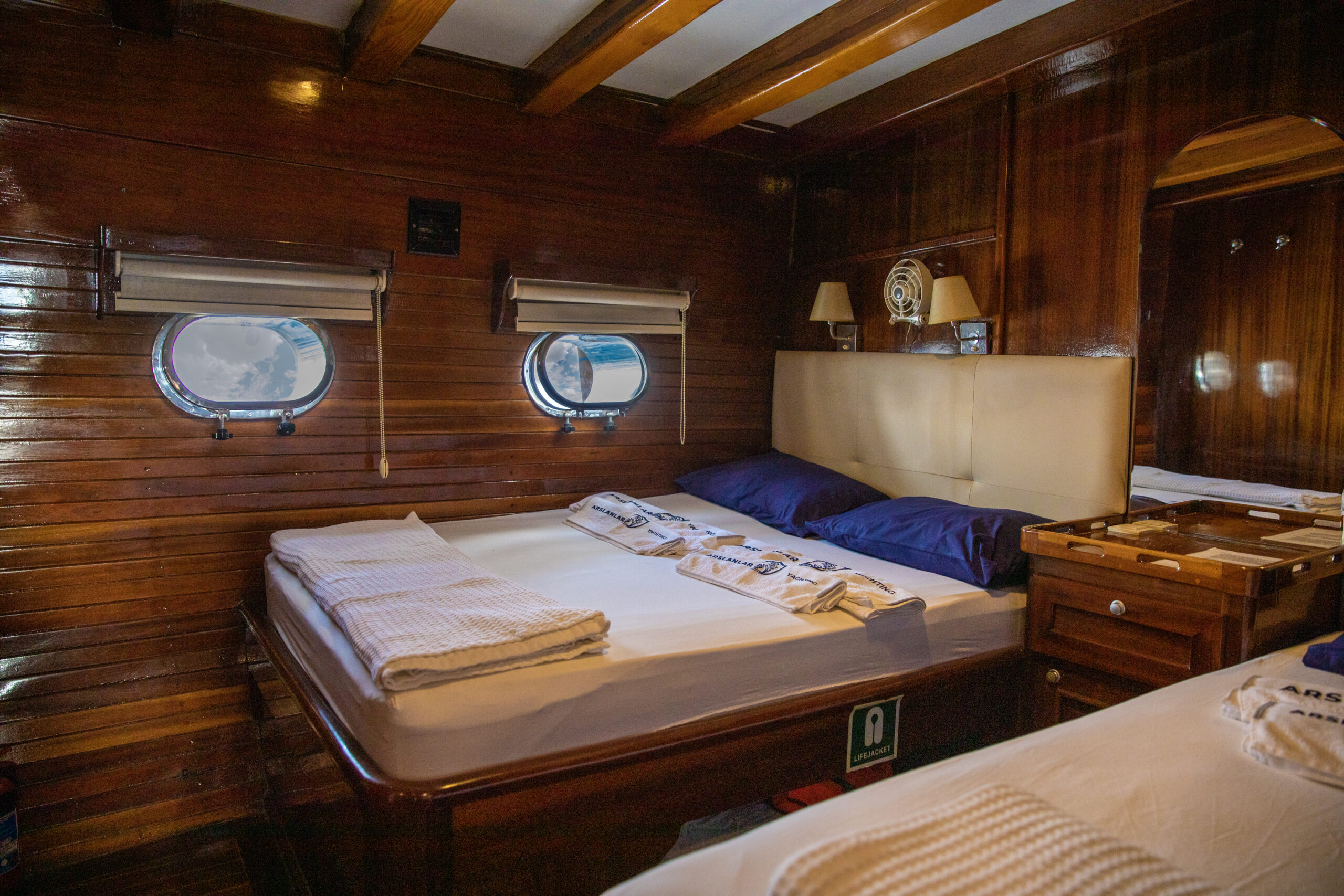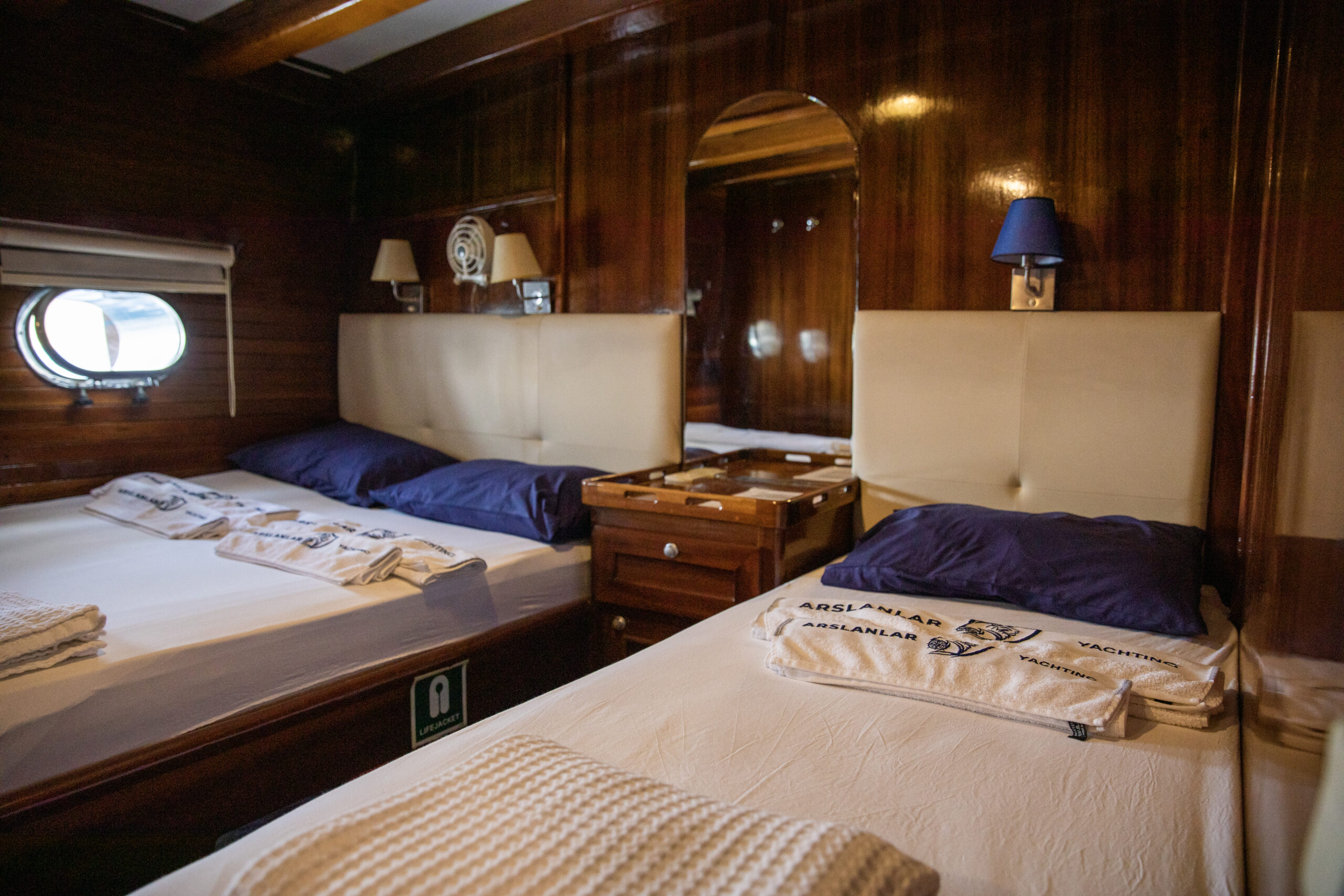 Toplamda 8 kabin; 4 double ve 4 triple kabin bulunmaktadır. Maksimum konaklama kapasitesi 20 kişidir.