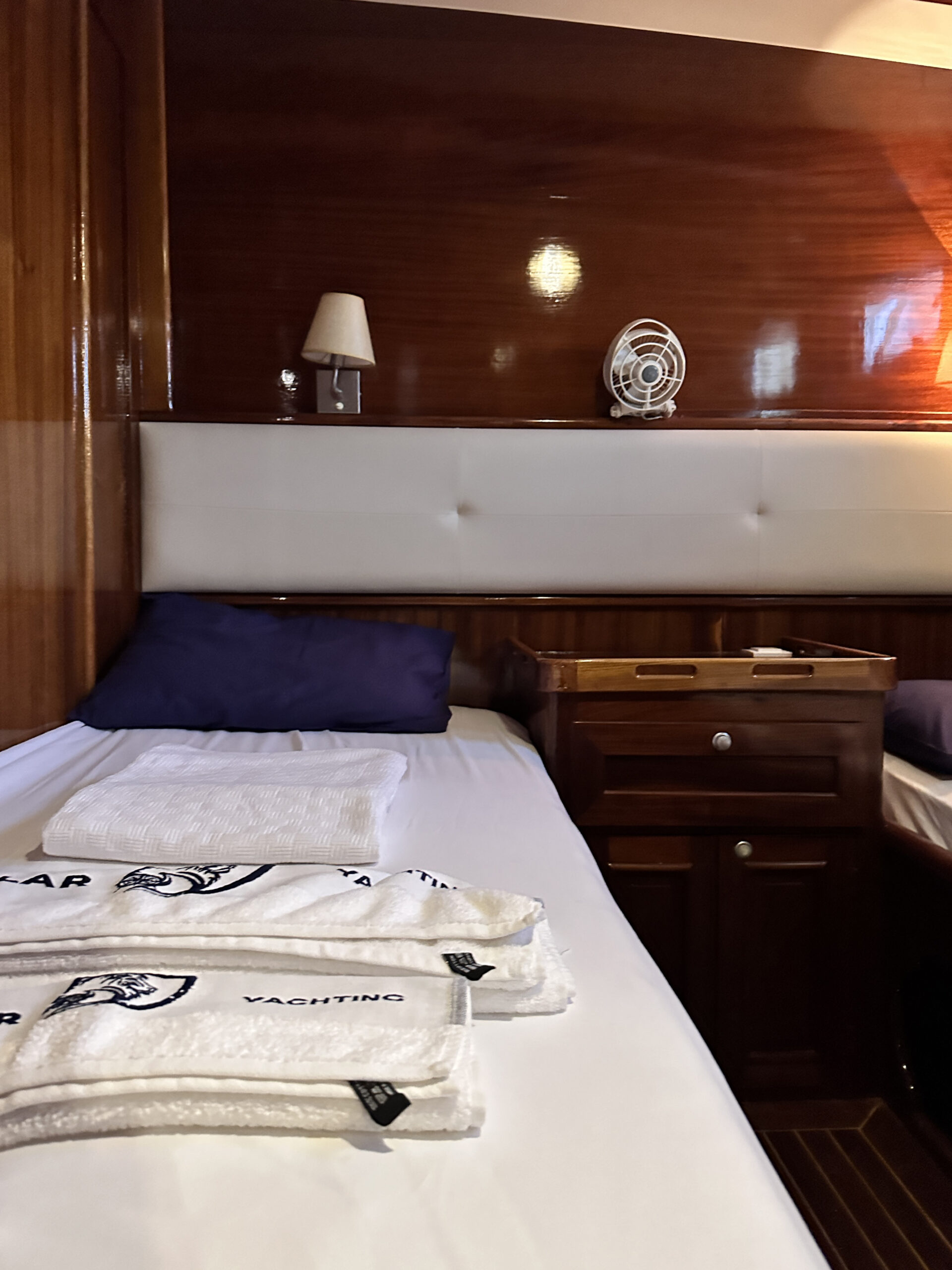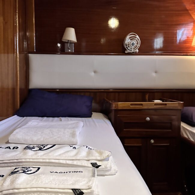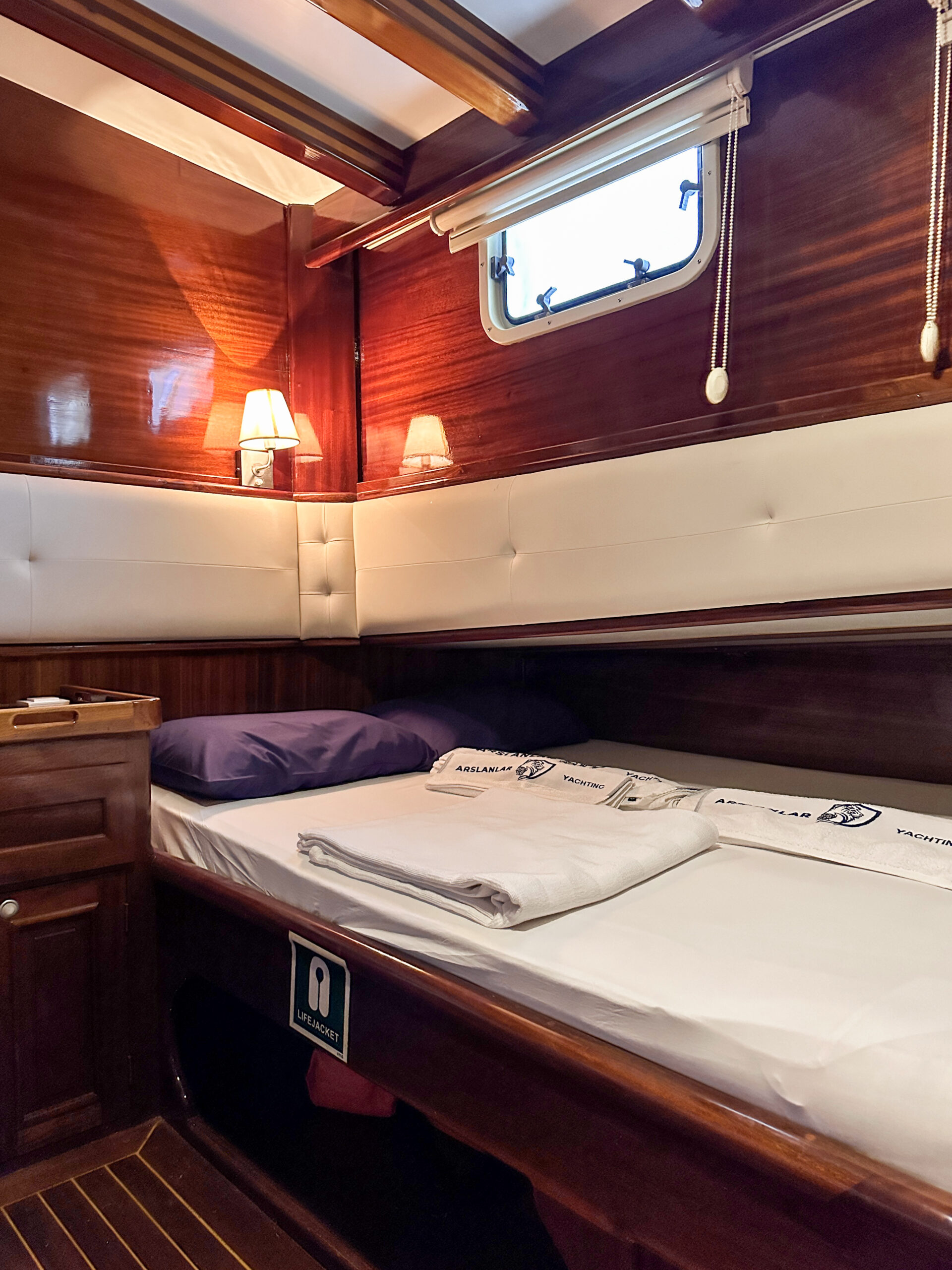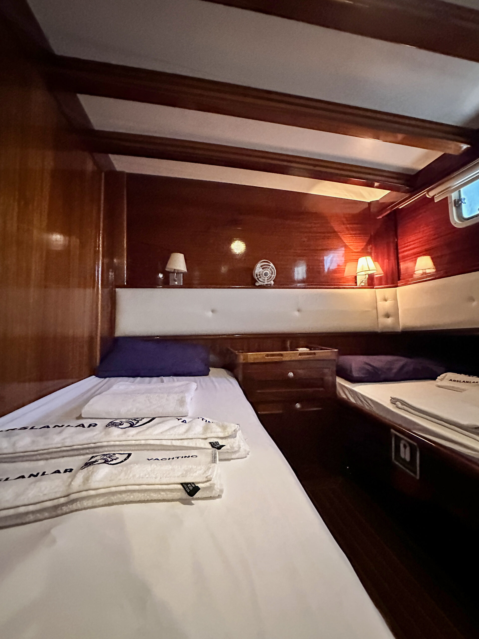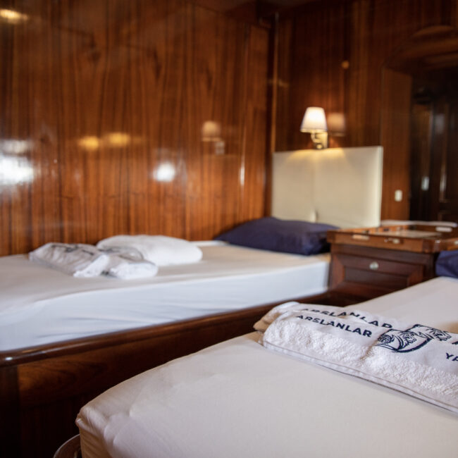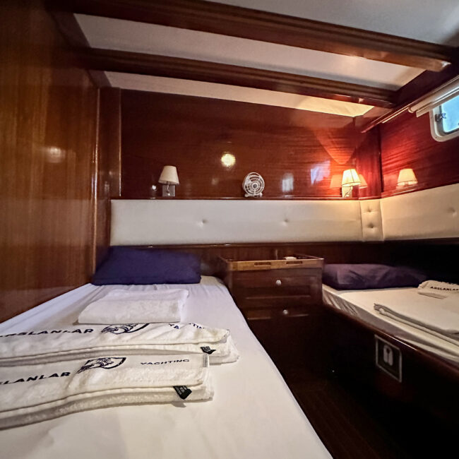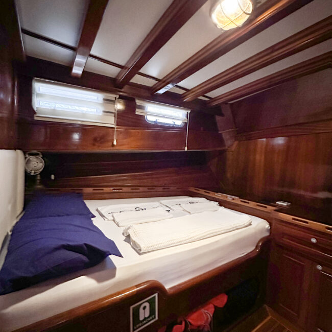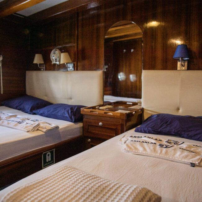 Toplamda 8 kabin; 4 double ve 4 triple kabin bulunmaktadır. Maksimum konaklama kapasitesi 20 kişidir.