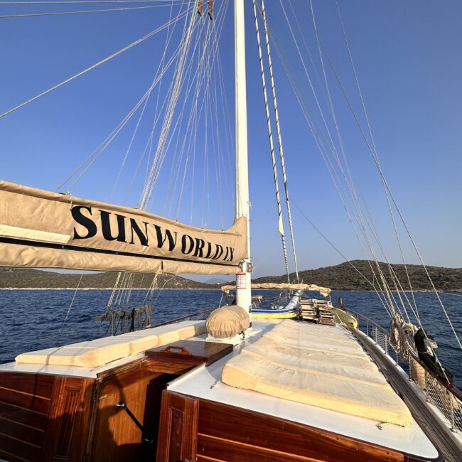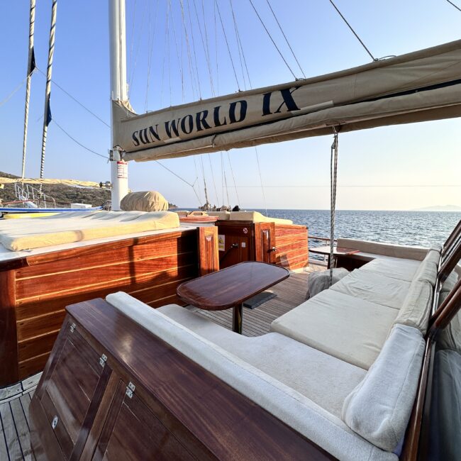 Gulet Sunworld 9, 2000 yılında yapılan standart donanımlara sahip bir teknedir.