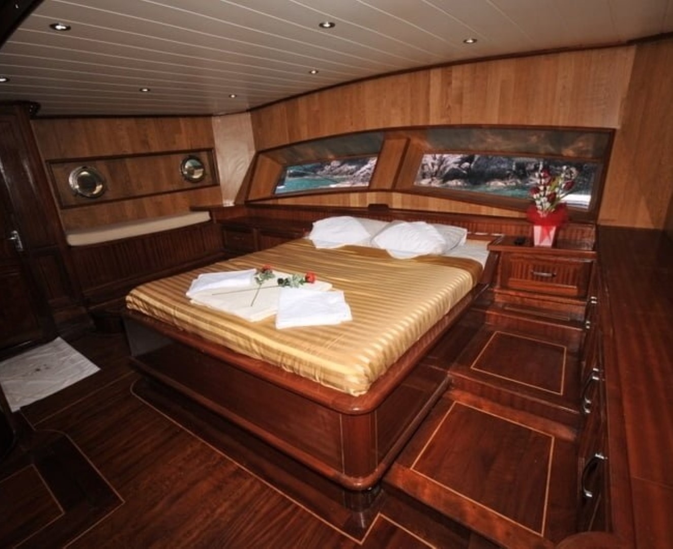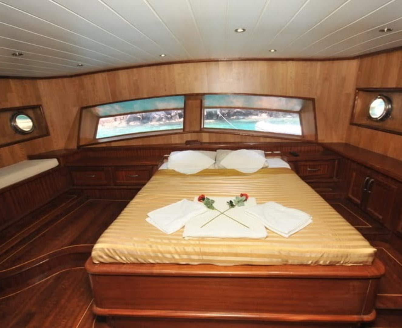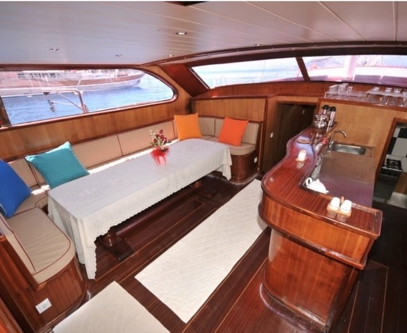 Gulet Titan 24 Metre uzunluğa sahip Titan isimli teknemiz 7.30 metre eni ile mavi tur severlere geniş kamara ve yaşam alanları sunmaktadır. 2016 yılında baştan aşağıya yenilenen de lüks sınıf teknemizde 2 master, 2 dbl kamara bulunmaktadır. Tüm limanlardan hareketli olarak mavi tur yapabilen teknemizde 4 kişilik mürettebat hizmet vermektedir. Teknemiz mavi yolculuğun kalbi olan Türk ve Yunan sularında 8 kişiye kadar olan gruplara hizmet verebilmektedir. Teknemizin salon ve tüm kamaralarında televizyon ve uydu sistemi mevcuttur. 24 saat klima hizmeti sunabilen teknemizin tüm kamaralarında duşakabin ve WC yer alır. 70 Hp güce sahip Joker marka botumuz ile sadece yakıt ücretlerini ödeyerek su kayağı yapabilirsiniz. Teknemizde 1 adet kano vardır.Gulet Yat Titan.