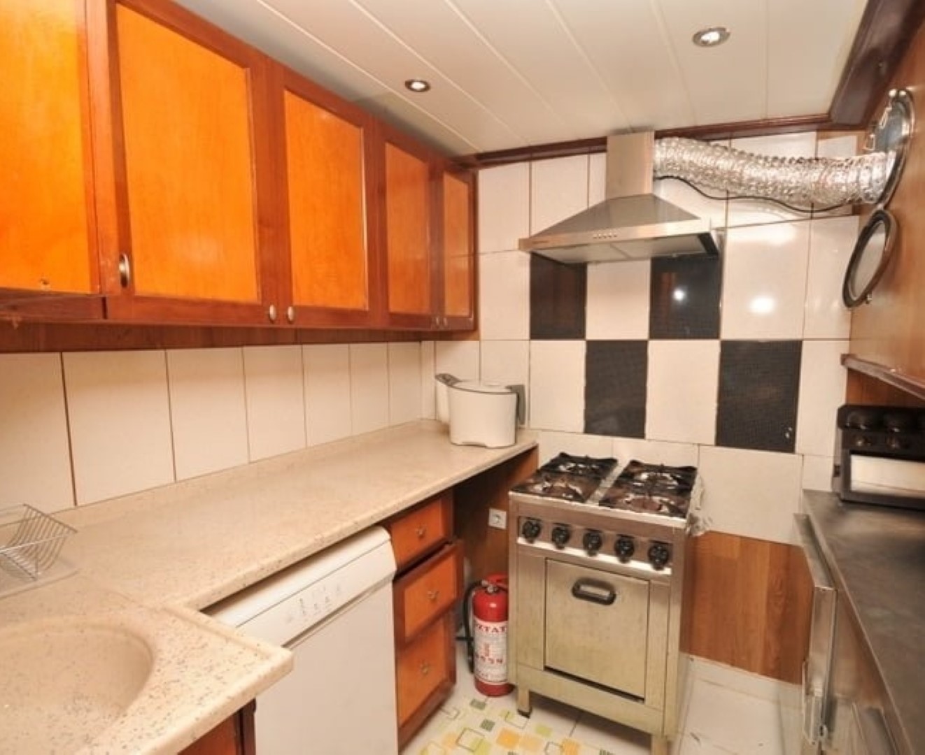 Titan Teknenin kabinleri, 2 master, 2 double dır. Her kabinin kendine ait, duşa kabini ve ev tipi tuvaleti vardır. Titan’ın salonunda bar, salon yemek masası, konforlsu oturma alanı, modern mobilyalı, tam donanımlı bir salondur. Haberleşme cihazı, derinlik ölçer, radar, GPS, Pusula, uydu haberleşme cihazı, tüm seyir cihazları, teknenin elektronik sistemleri arasındadır. Buz makinesi, cd oynatıcı, kahve makinesi de yatın içinde bulunmaktadır. Televizyon ve uydu sadece güvertede bulunmaktadır.