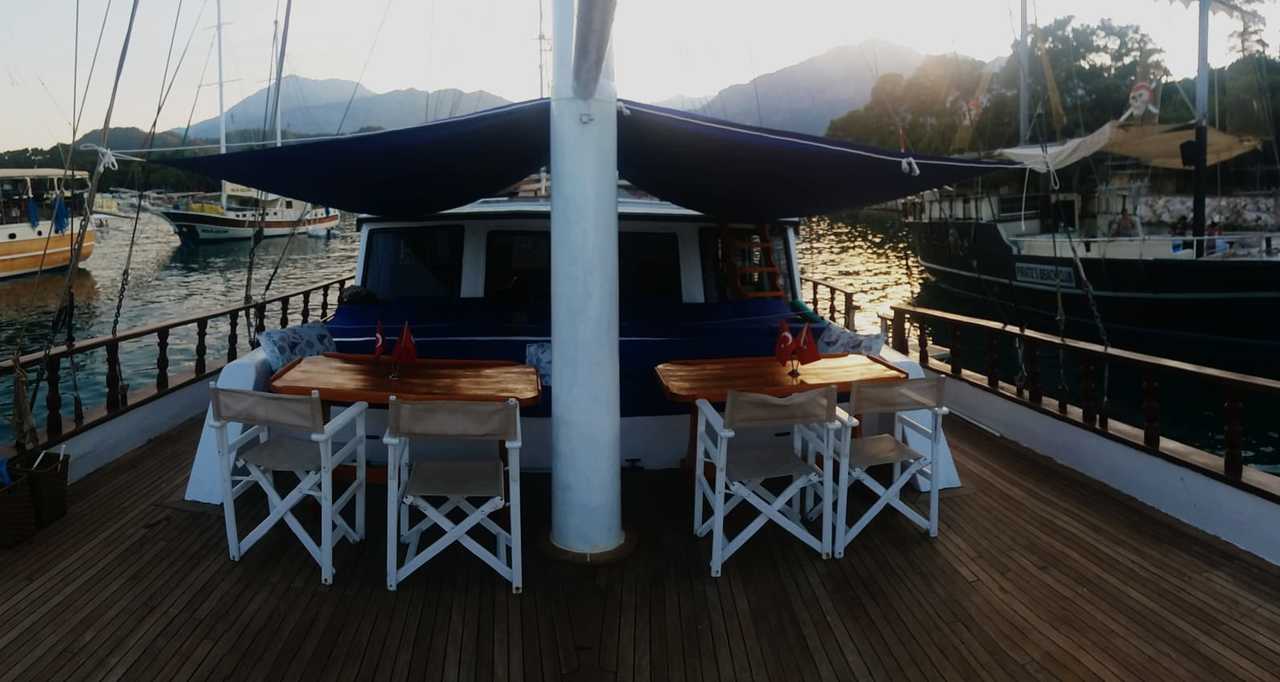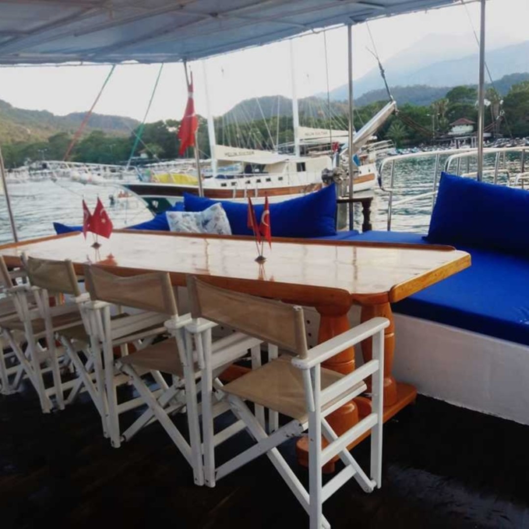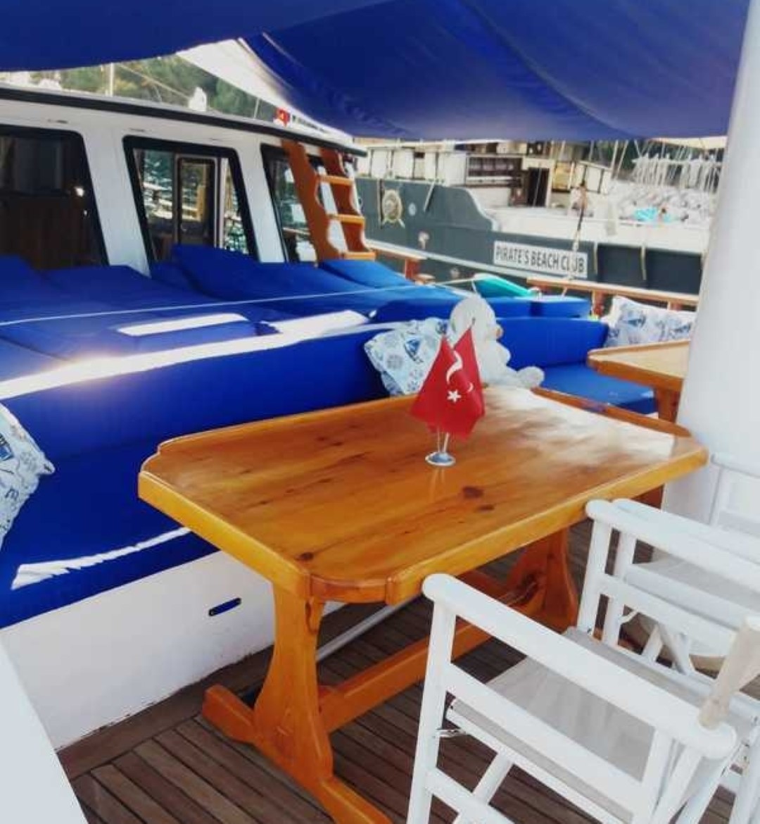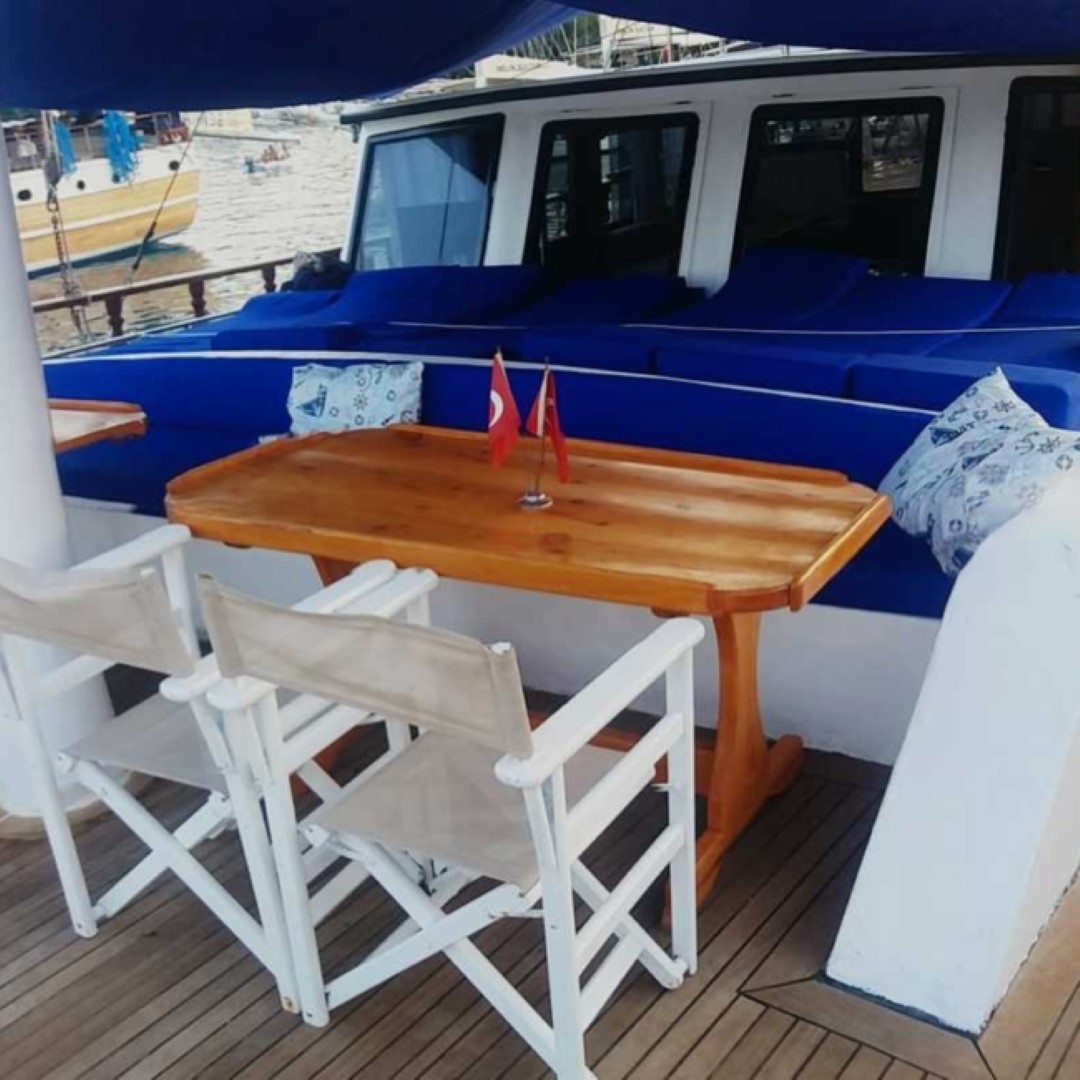 Gulet Toygar, 1999 yılında 24 metre uzunlukta, 6.40 metre genişlikte Ketch tipinde inşa edilmiştir. Her yıl bakımları yapılan teknemiz 2020 yılında baştan sona renovasyona uğrayıp günümüzdeki halini almıştır. 4 Double Kabin ve 1 Master Kabinde 10 misafiri ağırlayabilmektedir. Kabinler geniş, ferah ve modern şekilde zevkle dizayn edilmiş olup Saç Kurutma Makinesi, Klima, Duş ve Wc mevcuttur. Tam donanımlı mutfağımızda özenle hazırlanan yemeklerimizi kıç güvertede veya salonda bulunan şık sofralarımızda tadabilirsiniz. Güvertede geniş minderli oturma alanı, güneşlenme alanı ve güneşlenme minderleri yeterli miktarda mevcuttur. Misafirlerin daha iyi zamanlar geçirebilmesi için internet, müzik sistemi salonda yer alırken klimada kullanımlarına açıktır. Eğer denizin mavi sularını en iyi şekilde değerlendirmek isterseniz bunun içinde teknenin pek çok avantajı bünyesinde bulundurduğunu belirtmek gerekir. İletişim ve güvenlik açısından beklentilerinizi tam olarak karşılayacak bir yapıya sahiptir. İletişim cihazları, pusula, GPS, seyir cihazları, derinlik ölçer, elektronik harita gibi seçeneklerde teknede bulunanlar arasında yer alır. Ege ve Akdeniz’in eşsiz güzellikteki koylarında sizleri ağırlamaktan memnuniyet duyarız.