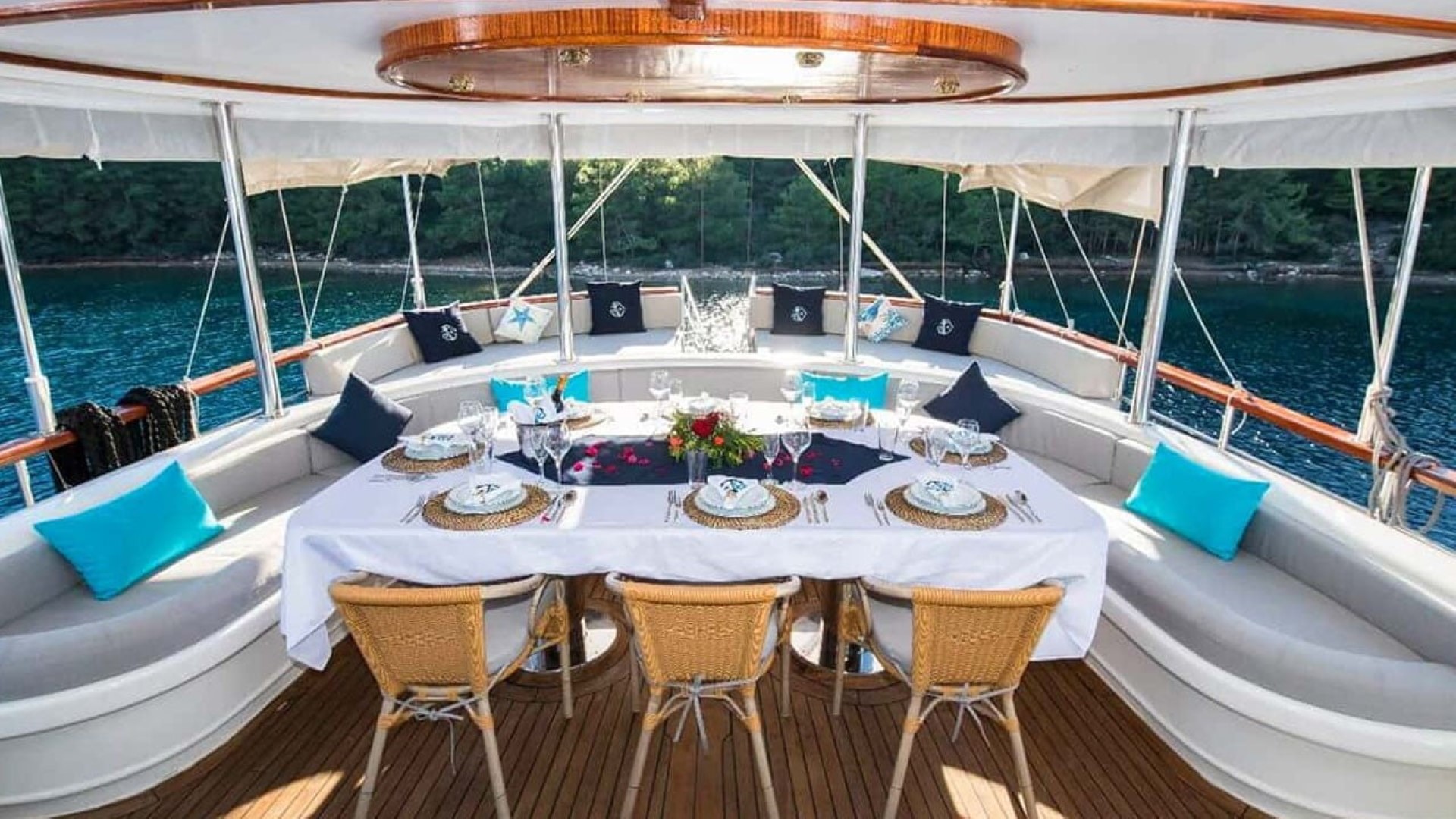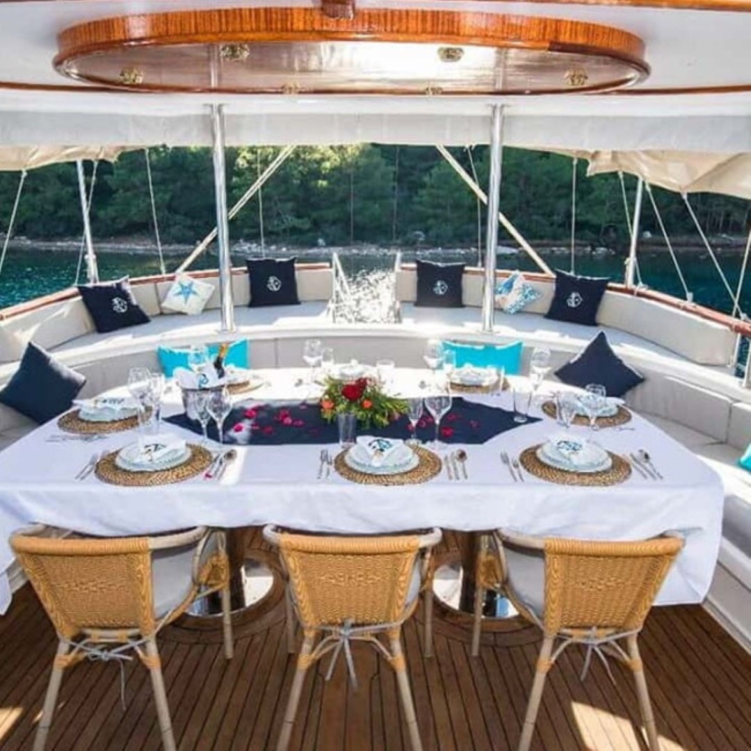 Albatros Yatçılık ile iletişim kurup Vista Mare yatını tercih ettik. Bu lüks ve konforlu guletimizin yemekleri özellikle çok lezzetliydi. Kabinleri geniş ve kullanımı çok rahattı. Su sporlarının olması büyük bir avantajdı. Her şey için teşekkürler. Yeniden görüşmek üzere. | Şehir : istanbul
