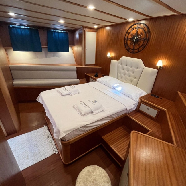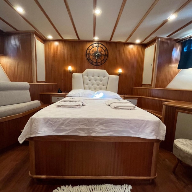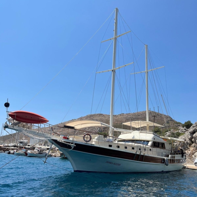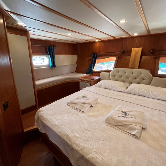 2007 Yılında 24 metre uzunluğunda ve 6.80 metre genişliğinde inşa edilen Zehra Sultan Guleti 2017 yılında baştan sona modern şekilde renovasyona uğrayıp günümüzdeki halini almıştır. 8 Double Kabinde 16 misafir ağırlayabilmektedir. Kabinlerimiz geniş, ferah ve modern bir yapıda olup Duş ve Wc mevcuttur. Tam donanımlı mutfağımızda özenle hazırlanan yemeklerimizi kıç güvertede veya salonda bulunan şık sofralarımızda tadabilirsiniz. Güvertede geniş minderli oturma alanı, güneşlenme alanı ve güneşlenme minderleri yeterli miktarda mevcuttur. Konforlu içeriğiyle birlikte kendinizi adeta evinizde hissedeceğiniz teknede su sporlarının en iyilerini de yapmaya başlayabilirsiniz. Bunun için özel olarak hazırlanmış ekipmanları teknede rahatlıkla bulabilirsiniz. Balık tutma ekipmanları, şnorkel ekipmanları gibi içerikler burada denizin keyfini en iyi şekilde çıkartmanızı sağlayacaktır. İletişim ve güvenlik açısından da beklentilerinizi tam olarak karşılayacak bir yapıya sahiptir. İletişim cihazları, pusula, GPS, seyir cihazları, derinlik ölçer, elektronik harita gibi seçeneklerde teknede bulunanlar arasında yer alır.