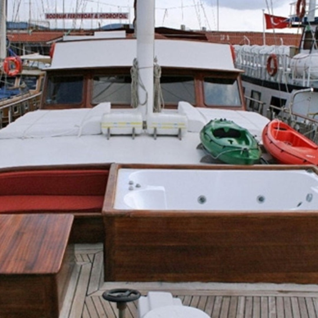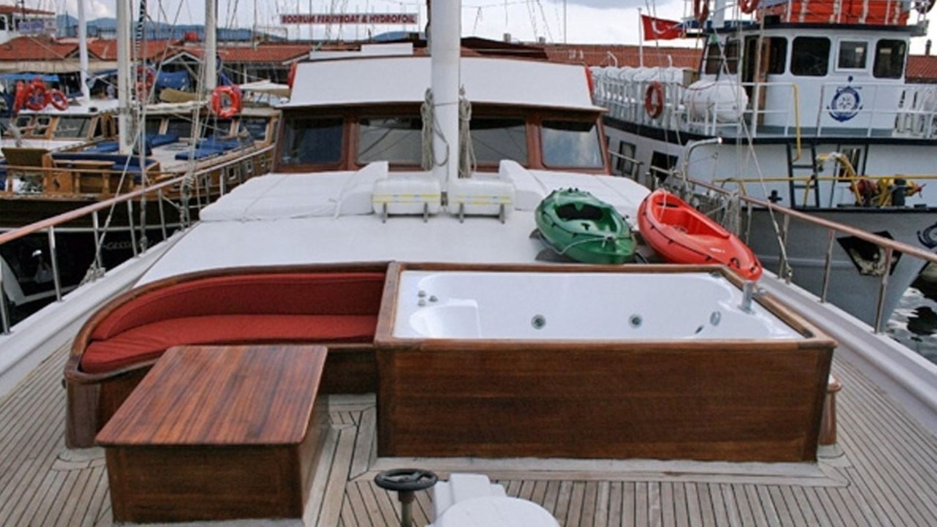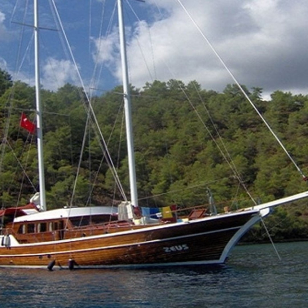 Gulet Zeus 2008 Yılında 30 metre uzunluğunda ve 7 metre genişliğinde inşa edilmiştir. 2 Master Kabin, 3 Double Kabin ve 1 Twin Kabin olmak üzere toplam 6 Kabinde 12 misafir ağırlayabilmektedir. Kabinlerimiz geniş, ferah ve modern bir yapıda olup Müzik Sistemi, Klima, Duş ve Wc mevcuttur. Tam donanımlı mutfağımızda özenle hazırlanan yemeklerimizi kıç güvertede veya salonda bulunan şık sofralarımızda tadabilirsiniz. Güvertede farklı bir atmosfer oluşturan Jakuzinin yanı sıra geniş minderli oturma alanı, güneşlenme alanı ve güneşlenme minderleri yeterli miktarda mevcuttur. Misafirlerin daha iyi zamanlar geçirebilmesi için müzik sistemi, TV ve uydu burada yer alırken yaz aylarında biraz daha iyi hissetmelerine neden olacak klimada her daim kullanımlarına açıktır. Ekstra olarak teknede bulabileceğiniz eşyalar arasında ise buz makinesi, kahve makinesi, oyun kağıdı, tavla, okey gibi seçenekler bulunmaktadır. Eğer denizin mavi sularını en iyi şekilde değerlendirmek isterseniz bunun içinde teknenin pek çok avantajı bünyesinde bulundurduğunu belirtmek gerekir. Balık tutmak için gerekli ekipmanlar, dalış malzemeleri gibi ekipmanlar burada kullanımınıza her daim açık olacaktır.