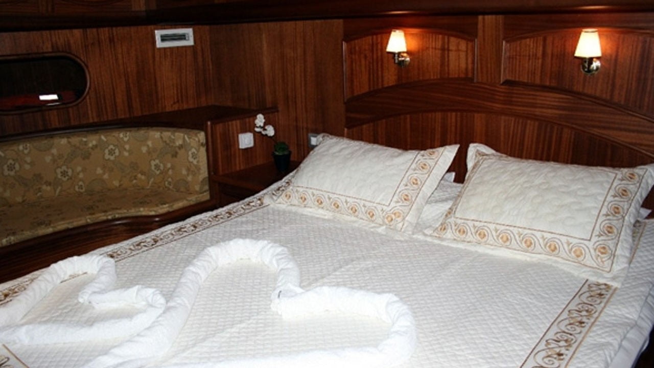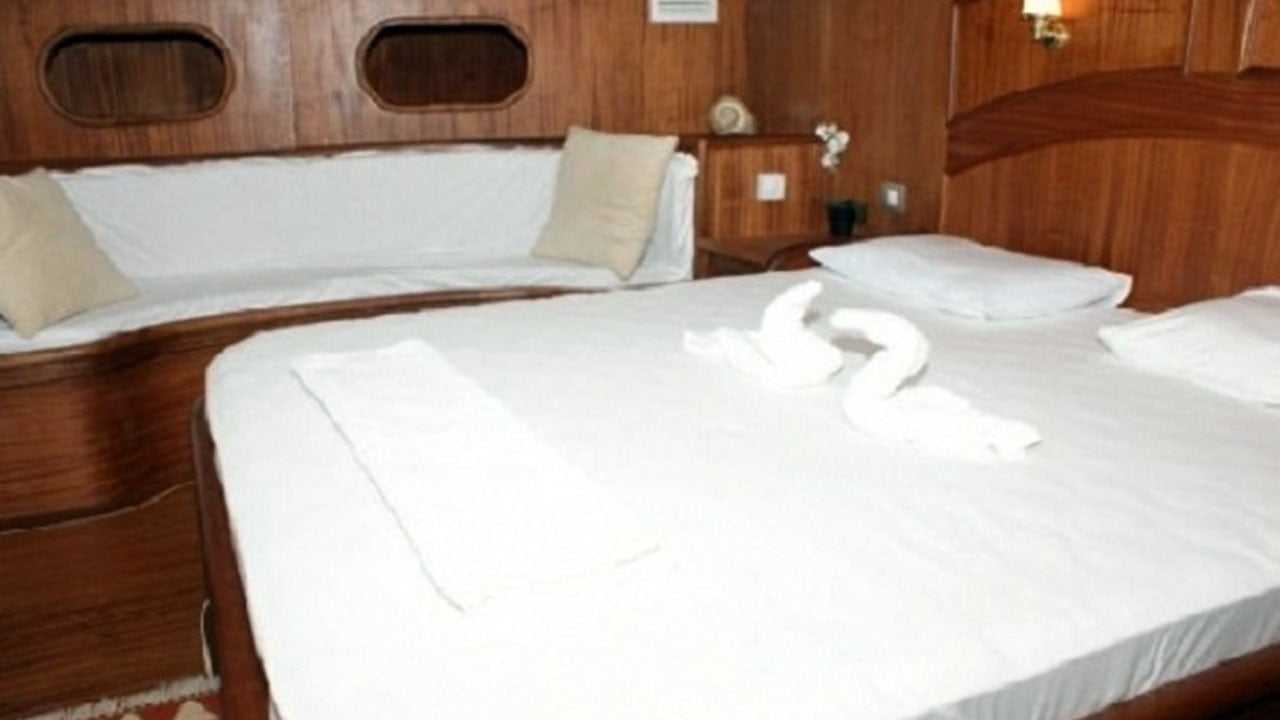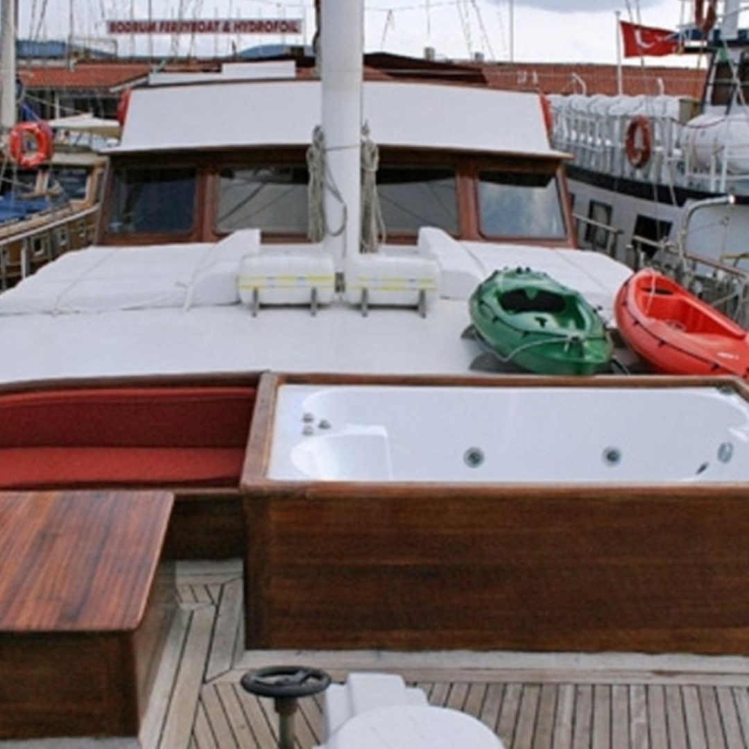 Gulet Zeus 2008 Yılında 30 metre uzunluğunda ve 7 metre genişliğinde inşa edilmiştir. 2 Master Kabin, 3 Double Kabin ve 1 Twin Kabin olmak üzere toplam 6 Kabinde 12 misafir ağırlayabilmektedir. Kabinlerimiz geniş, ferah ve modern bir yapıda olup Müzik Sistemi, Klima, Duş ve Wc mevcuttur. Tam donanımlı mutfağımızda özenle hazırlanan yemeklerimizi kıç güvertede veya salonda bulunan şık sofralarımızda tadabilirsiniz. Güvertede farklı bir atmosfer oluşturan Jakuzinin yanı sıra geniş minderli oturma alanı, güneşlenme alanı ve güneşlenme minderleri yeterli miktarda mevcuttur. Misafirlerin daha iyi zamanlar geçirebilmesi için müzik sistemi, TV ve uydu burada yer alırken yaz aylarında biraz daha iyi hissetmelerine neden olacak klimada her daim kullanımlarına açıktır. Ekstra olarak teknede bulabileceğiniz eşyalar arasında ise buz makinesi, kahve makinesi, oyun kağıdı, tavla, okey gibi seçenekler bulunmaktadır. Eğer denizin mavi sularını en iyi şekilde değerlendirmek isterseniz bunun içinde teknenin pek çok avantajı bünyesinde bulundurduğunu belirtmek gerekir. Balık tutmak için gerekli ekipmanlar, dalış malzemeleri gibi ekipmanlar burada kullanımınıza her daim açık olacaktır.
